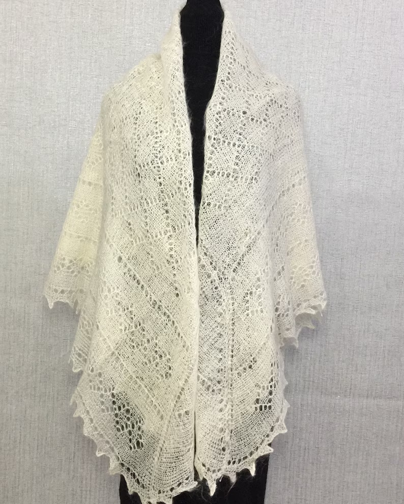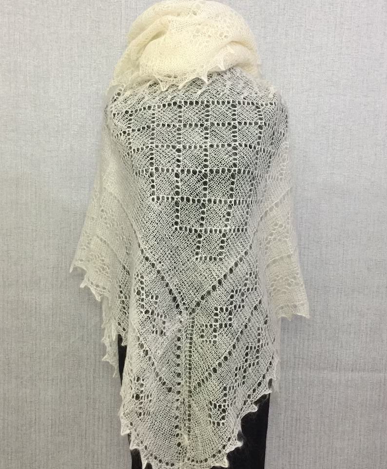Die kunstvollen, filigranen Muster sind typisch für die tradtionelle Orenburger Strickkunst und machen jeden Schal zu einem einzigartigen Accessoire. Ob klassisch über die Schultern gelegt, elegant als Dreieckstuch getragen oder modern gestylt - dieser Schal verleiht jedem Outfit eine besondere Note.
