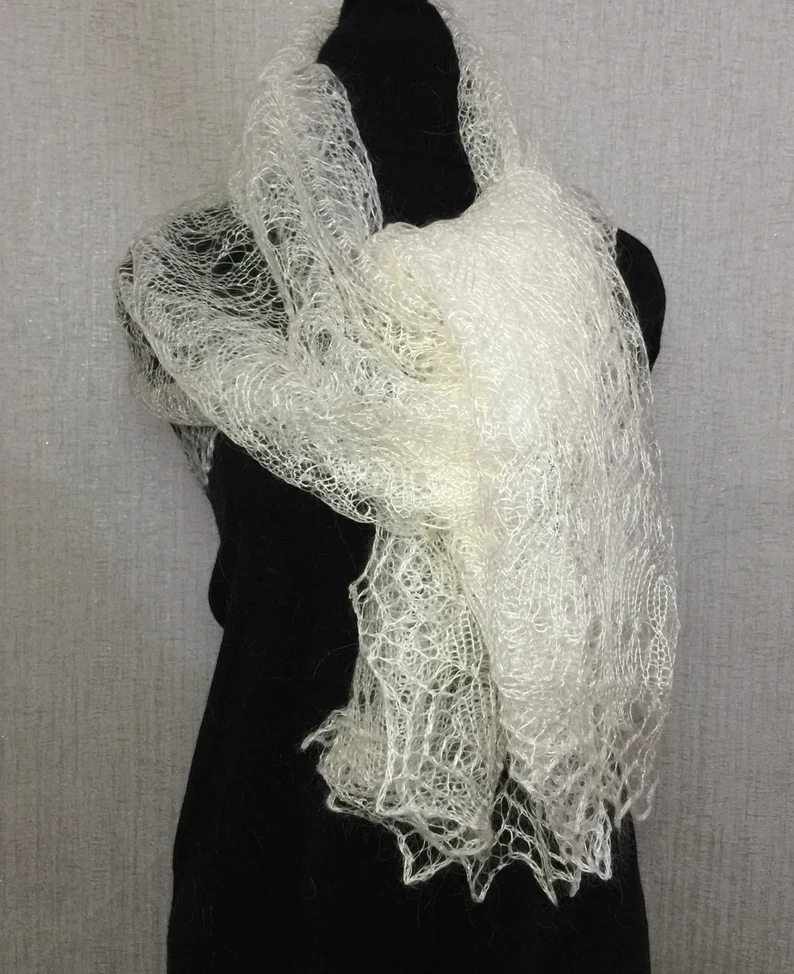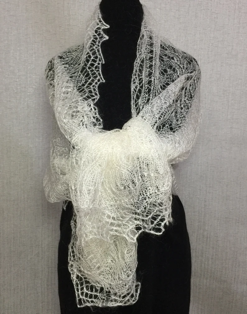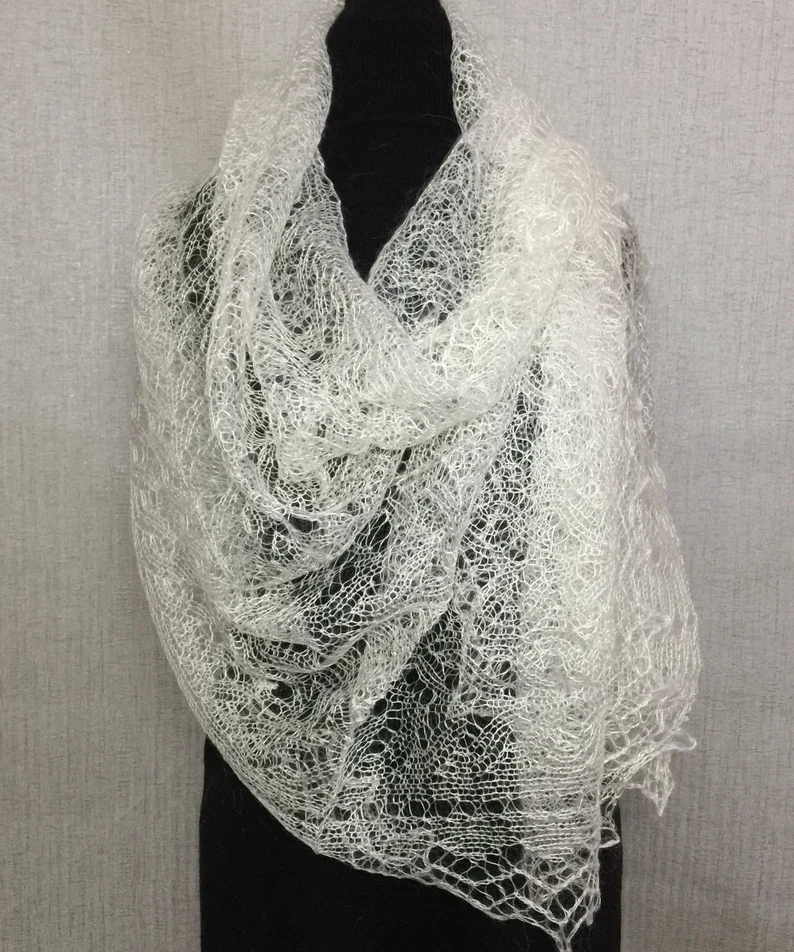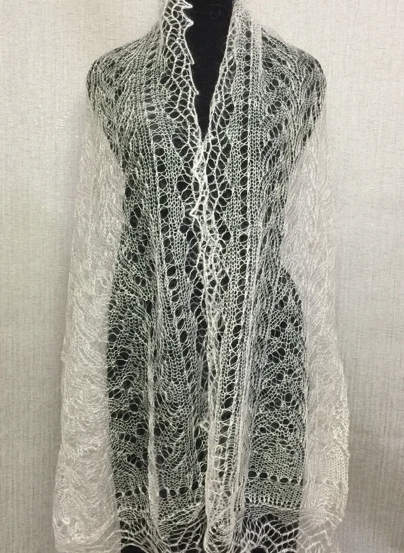 Die kunstvollen, filigranen Muster sind typisch für die tradtionelle Orenburger Strickkunst und machen jeden Schal zu einem einzigartigen Accessoire. Ob klassisch über die Schultern gelegt, elegant als Dreieckstuch getragen oder modern gestylt - dieser Schal verleiht jedem Outfit eine besondere Note.