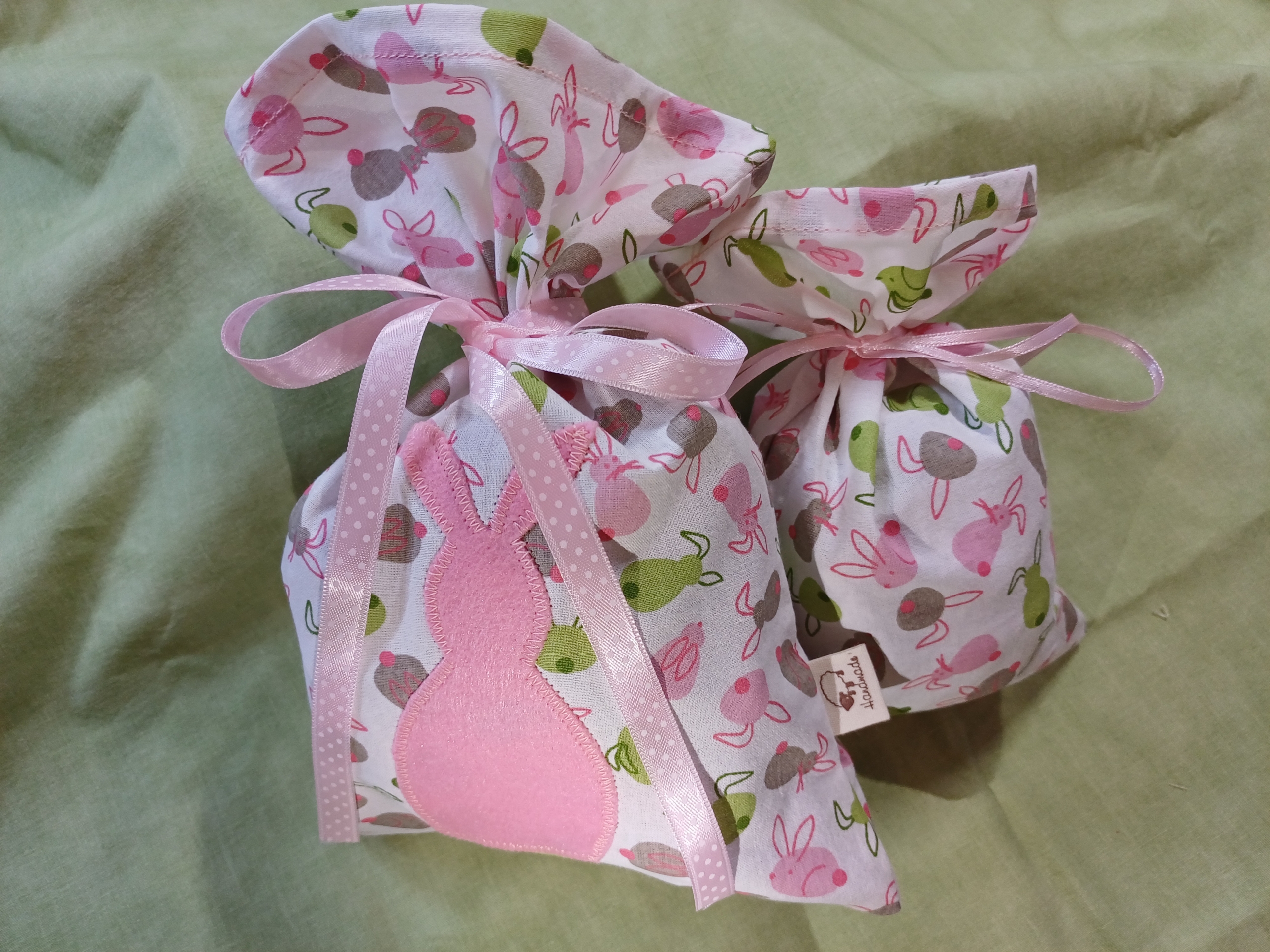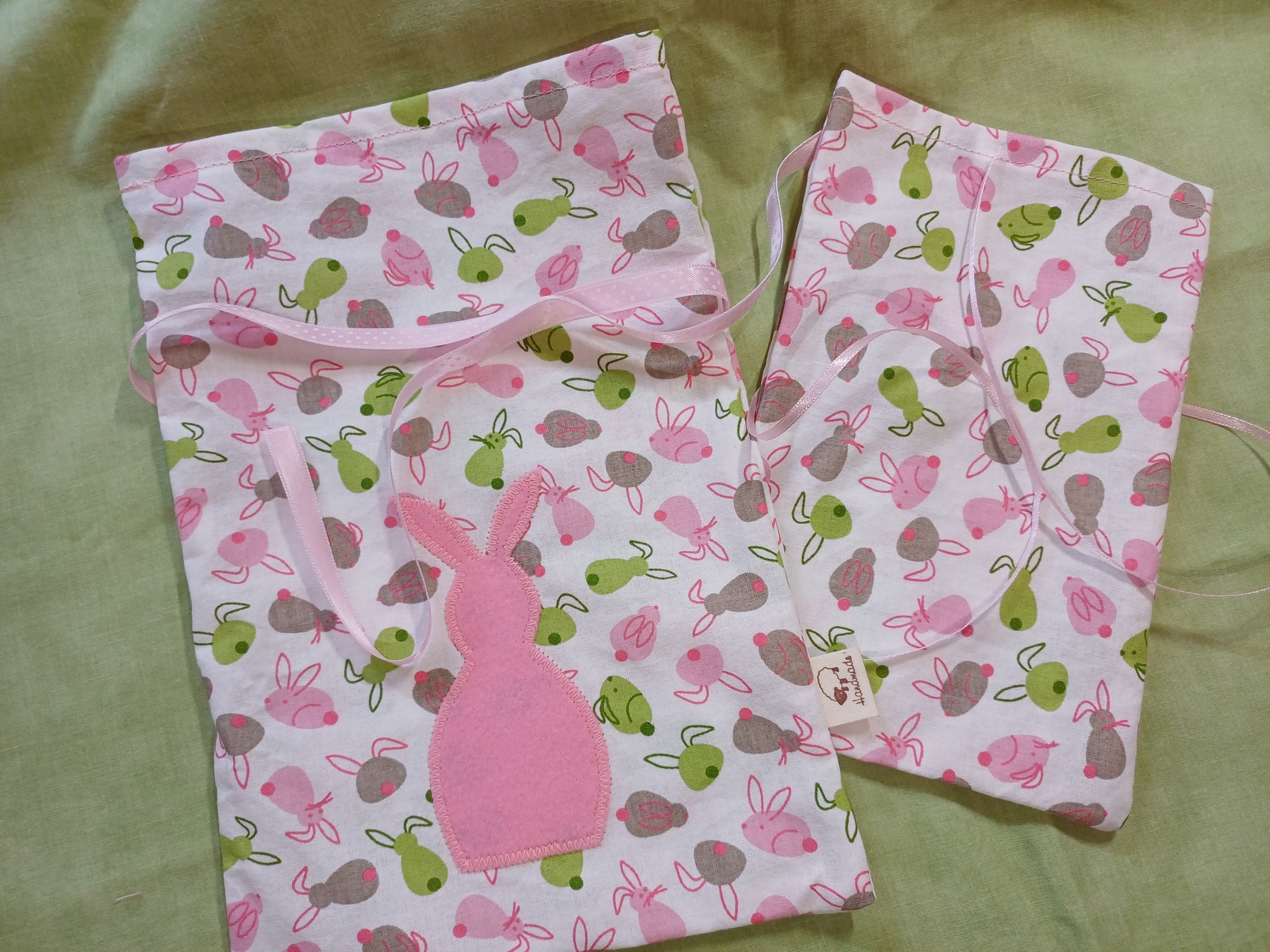 Der größere Beutel ist mit einem Hasen-Patch