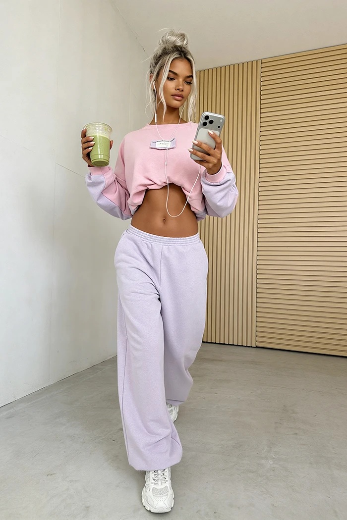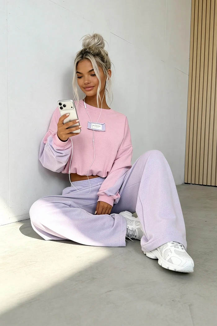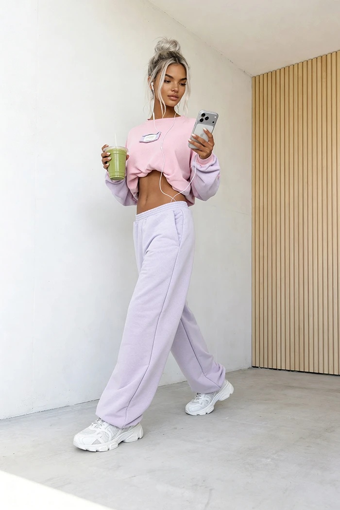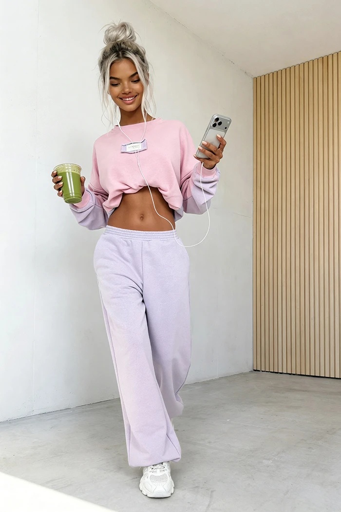 Oversize 2-Teiler in Pastellfarben bestehend aus einer weiten bequem Hose & einem off Shoulder Shirt in den Größen XS/S und M/L