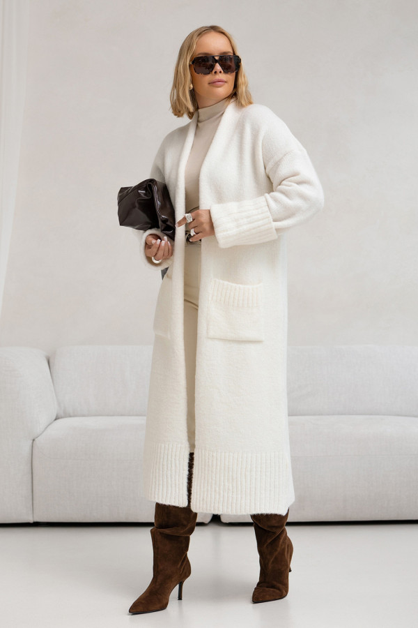 Oversized Strickmantel lang Strickjacke Cardigan Cappuchino S-XL