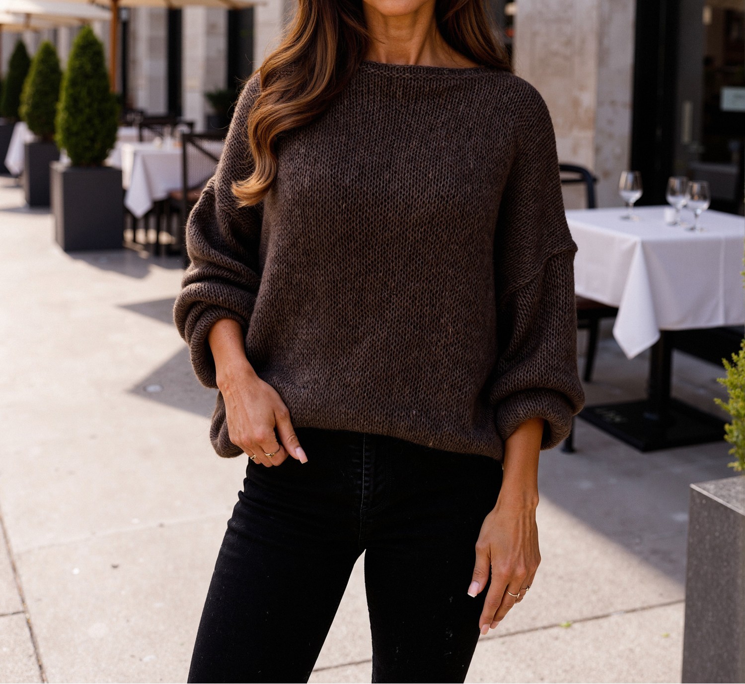 Dieser sehr hochwertige oversize Strickpullover mit mit weite Ärmel in Braun ist in Einheitsgröße und passt bei Größe : S M L XL