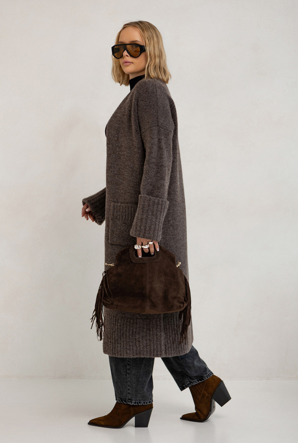 Dieser dicke Oversized-Strickmantel in Mokka ist in Einheitsgröße , passt bei bei S bis XL und ist real noch viel schöner !