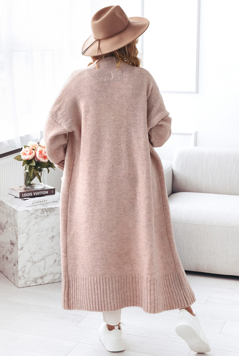 Dieser dicke Oversized-Strickmantel in puderfarbe ist in Einheitsgröße , passt bei bei S bis XL und ist real noch viel schöner !