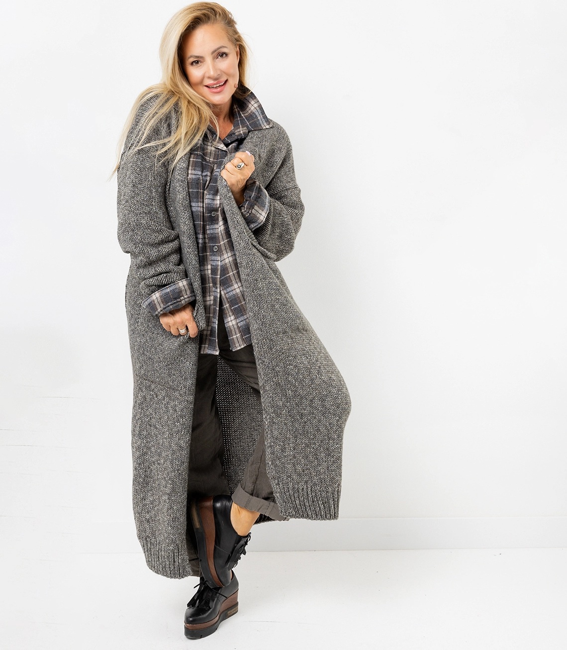 Dieser lange Oversized Strickmantel in Grau ist ein echtes Statement-Piece für moderne Frauen. Der Maxi Cardigan bis zu den Knöcheln sorgt für eine schlanke, streckende Silhouette und ist perfekt für trendige Layering-Looks.