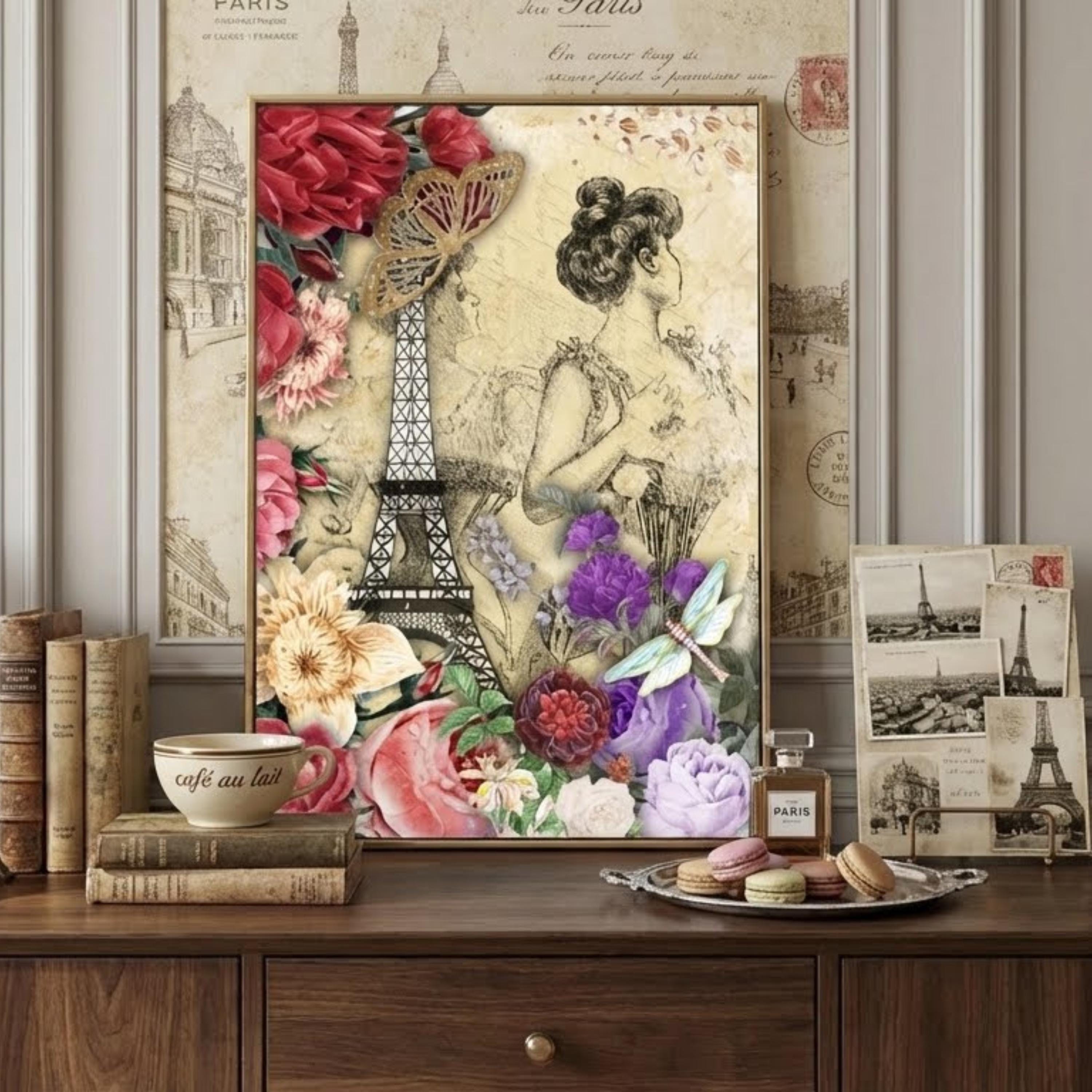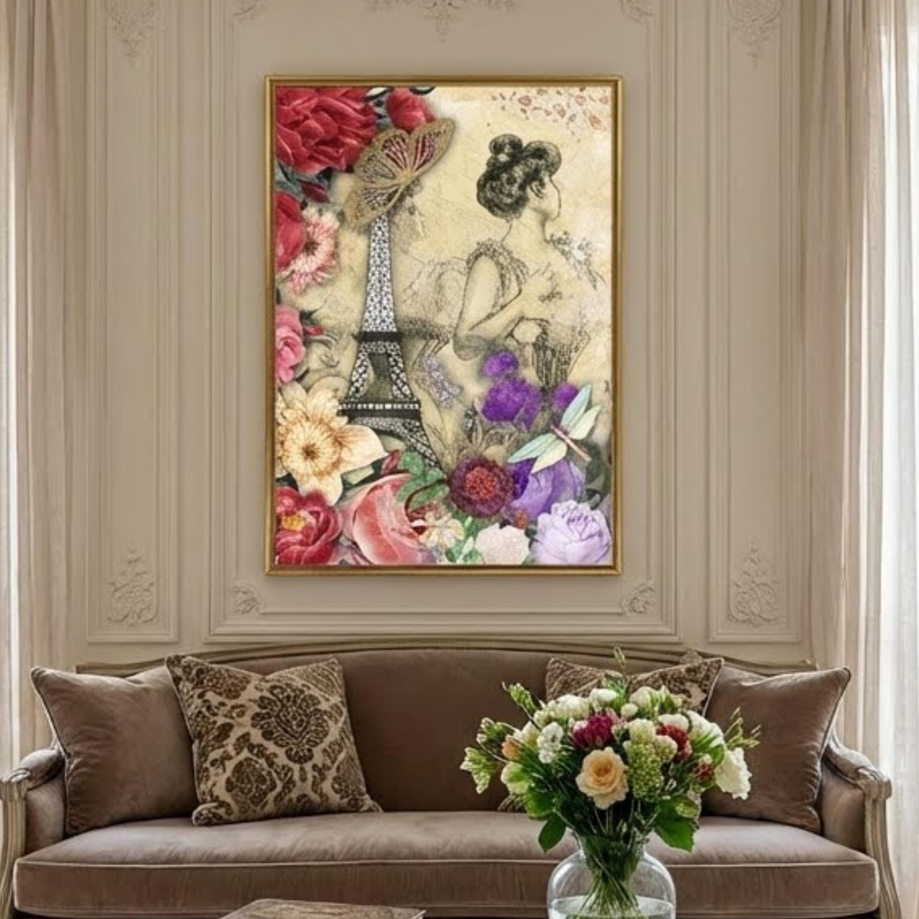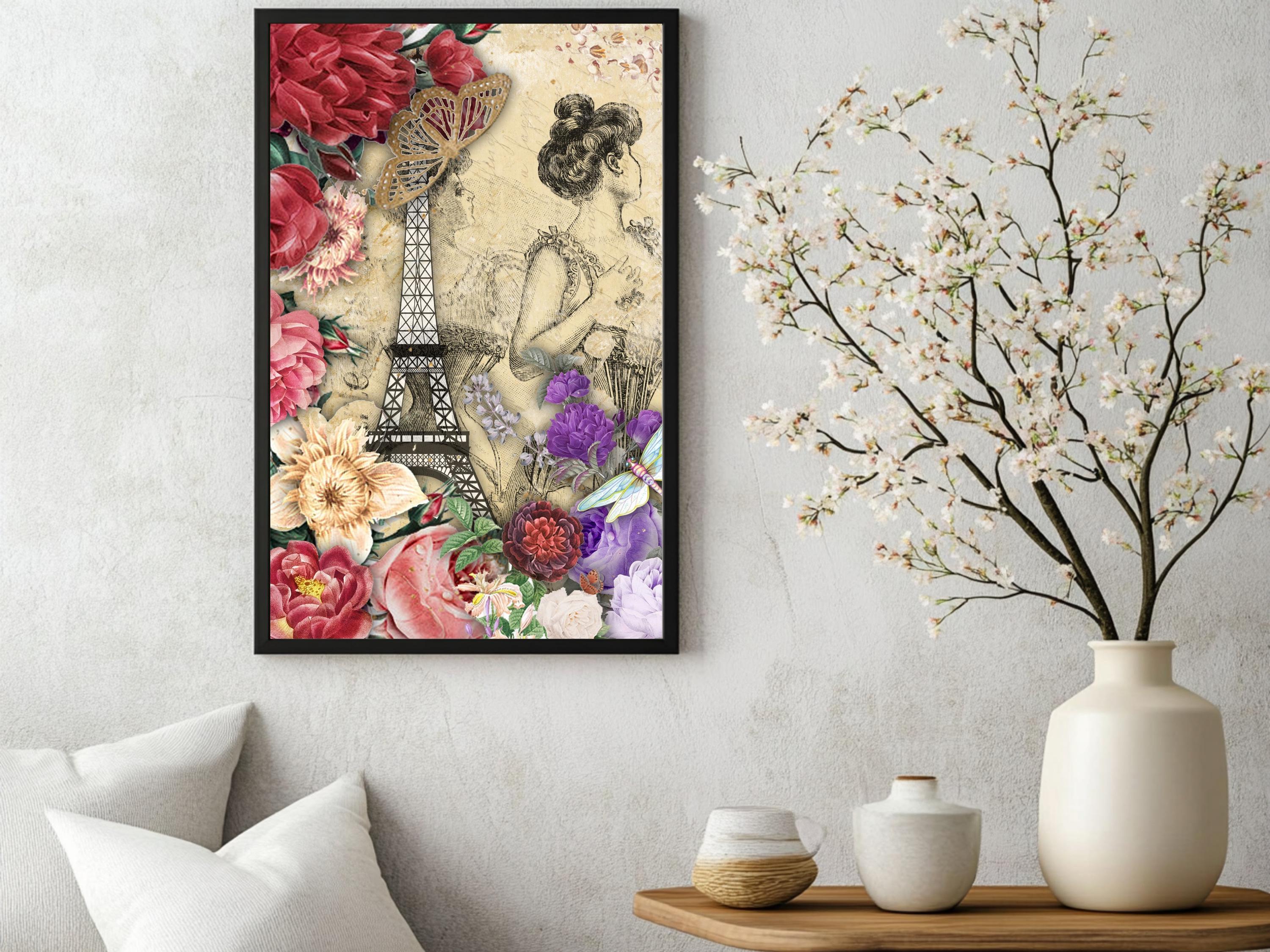 Paris im Frühling, eine elegante Frau, ein Meer aus Blumen und der Eiffelturm im Hintergrund. Dieses romantische Vintage-Poster bringt das Flair der französischen Hauptstadt direkt ins Wohnzimmer – ohne Kitsch, mit Stil. Ein Klassiker für alle, die Paris lieben oder sich einfach danach sehnen. Gedruckt auf hochwertigem 200g Papier mit mattem Finish. Format: DIN A4 (21 x 29,7 cm).