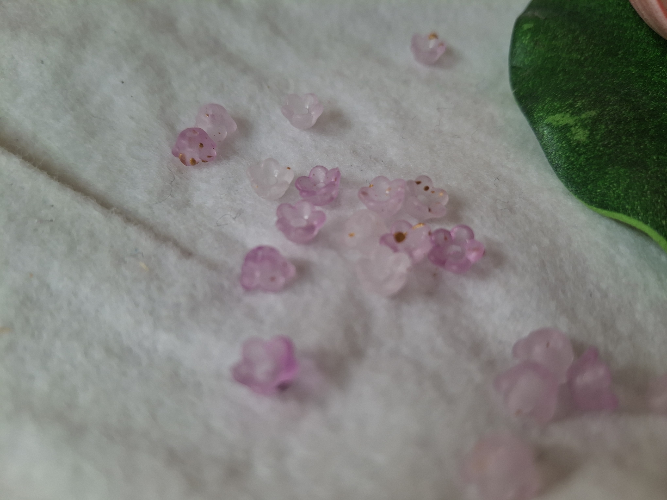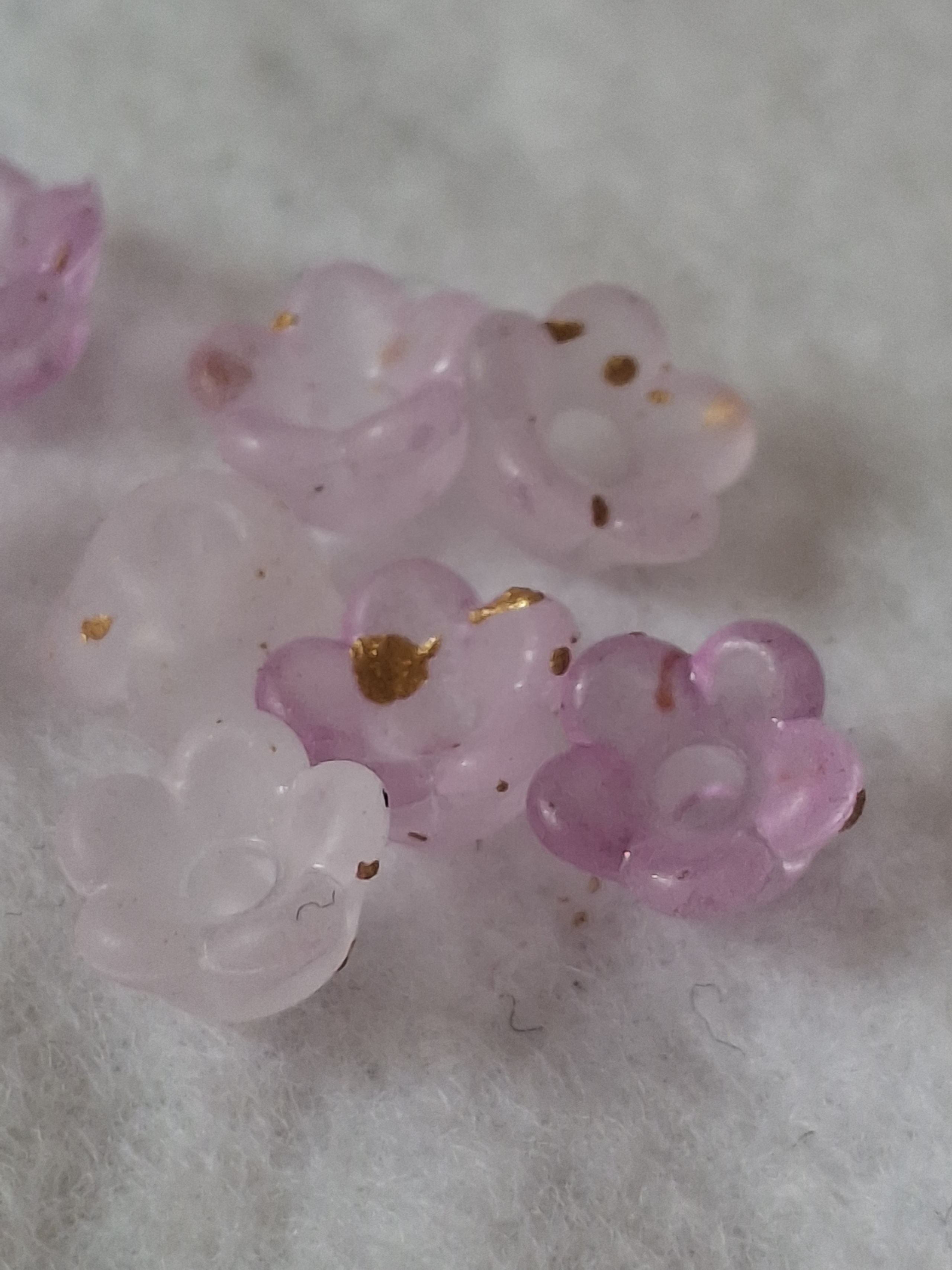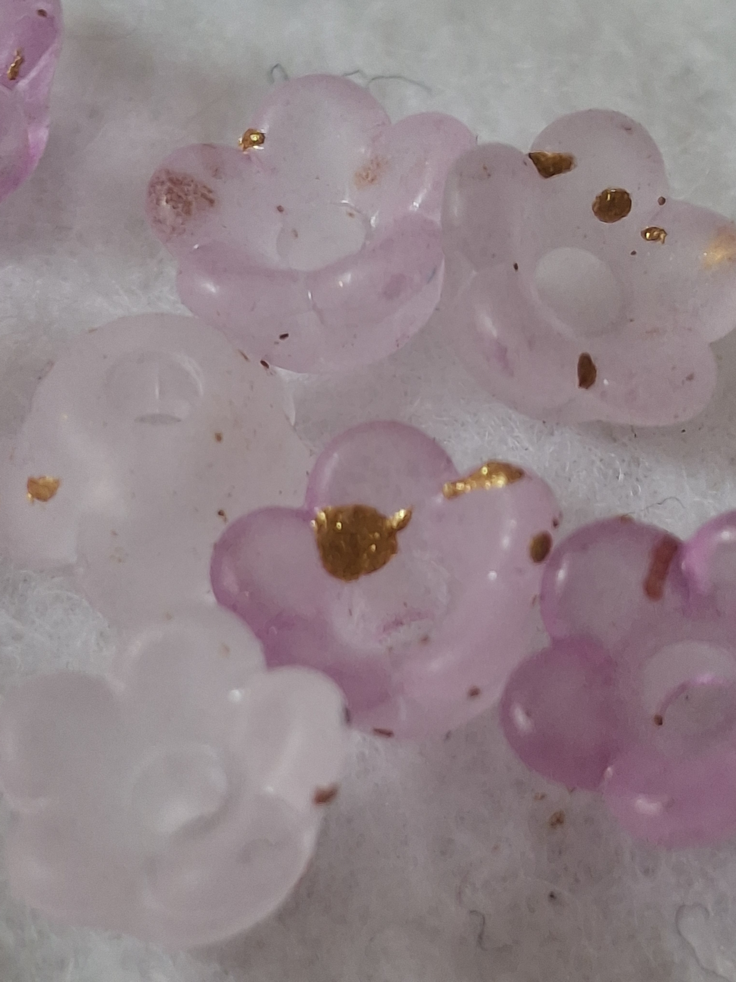 "Gefrostete" transparente Acrylperlen, rosa/weiß mit Goldfolie