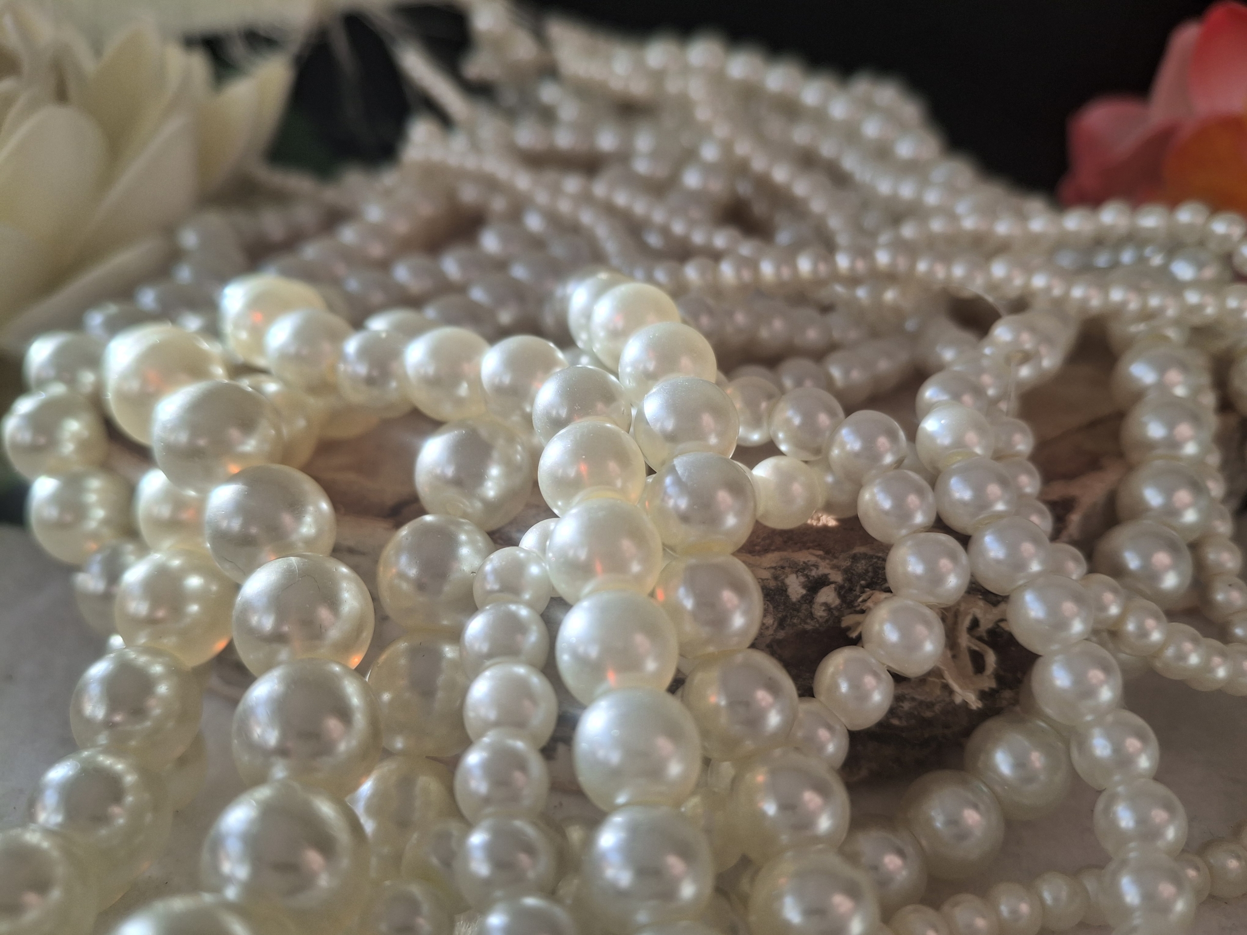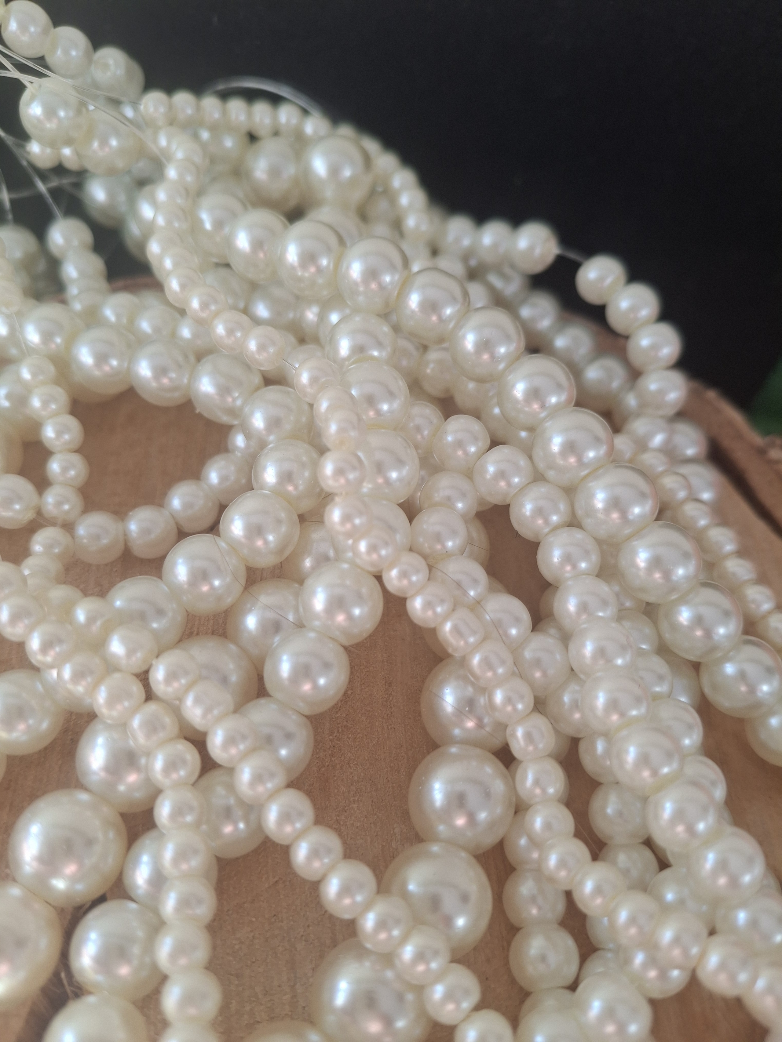 8 Stränge Glasperlen, perlig????, cremeweiß