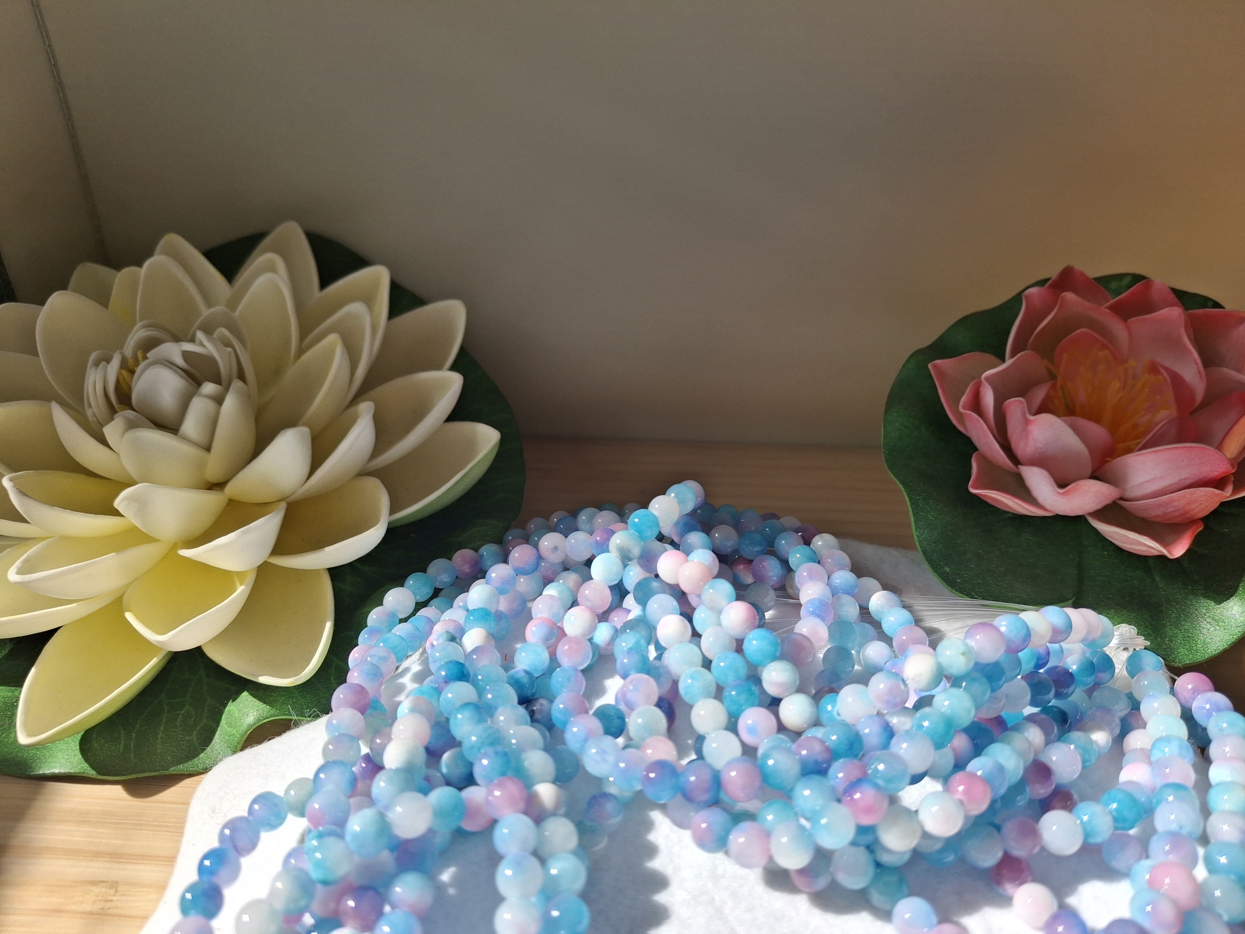 Natürlich gefärbte Perlen aus persischer Jade, Farbverlauf: rosa-pink-schwarz,