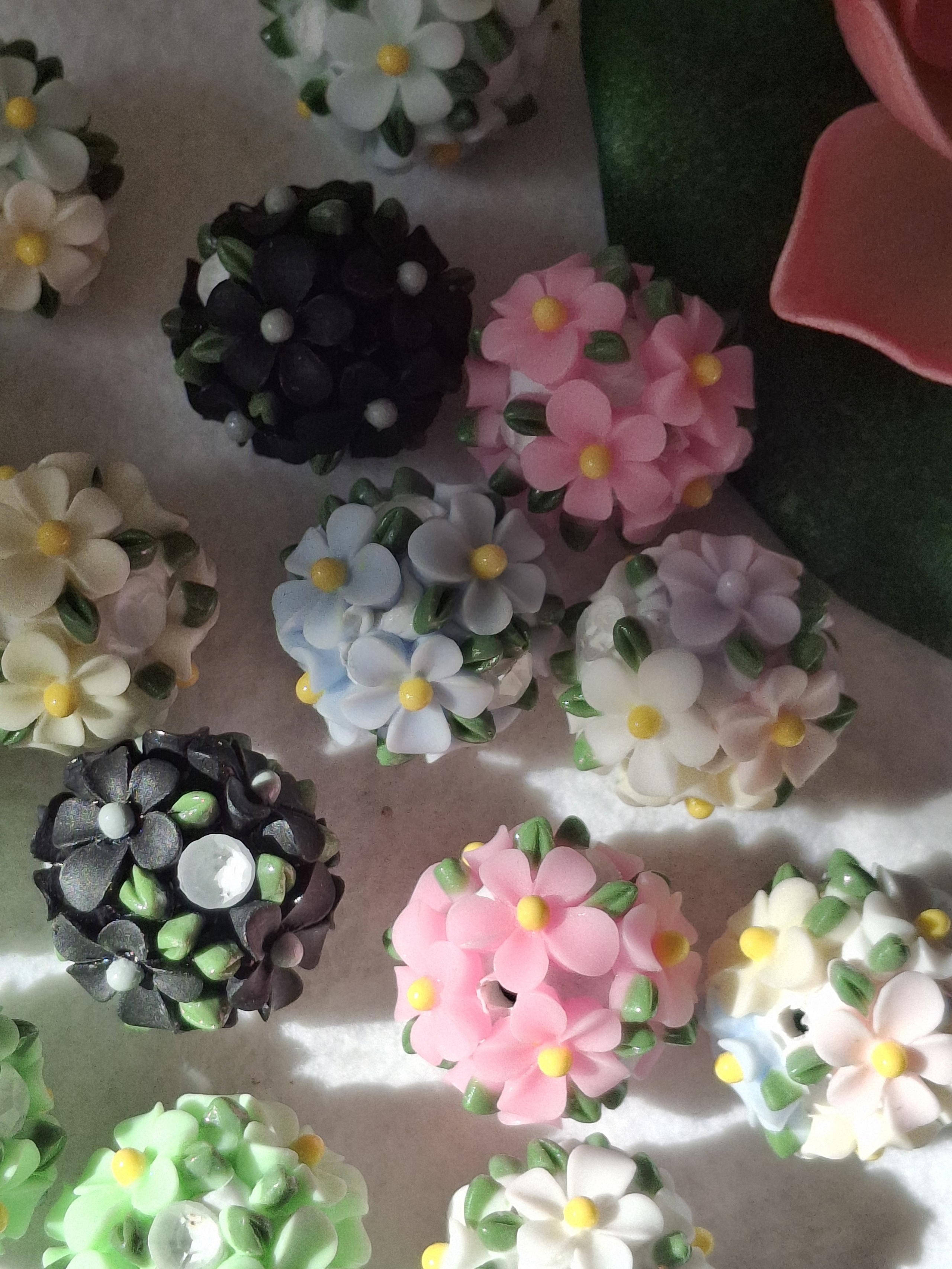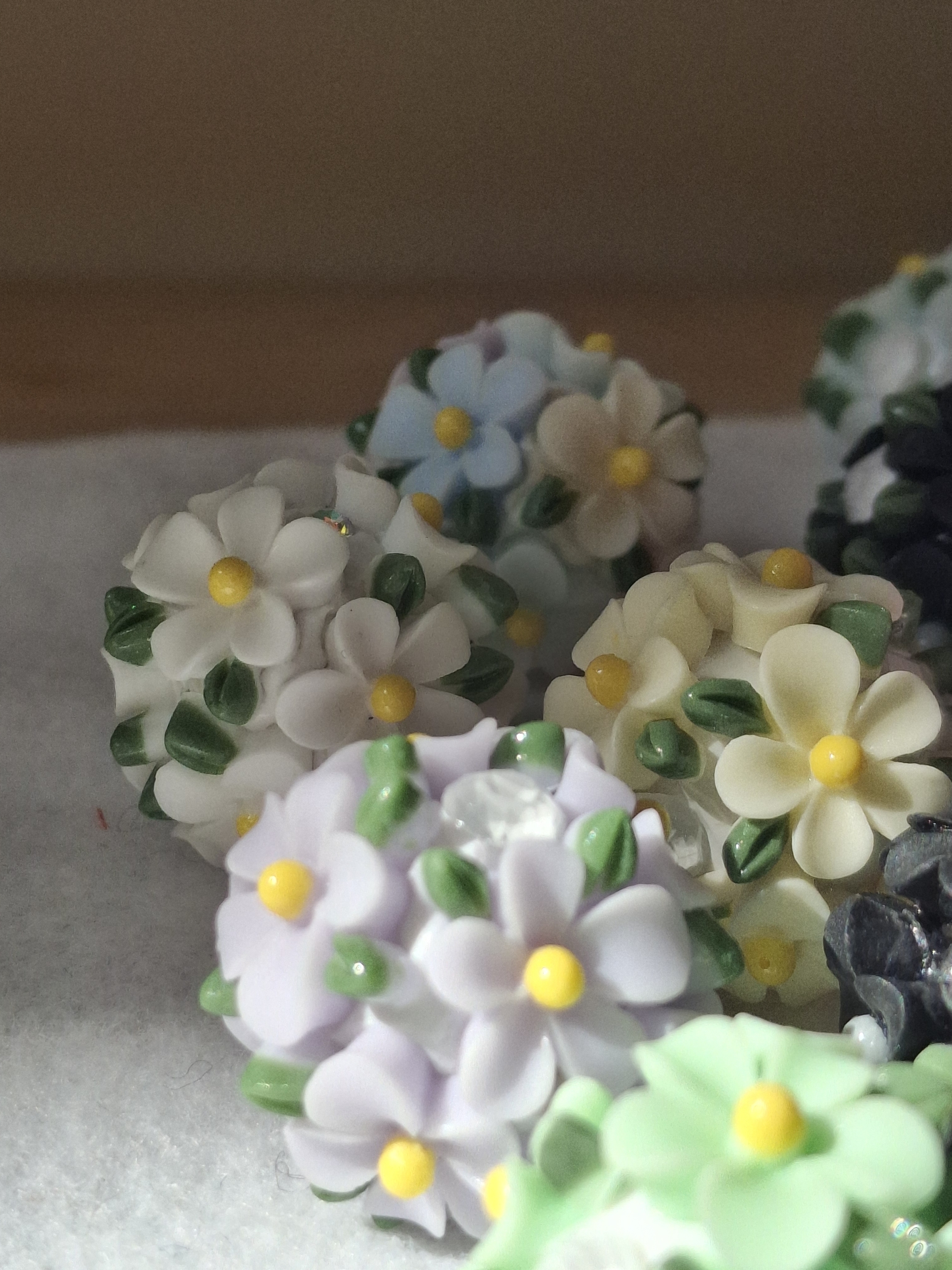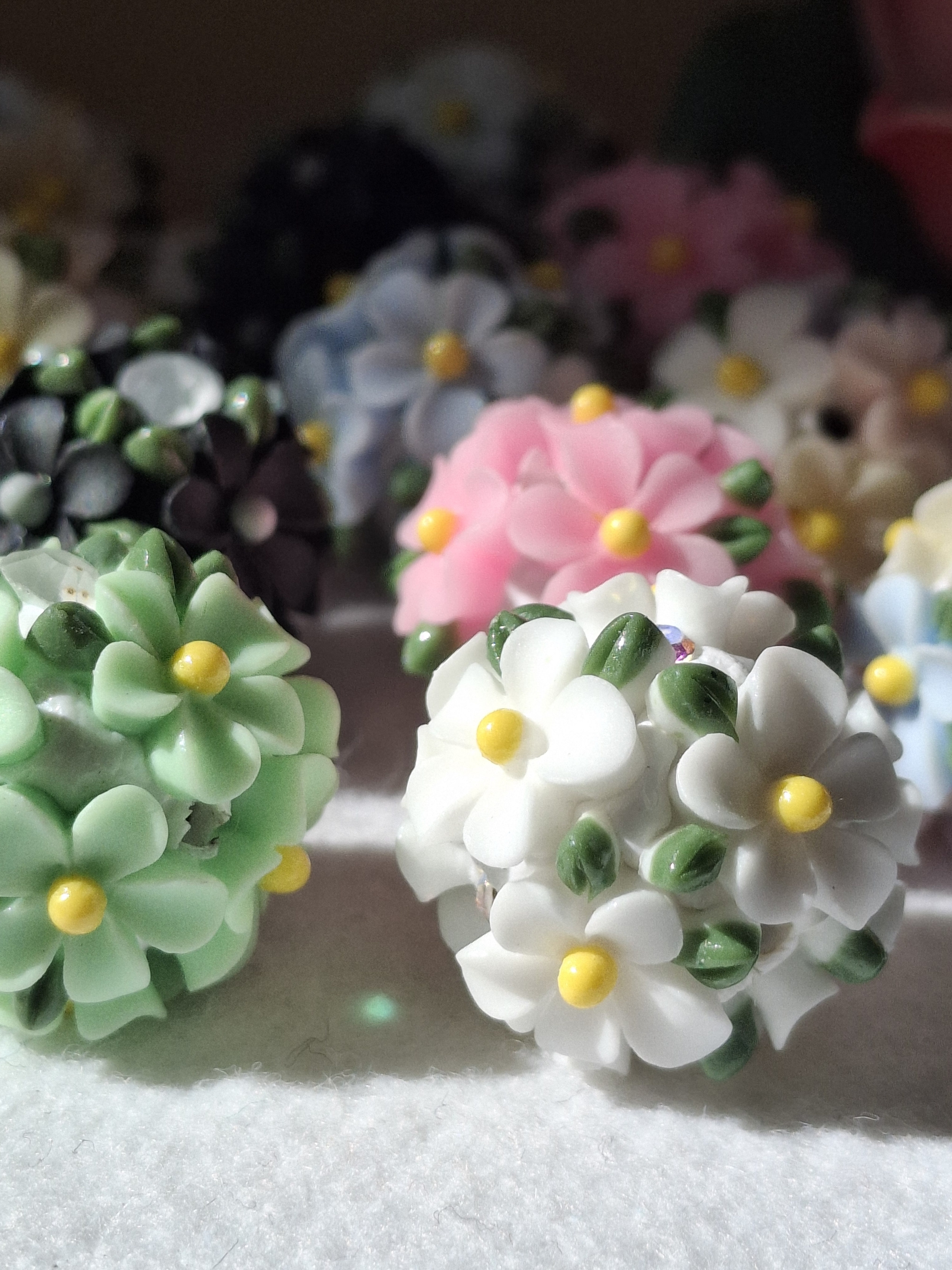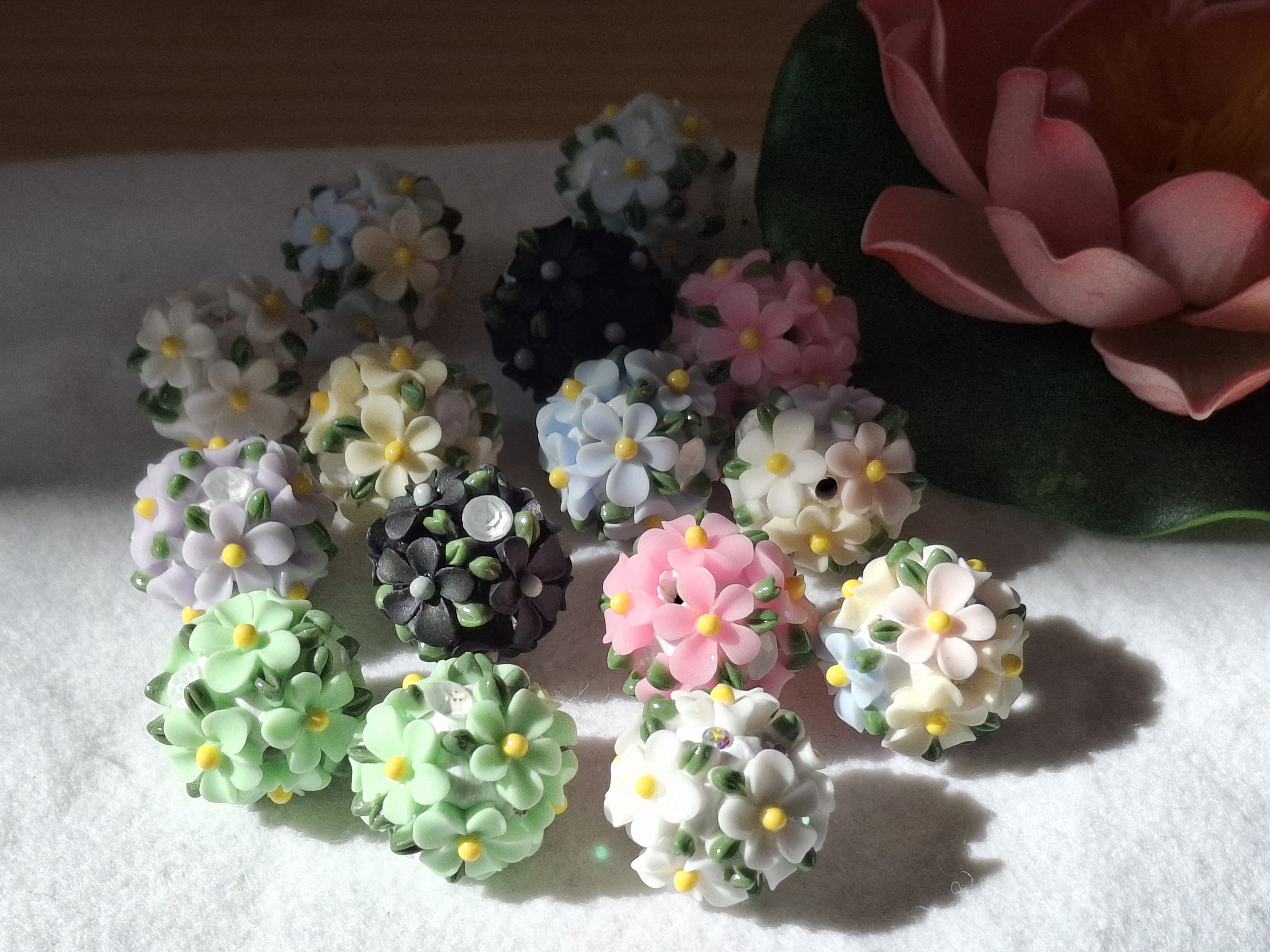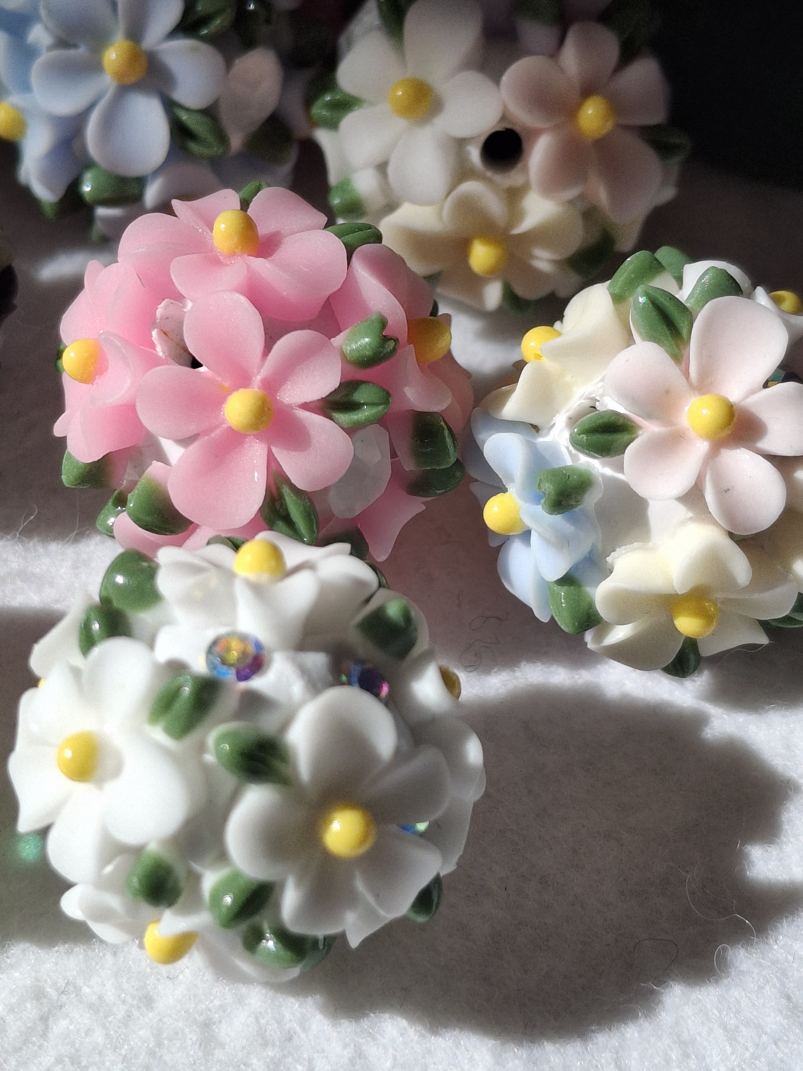 Handgefertigte Strassperlen aus Polymerclay und Harz