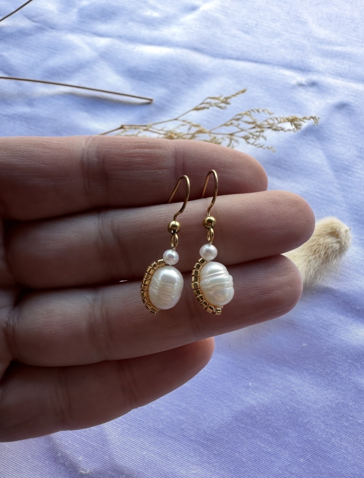 Zarte Drop-Ohrringe aus AA-Süßwasserperlen mit gold Edelstahl