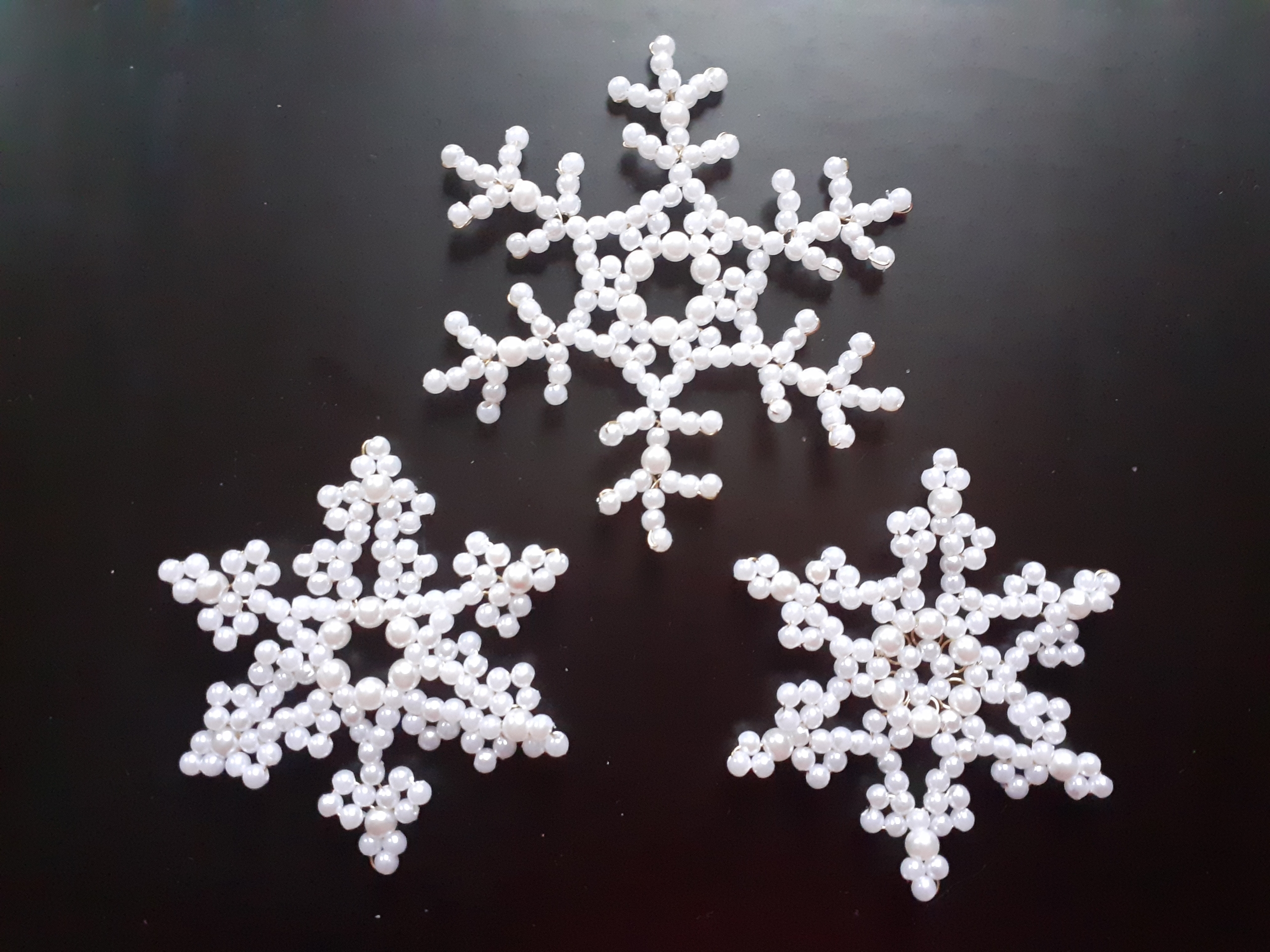 Ein wunderschönes Set aus 3 verschiedenen Schneeflocken aus Perlen - in liebevoller Handarbeit von mir gefertigt.