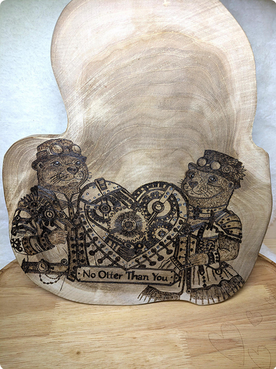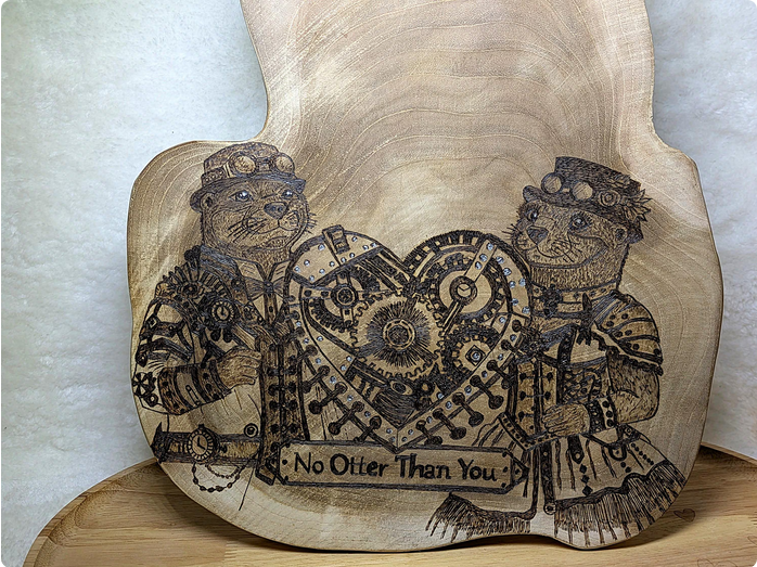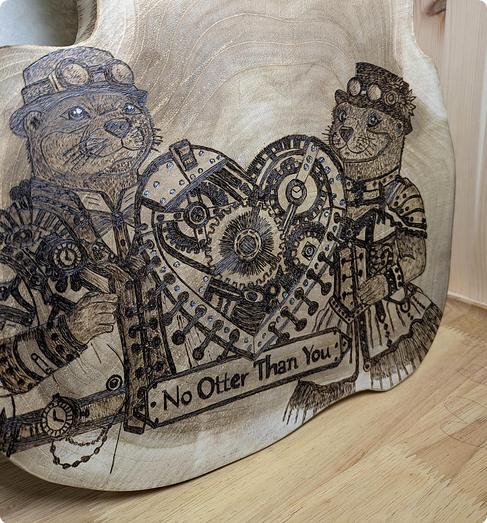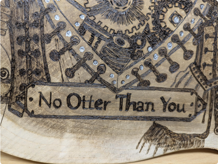 Das Motiv zeigt zwei anthropomorphe Otter im Steampunk-Stil, die gemeinsam ein mechanisches Herz halten. Unter dem Motiv befindet sich der Schriftzug „No Otter Than You“.