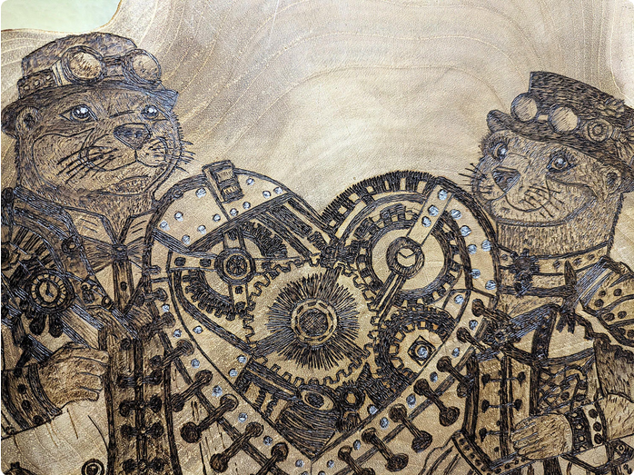 Motiv: Zwei steampunk-inspirierte Otter mit mechanischem Herz