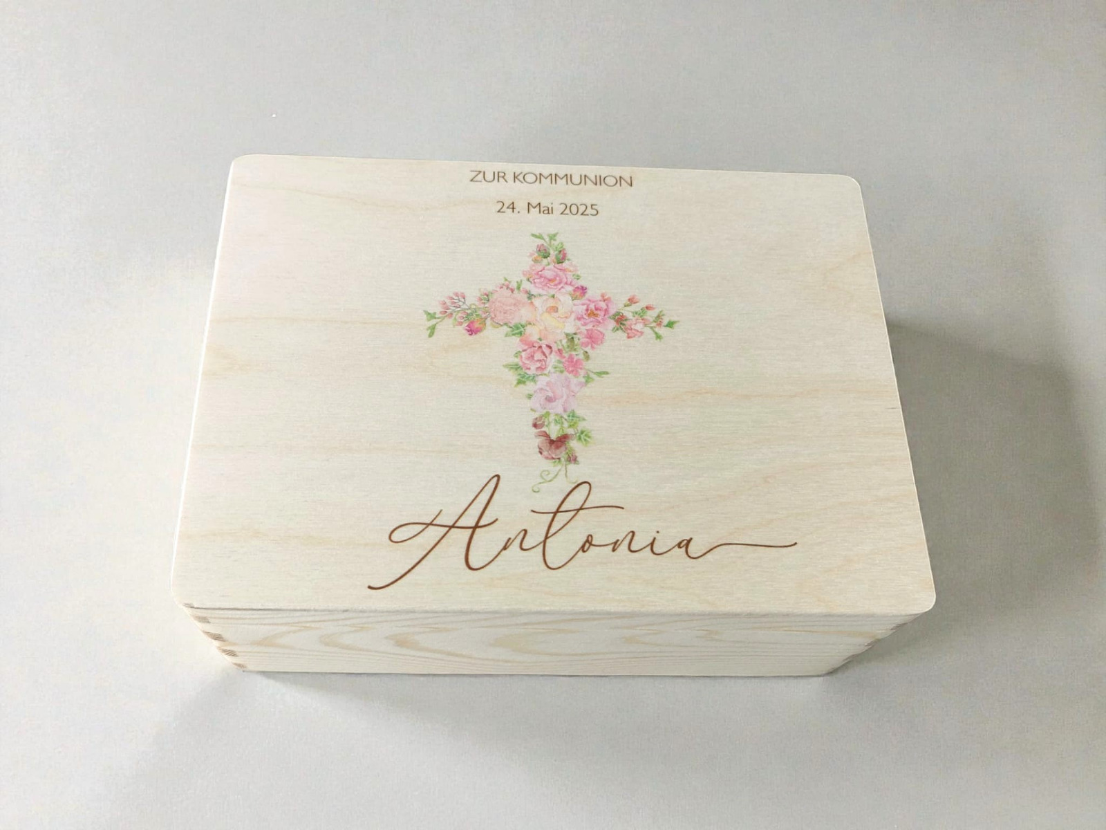 ✨ Personalisierte Holzkiste – Deine individuelle Erinnerungsbox zur Konfirmation, Kommunion oder Taufe ✨