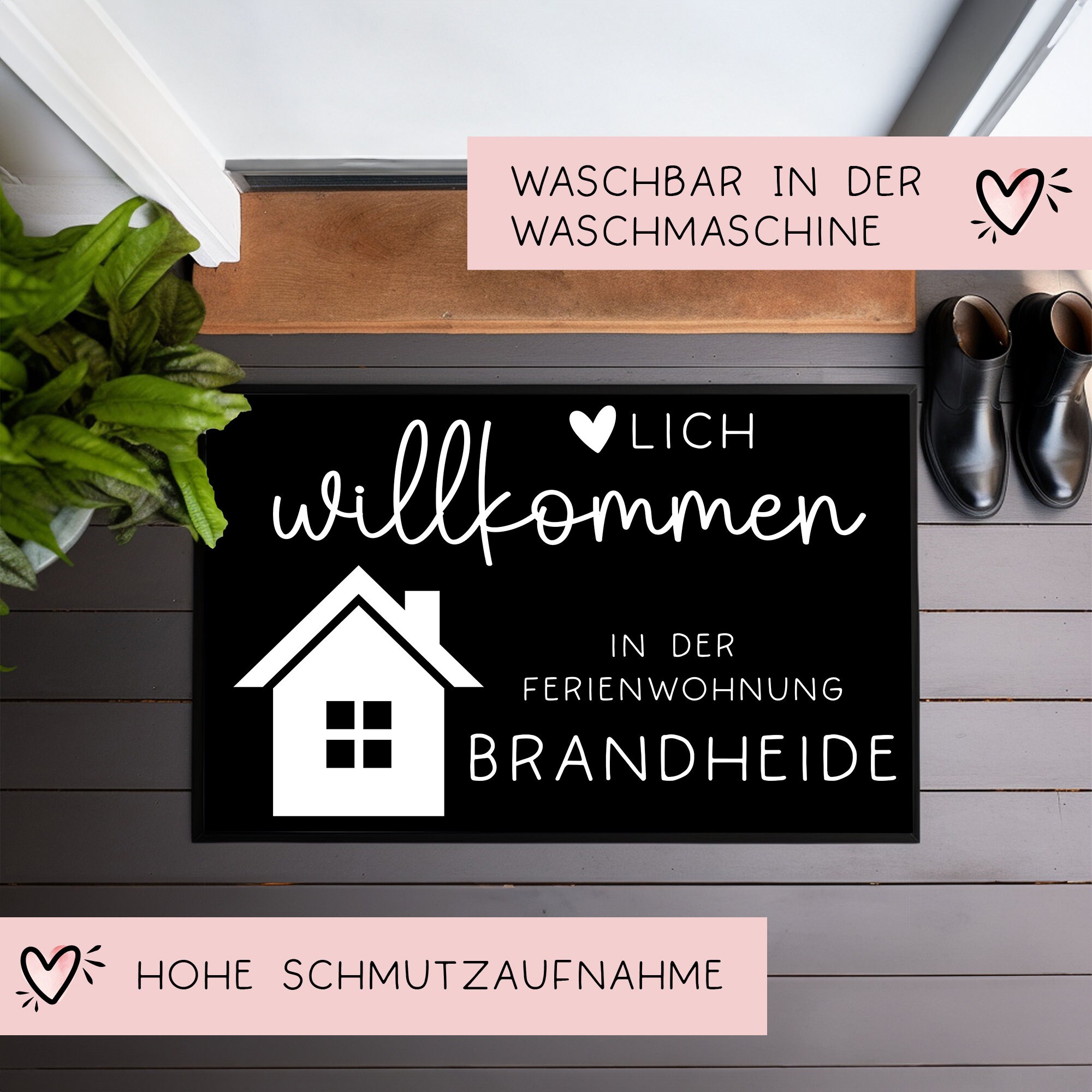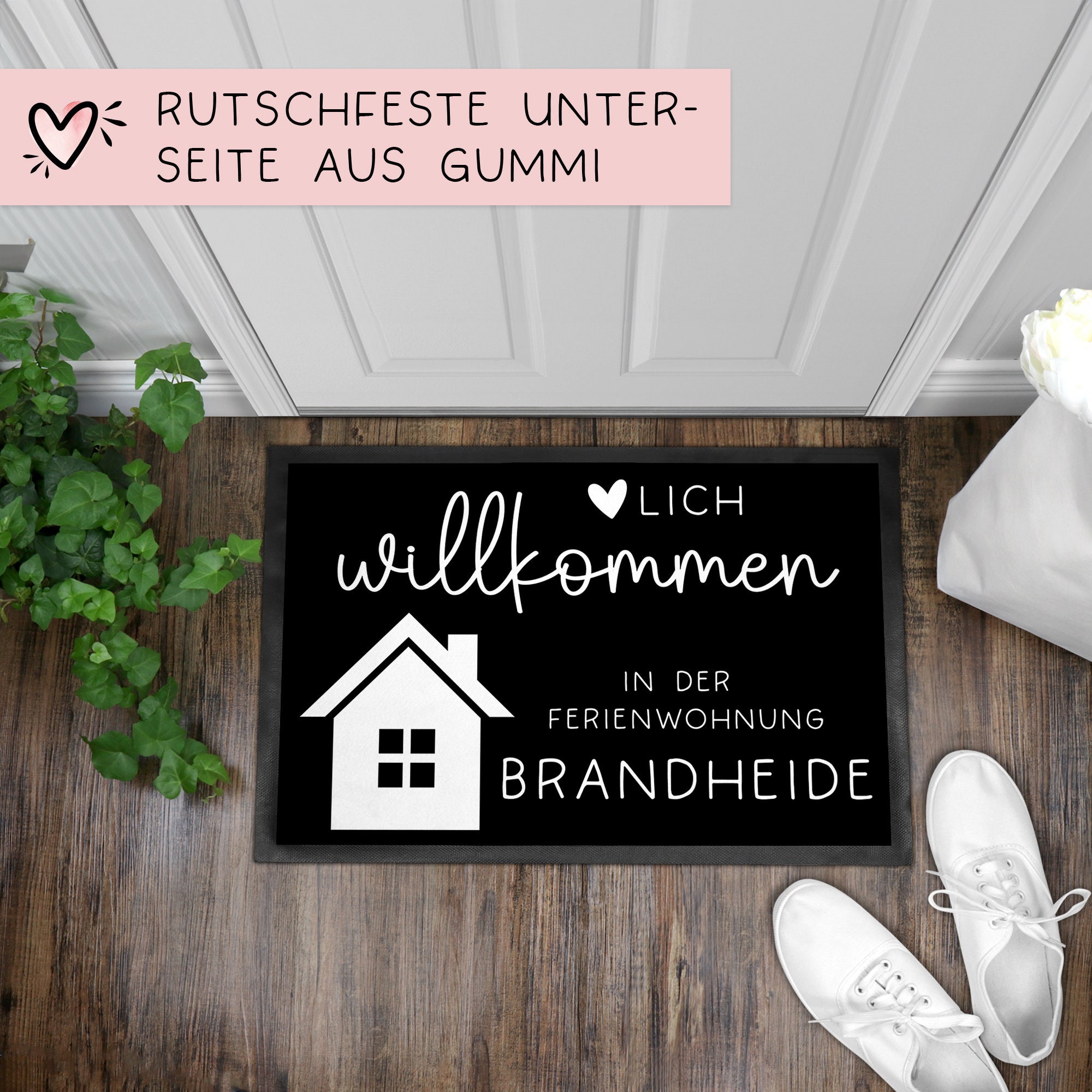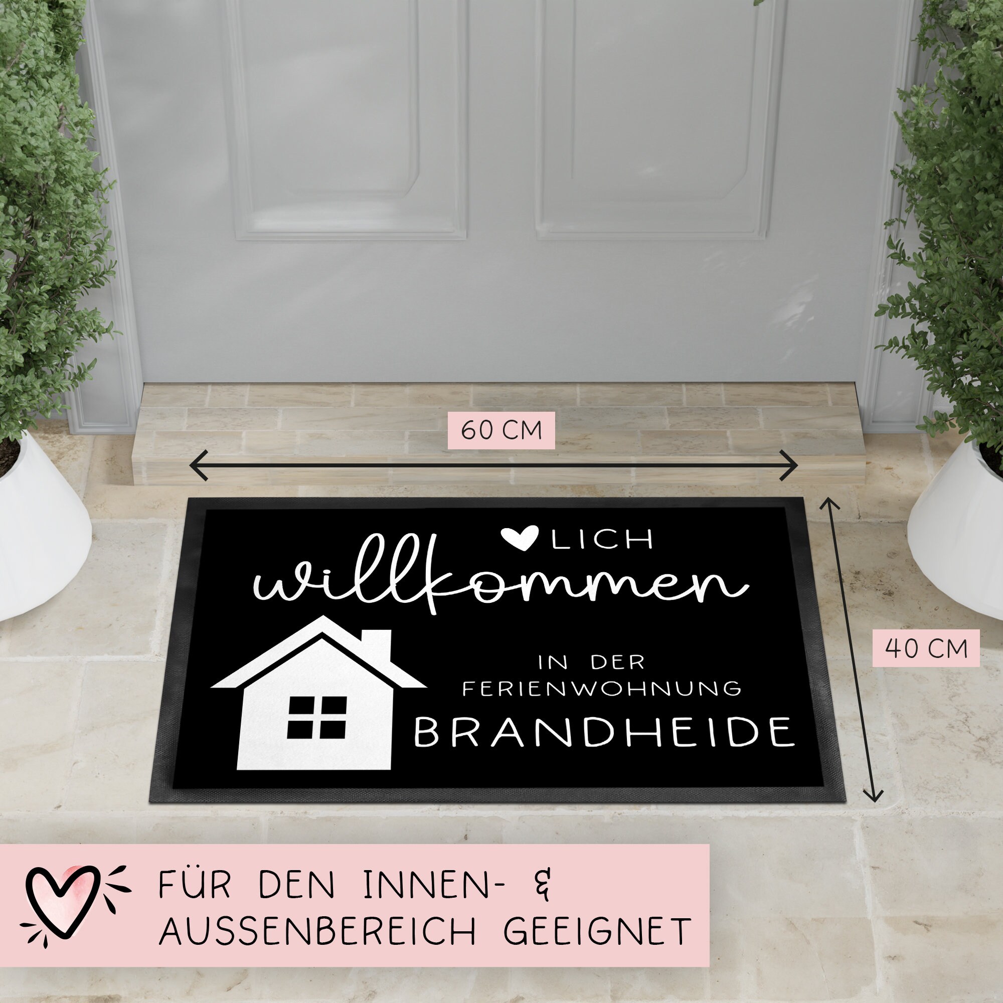 Personalisierte Fußmatte - für Ferienwohnung, Apartments, Ferienhaus, Ferienhäuser, Ferienunterkunft| Herzlich Willkommen | 60x40 cm