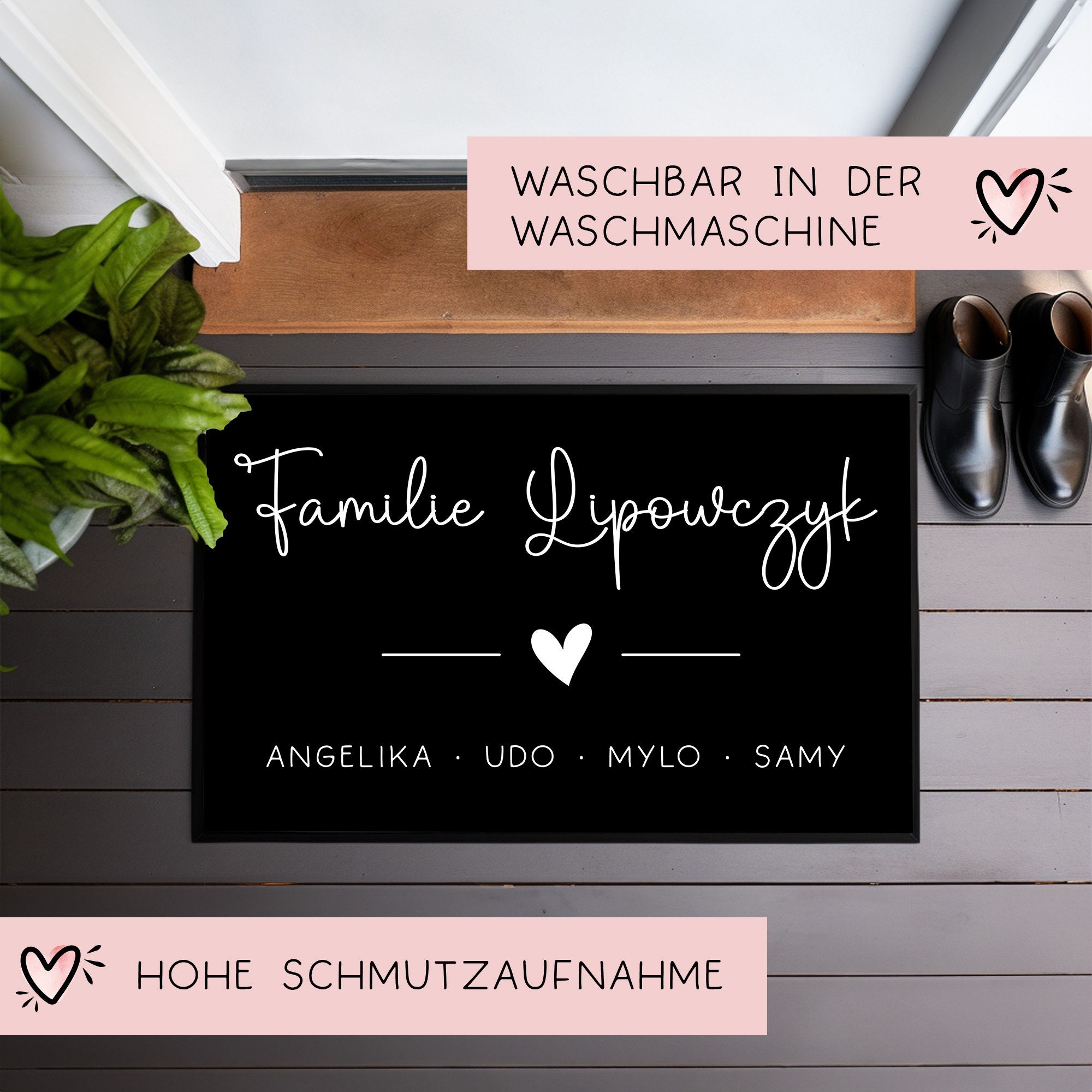 Personalisierte Fußmatte - Fussmatte Nachnamen Vornamen Wunschnamen | 60x40 cm | Geschenkidee zum Umzug, Einzug für Familien, Umzug