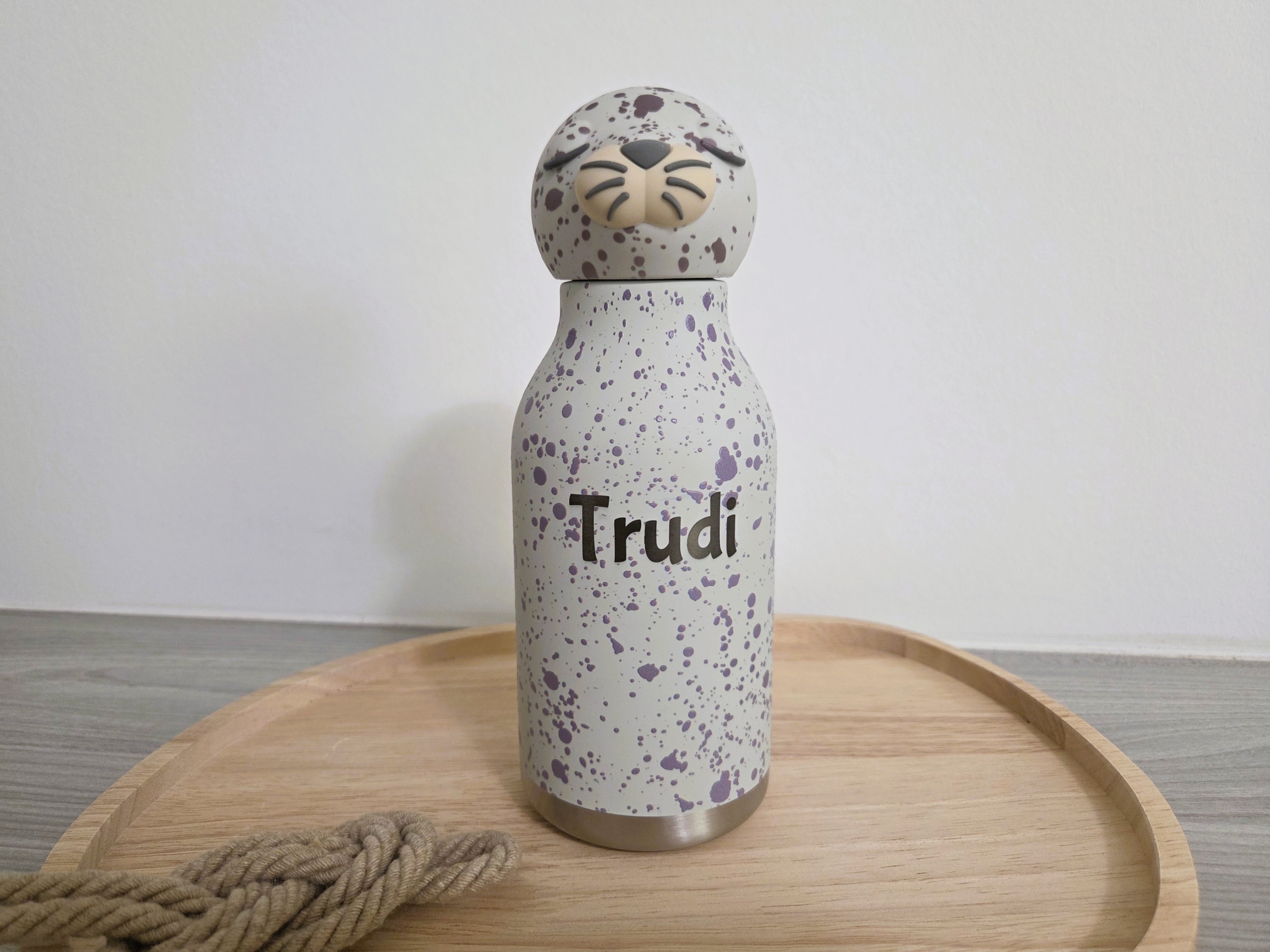 ~ eine Trinkflasche in deinem ausgewählten Design (inkl. Silikonkopf, integriertem Silikon-Trinkhalm, Reinigungsbürste für den Trinkhalm)