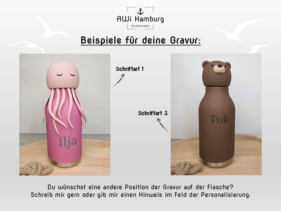 ❗Bitte beachte, dass individuell angefertigte Trinkflaschen inkl. Gravur vom Umtausch und der Rückgabe ausgeschlossen sind.