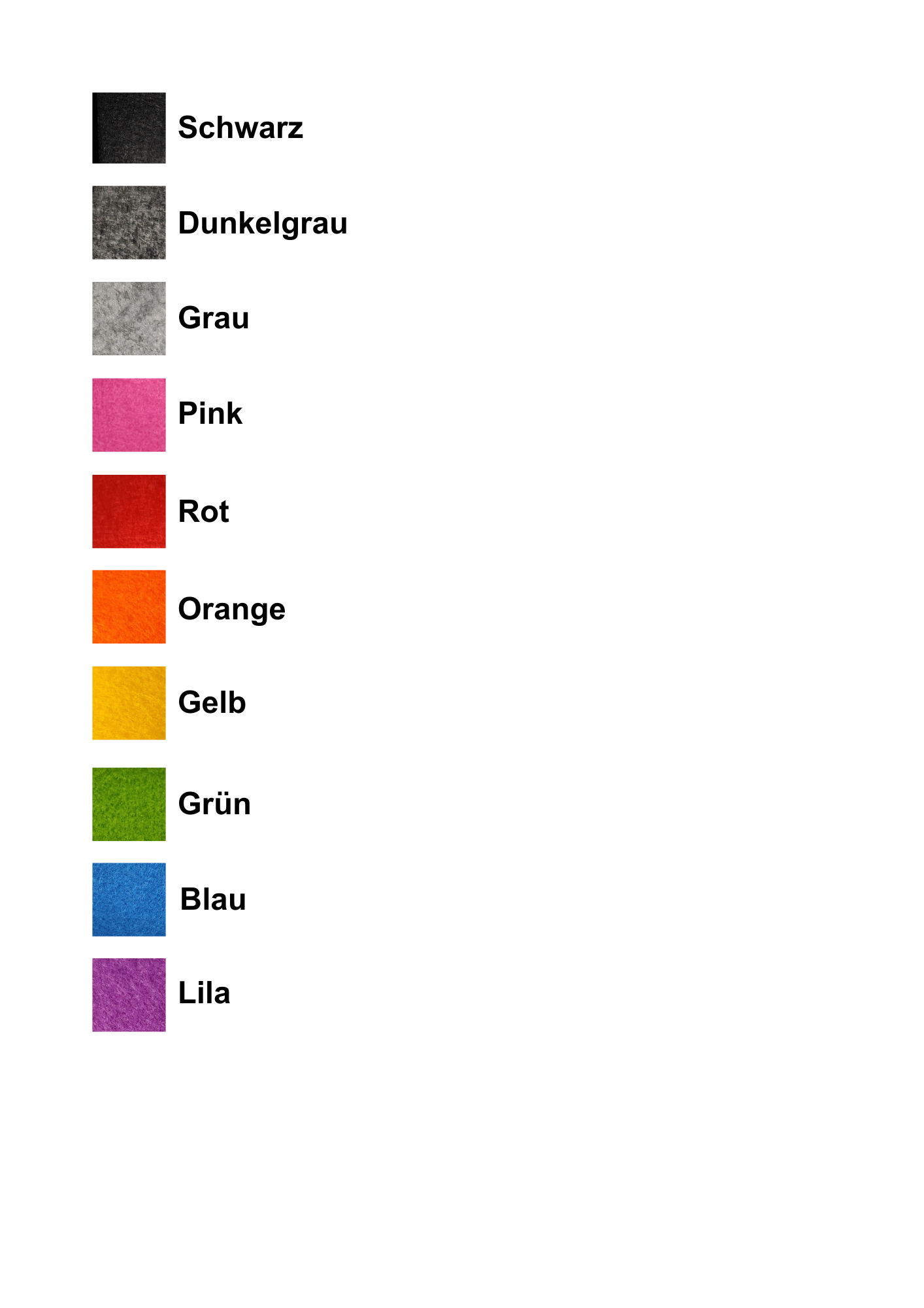 Wähle aus folgenden Filzfarben: