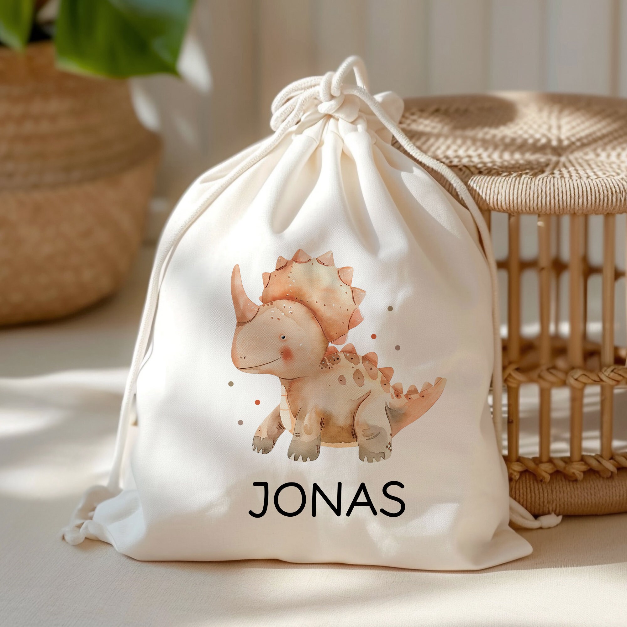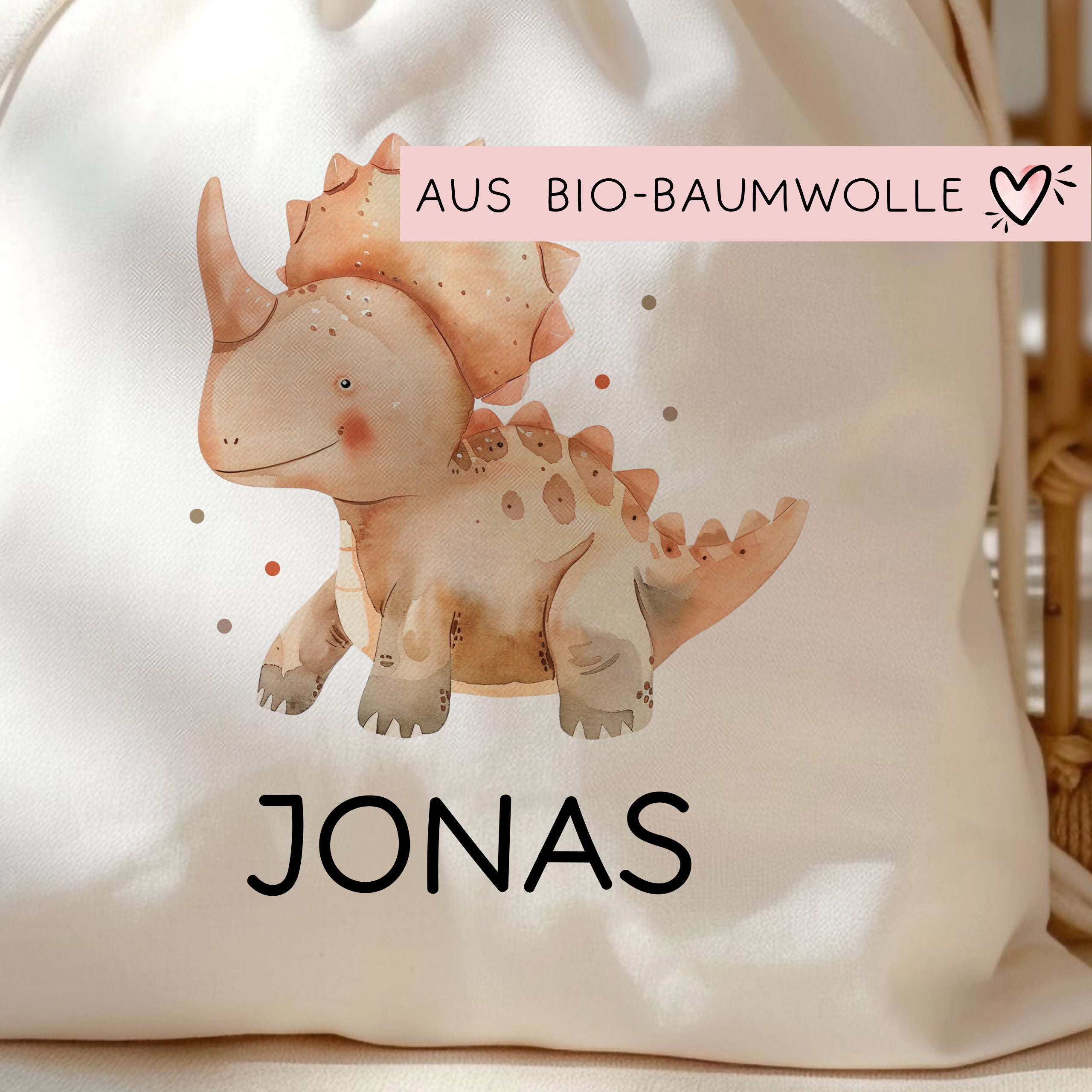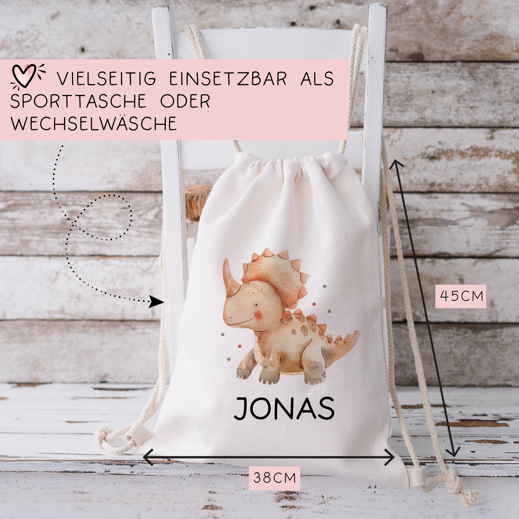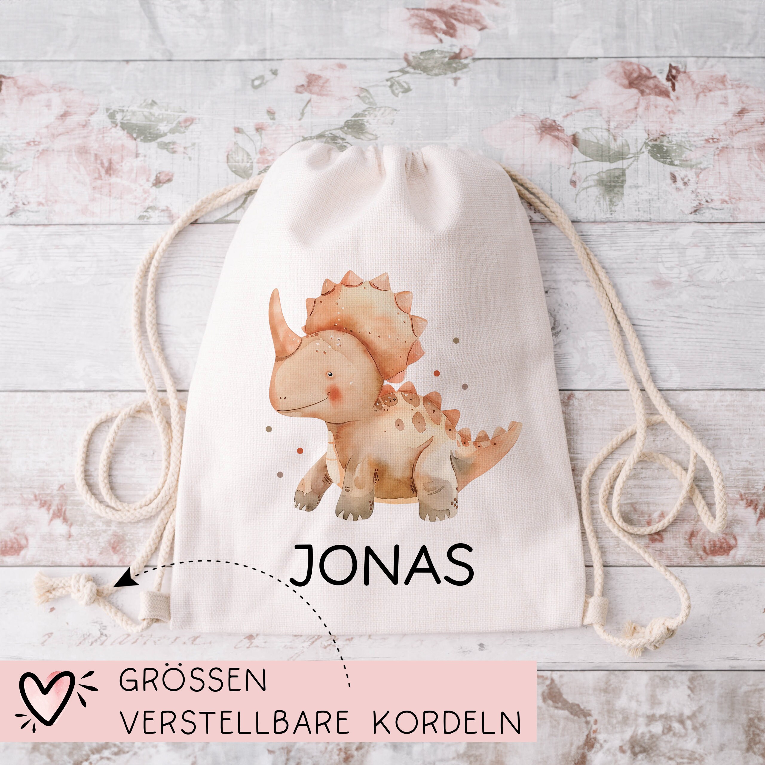 Personalisierter Turnbeutel Dinosaurier Dino "Triceratops " mir Wunschnamen | Rucksack für Schule, Kindergarten, KITA, Wäschebeutel, Sportbeutel