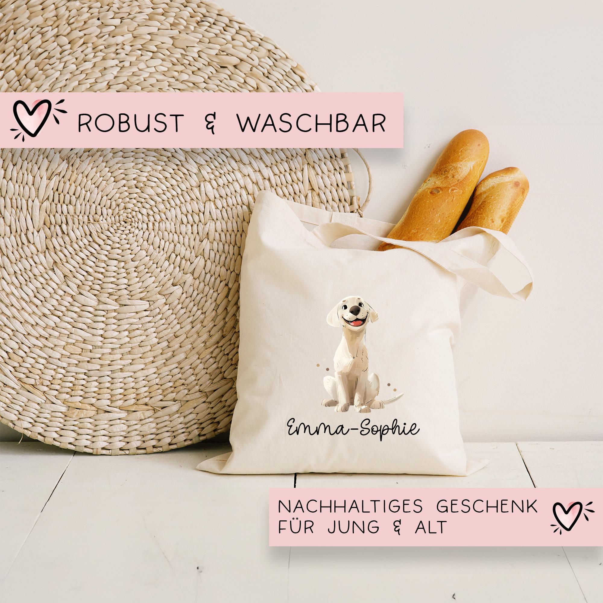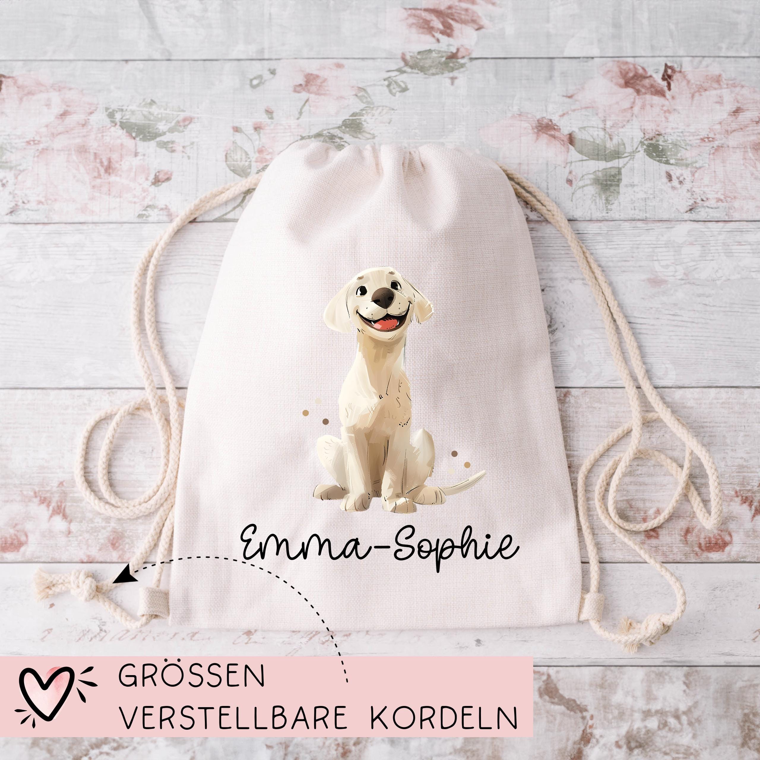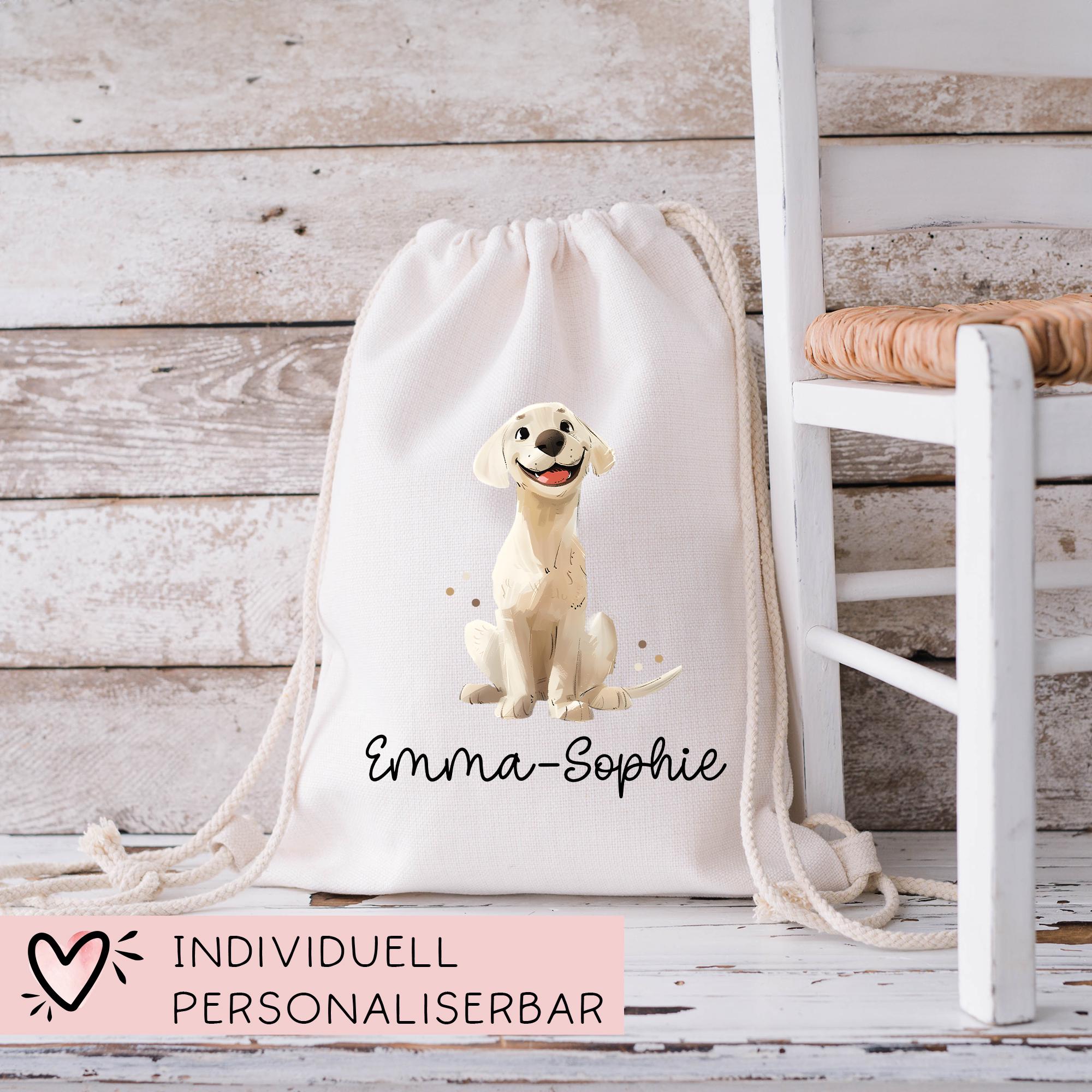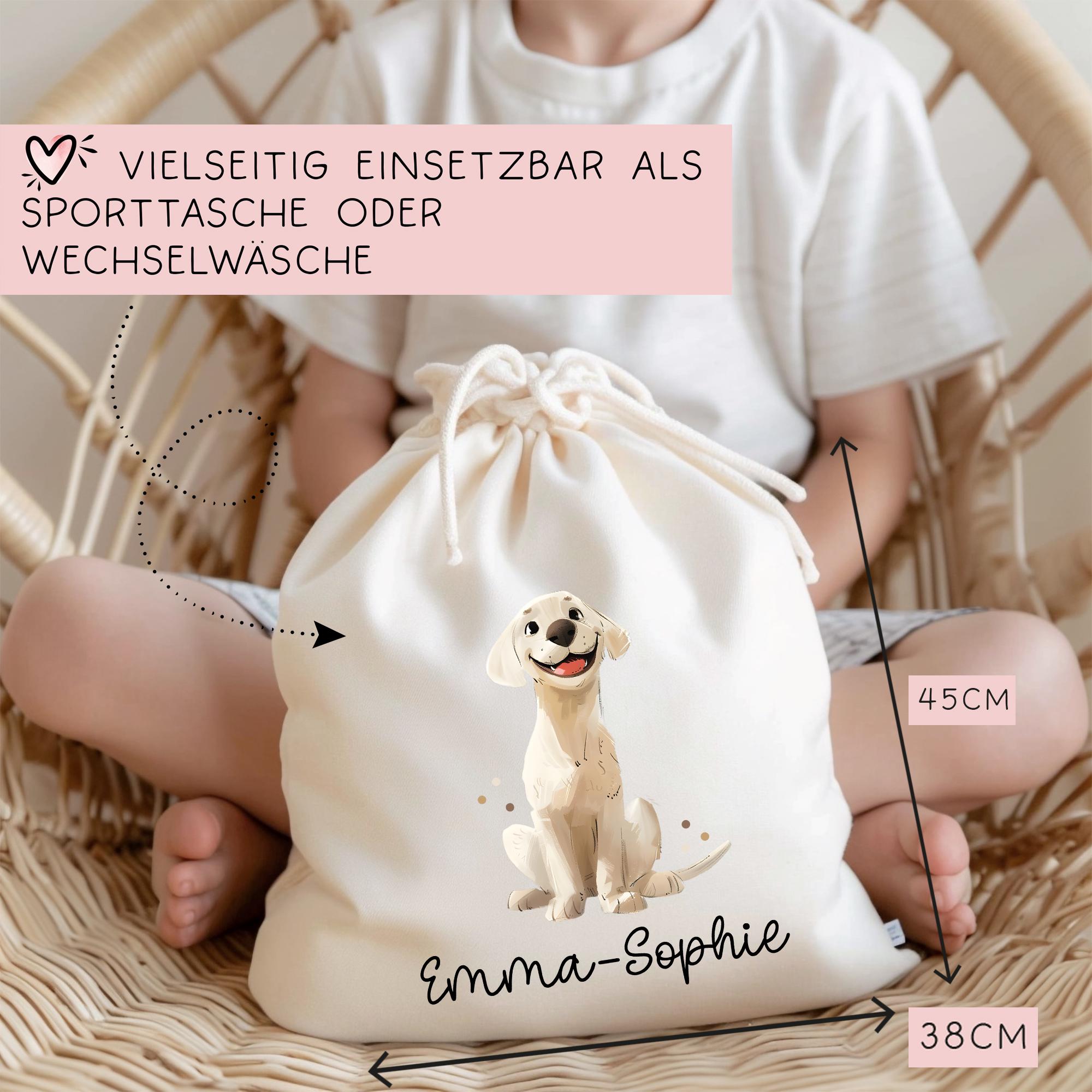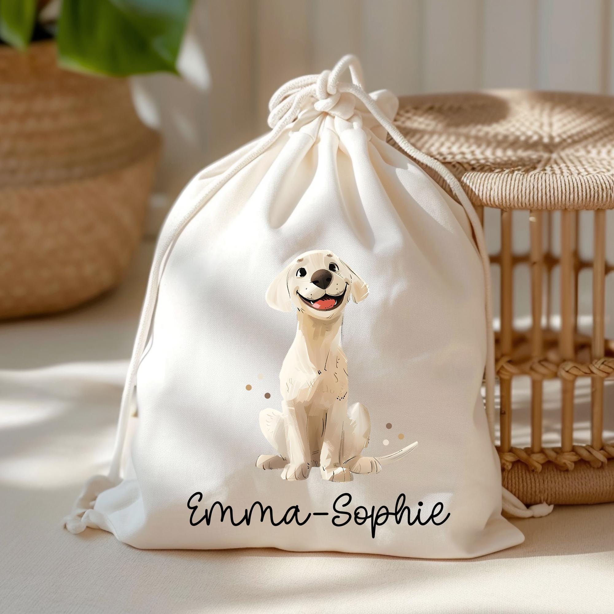 Personalisierter Turnbeutel Hund Labrador und Wunschnamen für Schule - Kindergarten, KITA - als Wäschebeutel, Sportbeutel - Weihnachten