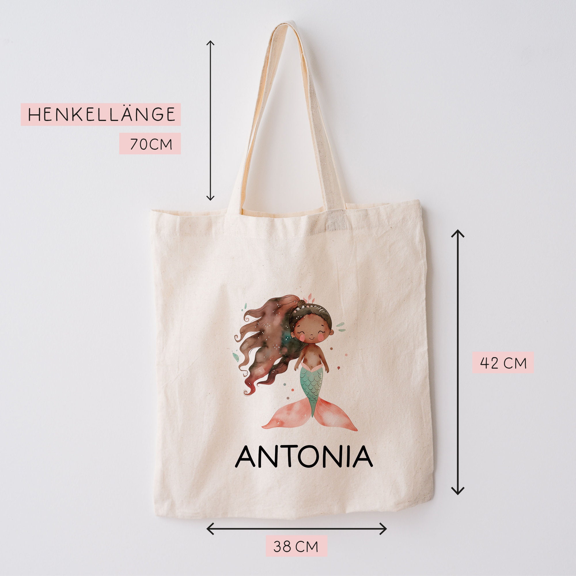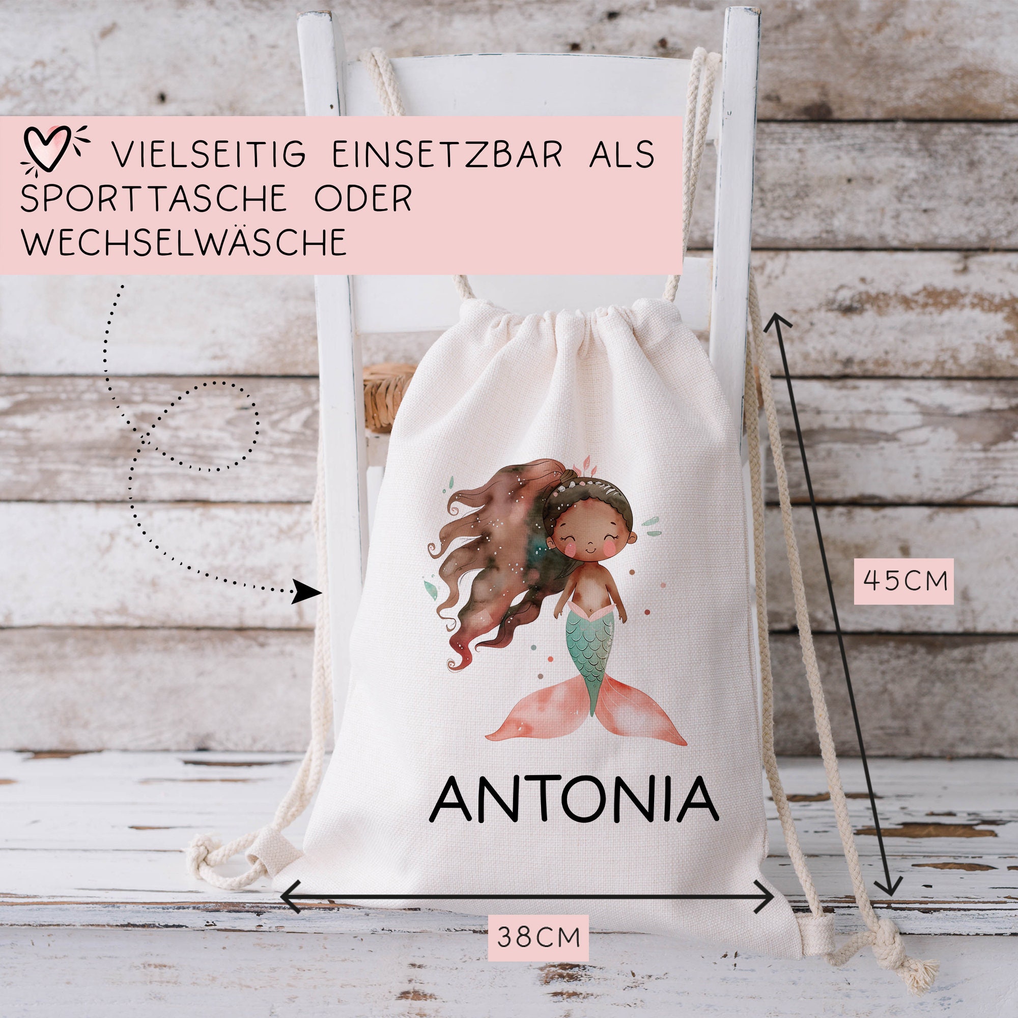 Der Turnbeutel ist nicht nur langlebig und strapazierfähig, sondern auch ein echter Hingucker. Er ist mit einer süßen Meerjungfrau und dem Namen des Kindes bedruckt, was ihn zu einem ganz besonderen und einzigartigen Accessoire macht. Die liebevoll gestaltete Meerjungfrau bringt eine verspielte Note in den Alltag der Kleinen und zaubert jedem Kind ein Lächeln ins Gesicht.