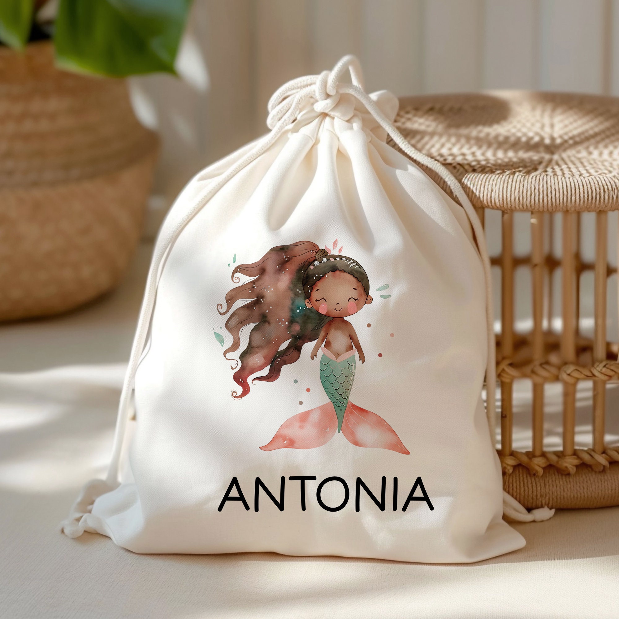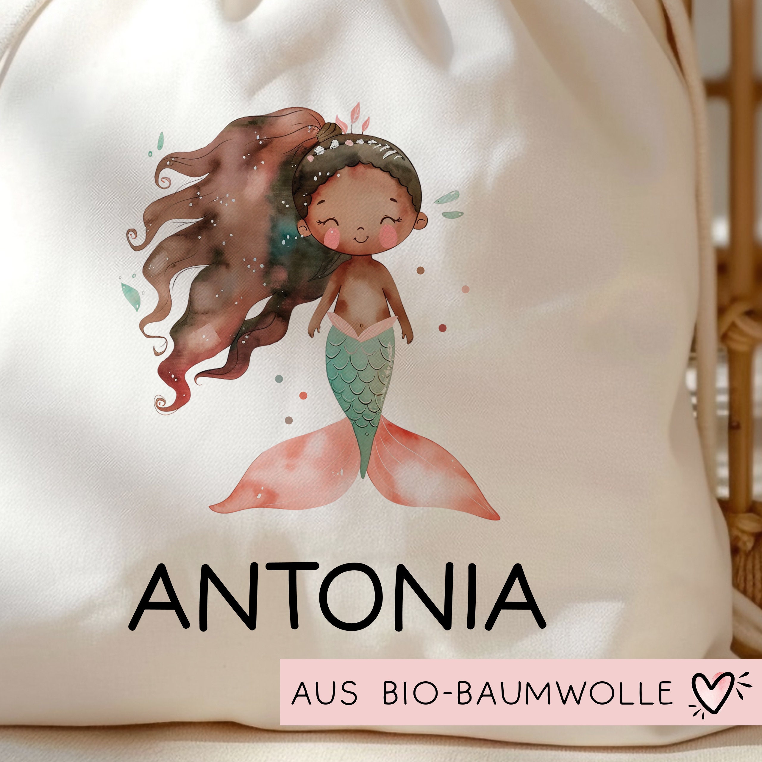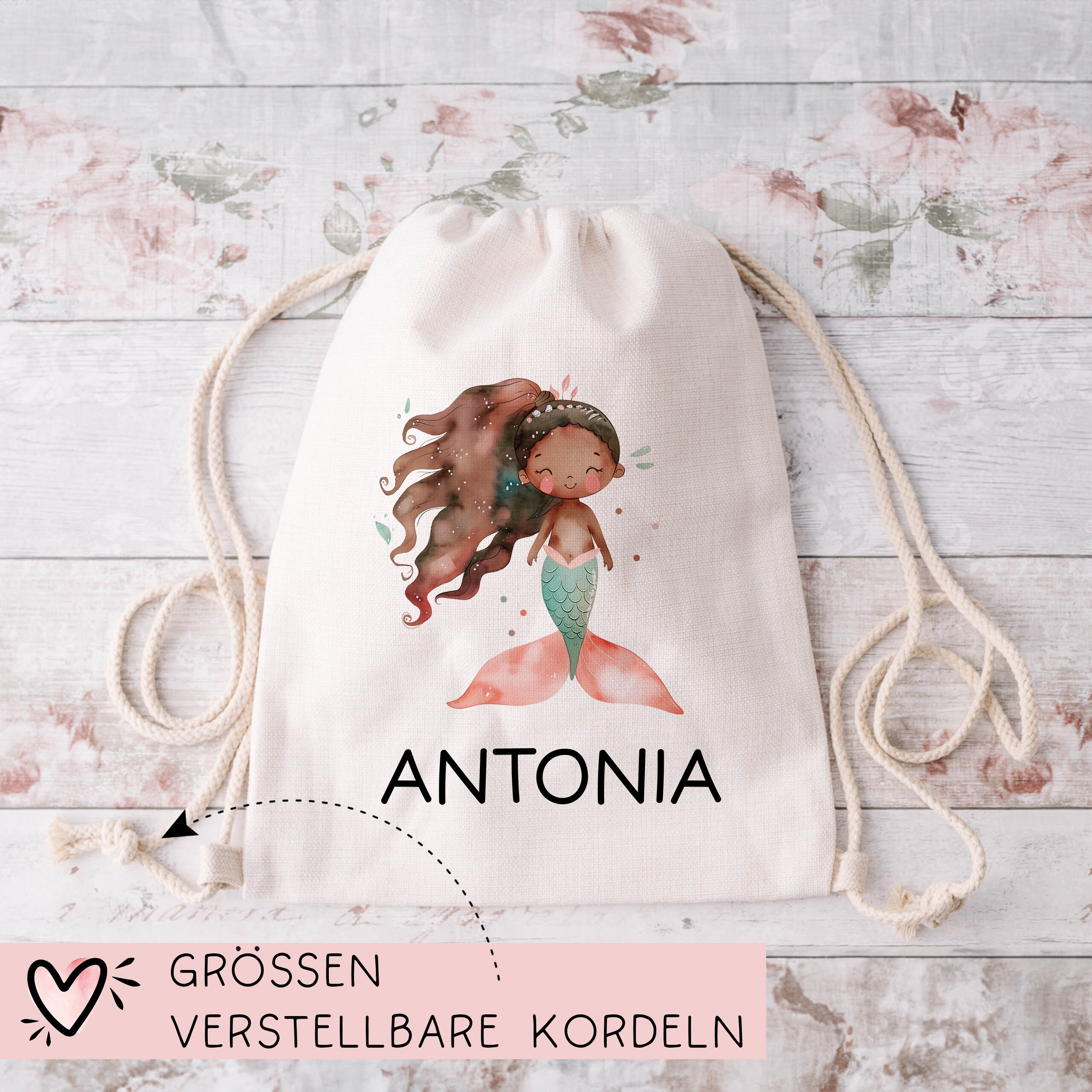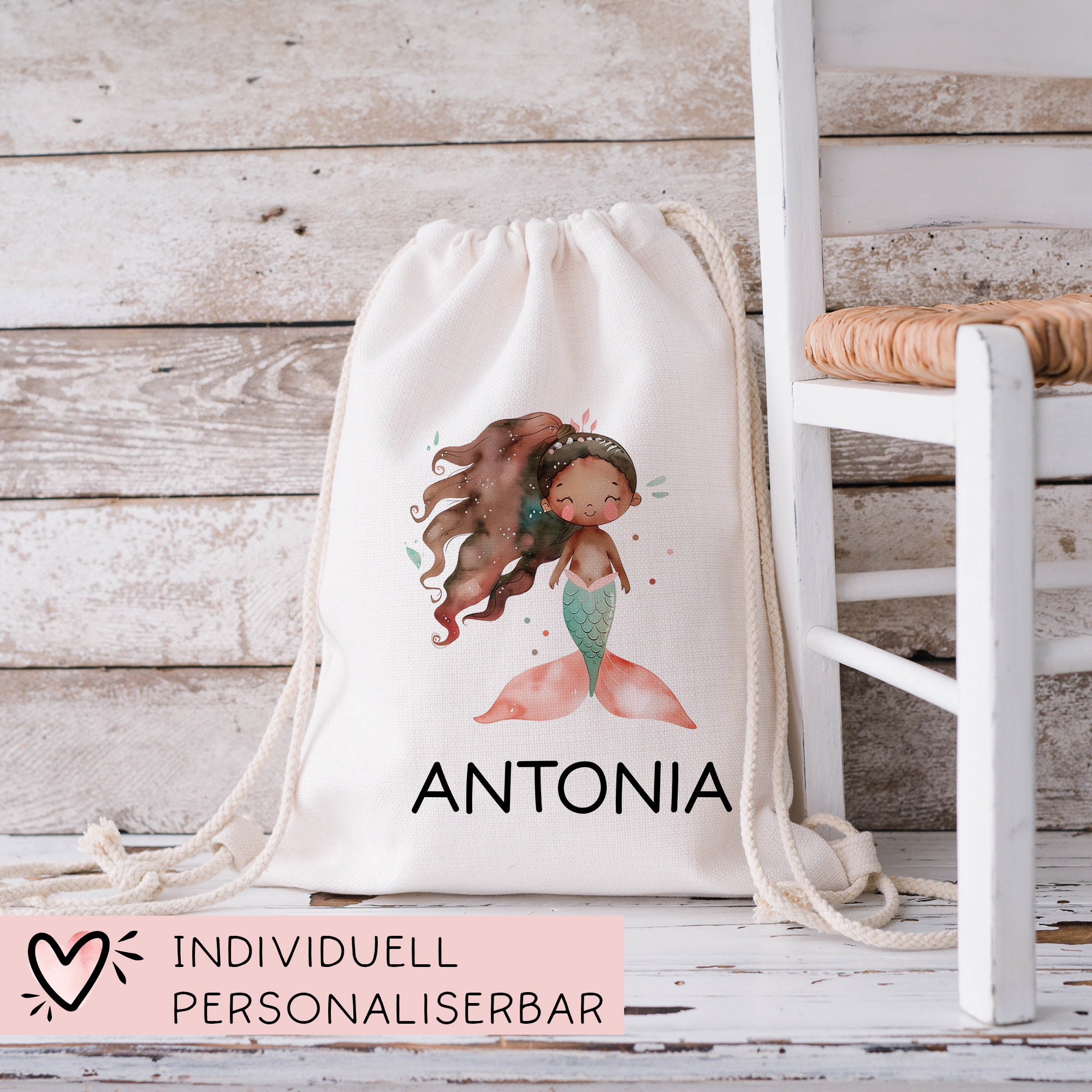 Personalisierter Turnbeutel Meerjungfrau | Nixe mit Wunschnamen Rucksack Schule, Kindergarten, KITA, Wäschebeutel, Sportbeutel, Wechselwäsche