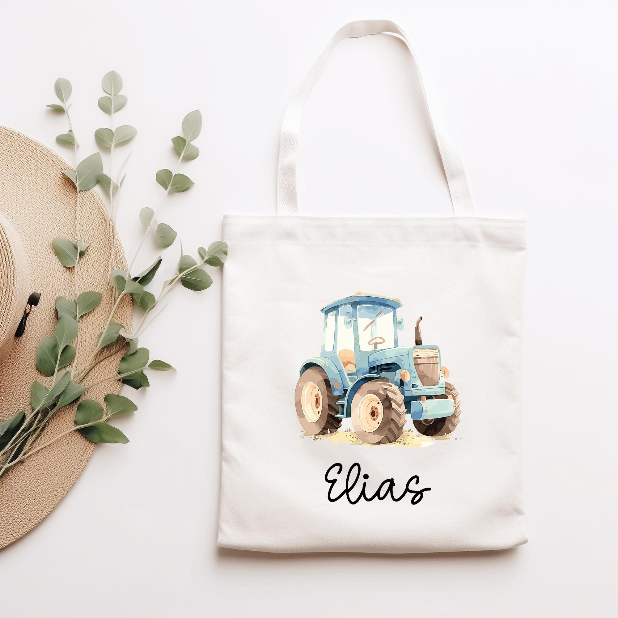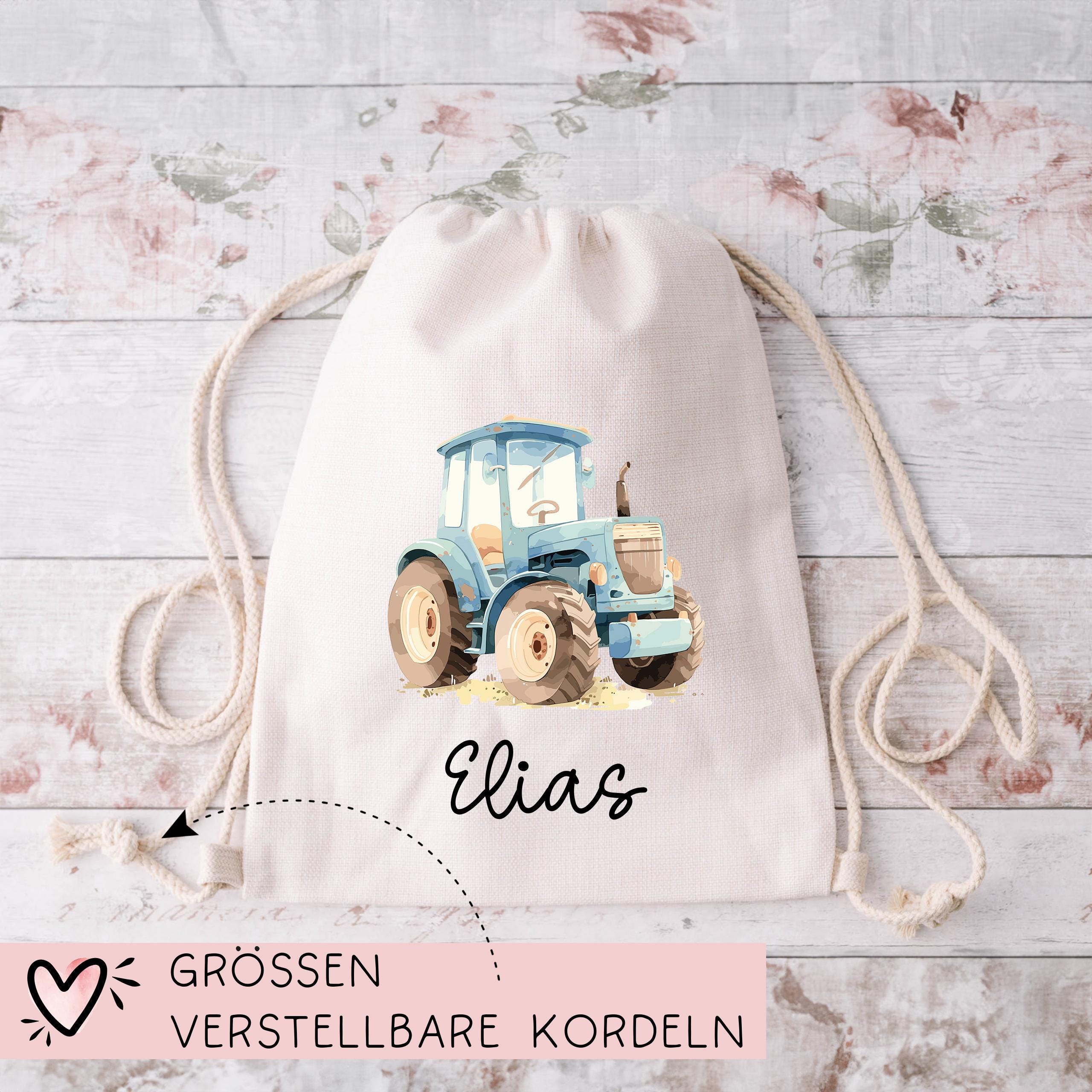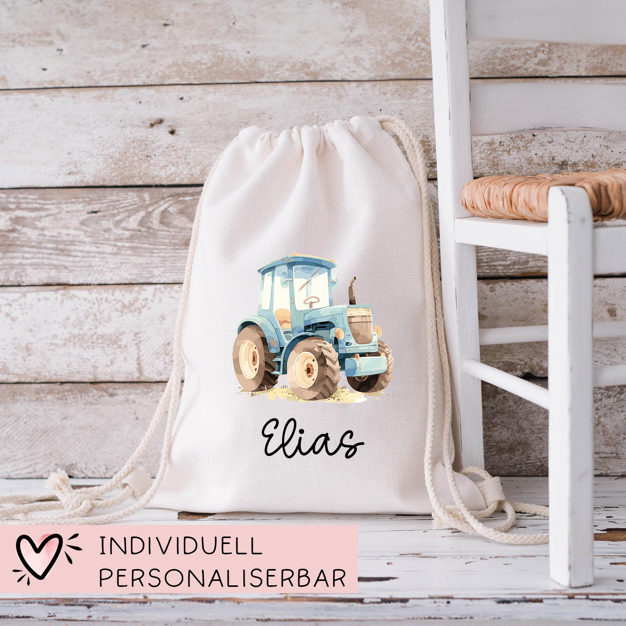 Ein Muss für alle Traktor-Fans! Der personalisierte Turnbeutel für Kinder ist vielseitig einsetzbar und aus strapazierfähiger Baumwolle gefertigt – ein zuverlässiger Begleiter für die Kleinen. Bedruckt mit einem niedlichen blauen Traktor und dem Namen des Kindes, sorgt er für Freude und Individualität.