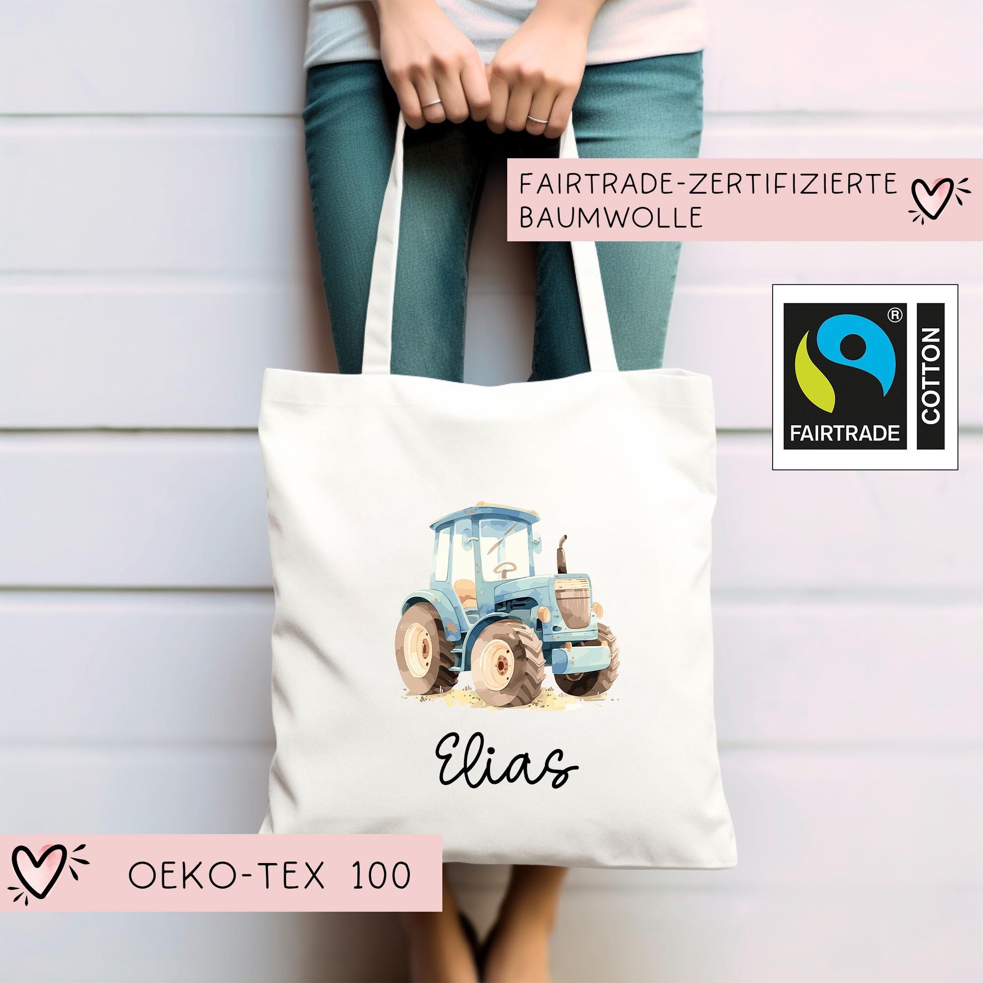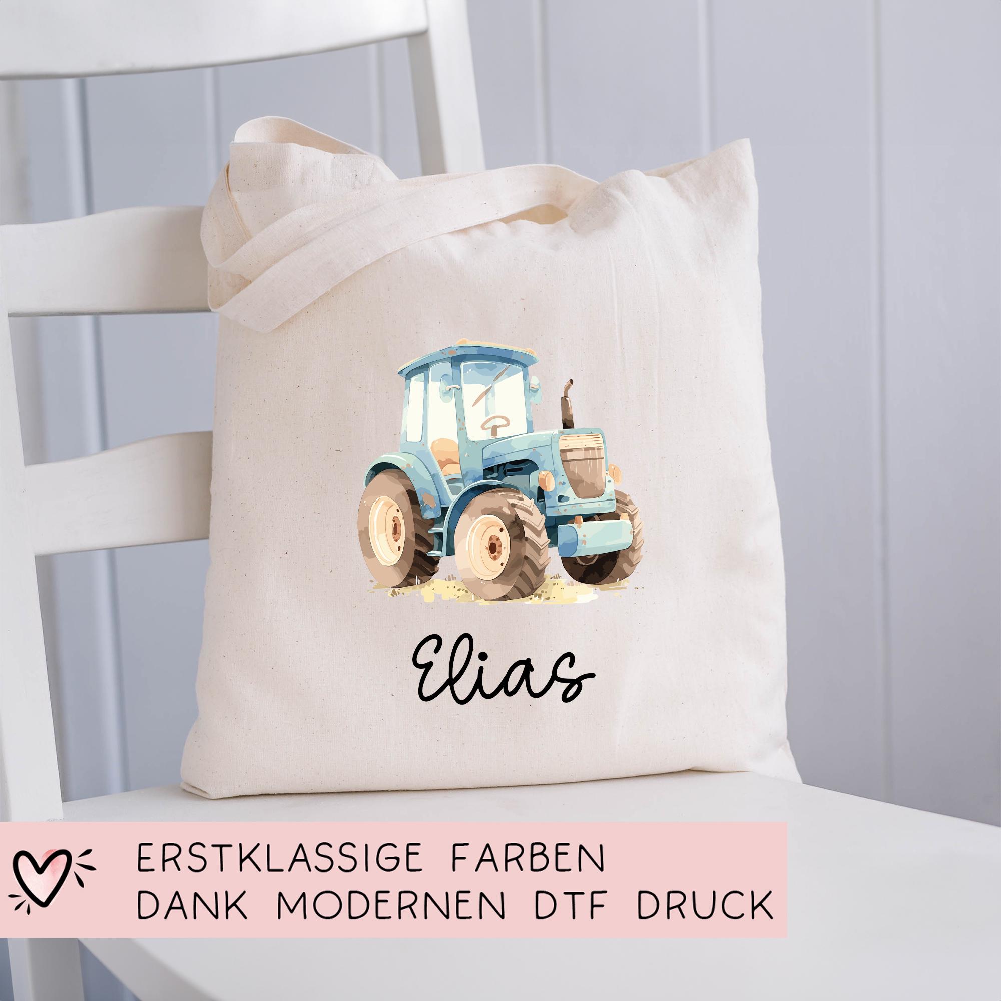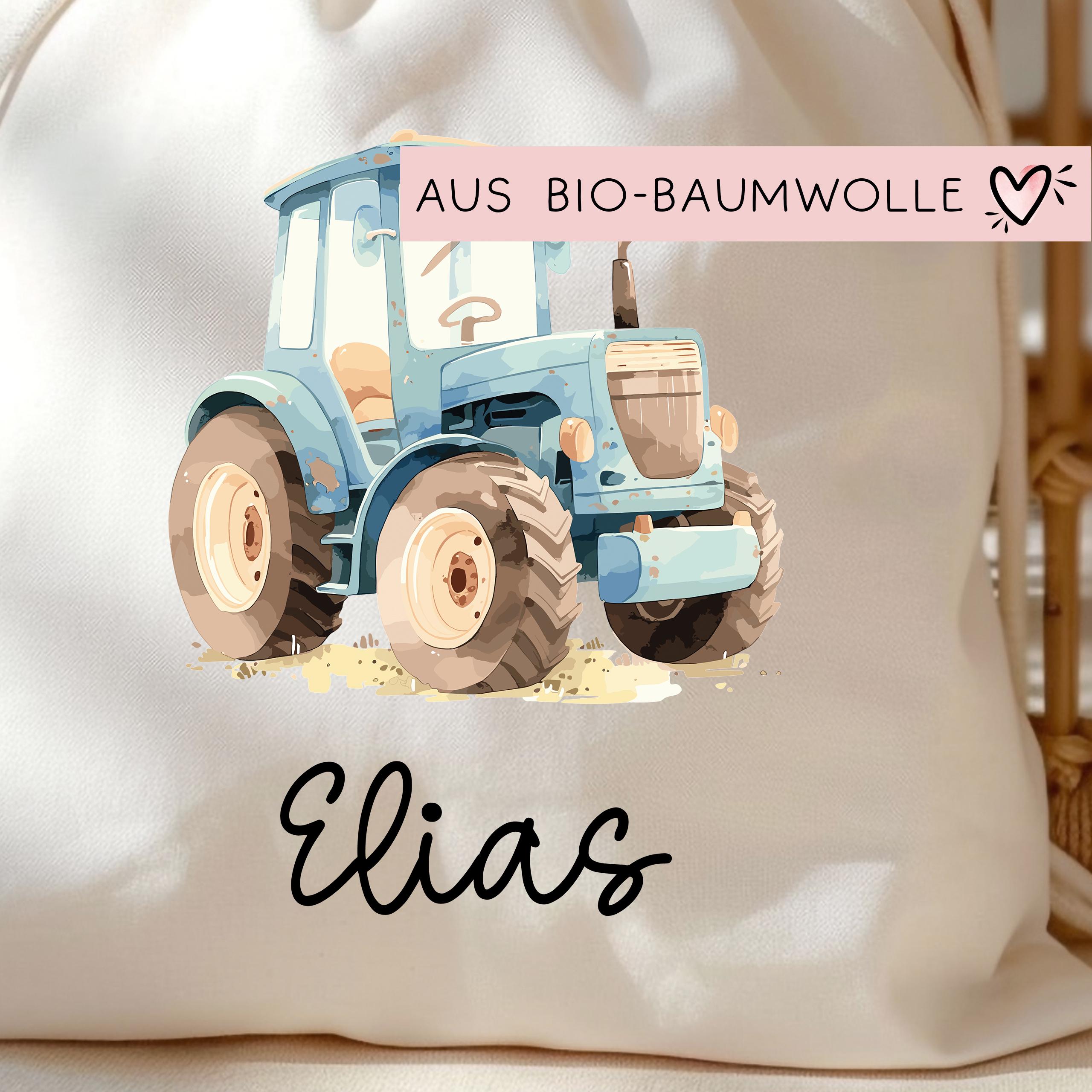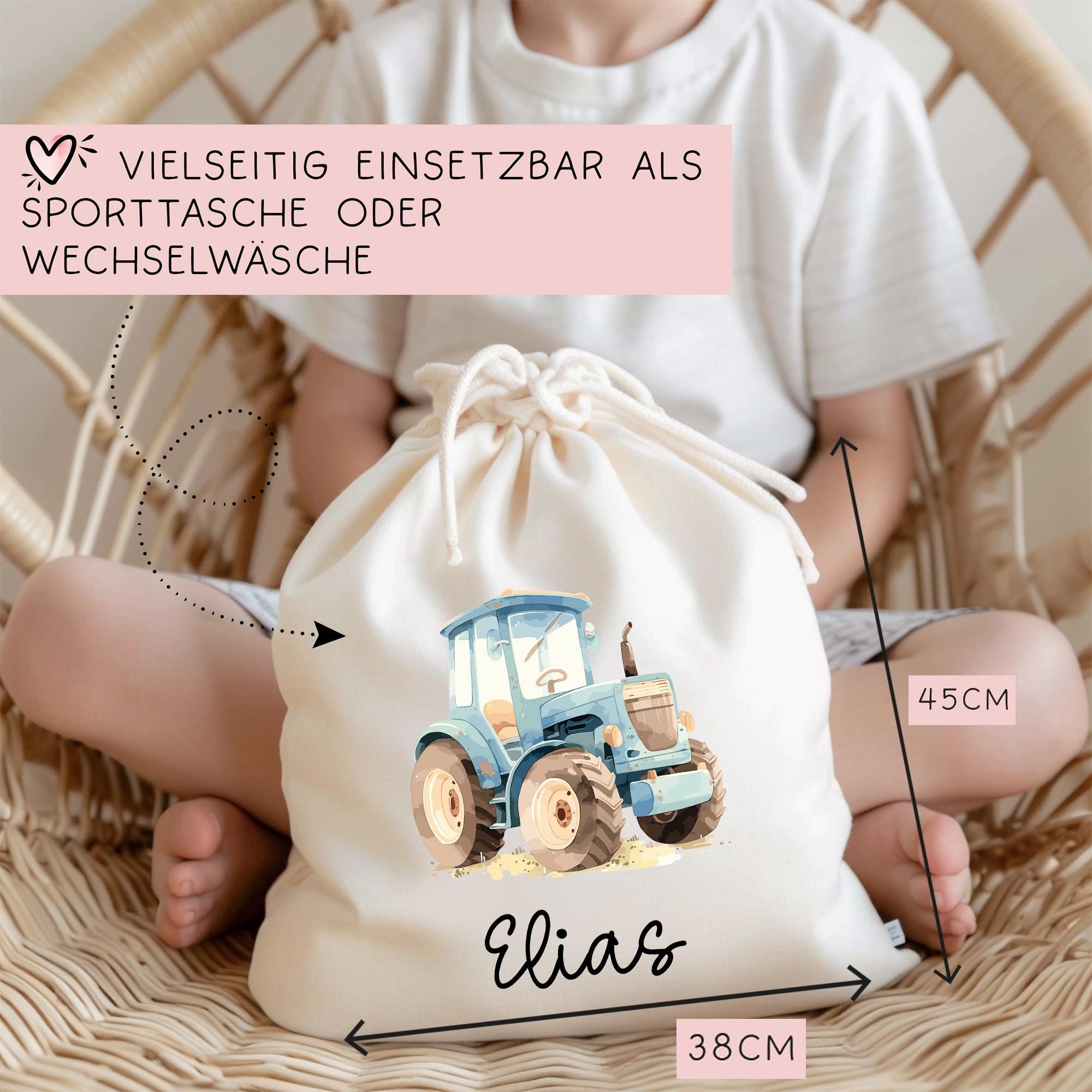 Ein Muss für alle Traktor-Fans! Der personalisierte Turnbeutel für Kinder ist vielseitig einsetzbar und aus strapazierfähiger Baumwolle gefertigt – ein zuverlässiger Begleiter für die Kleinen. Bedruckt mit einem niedlichen blauen Traktor und dem Namen des Kindes, sorgt er für Freude und Individualität.