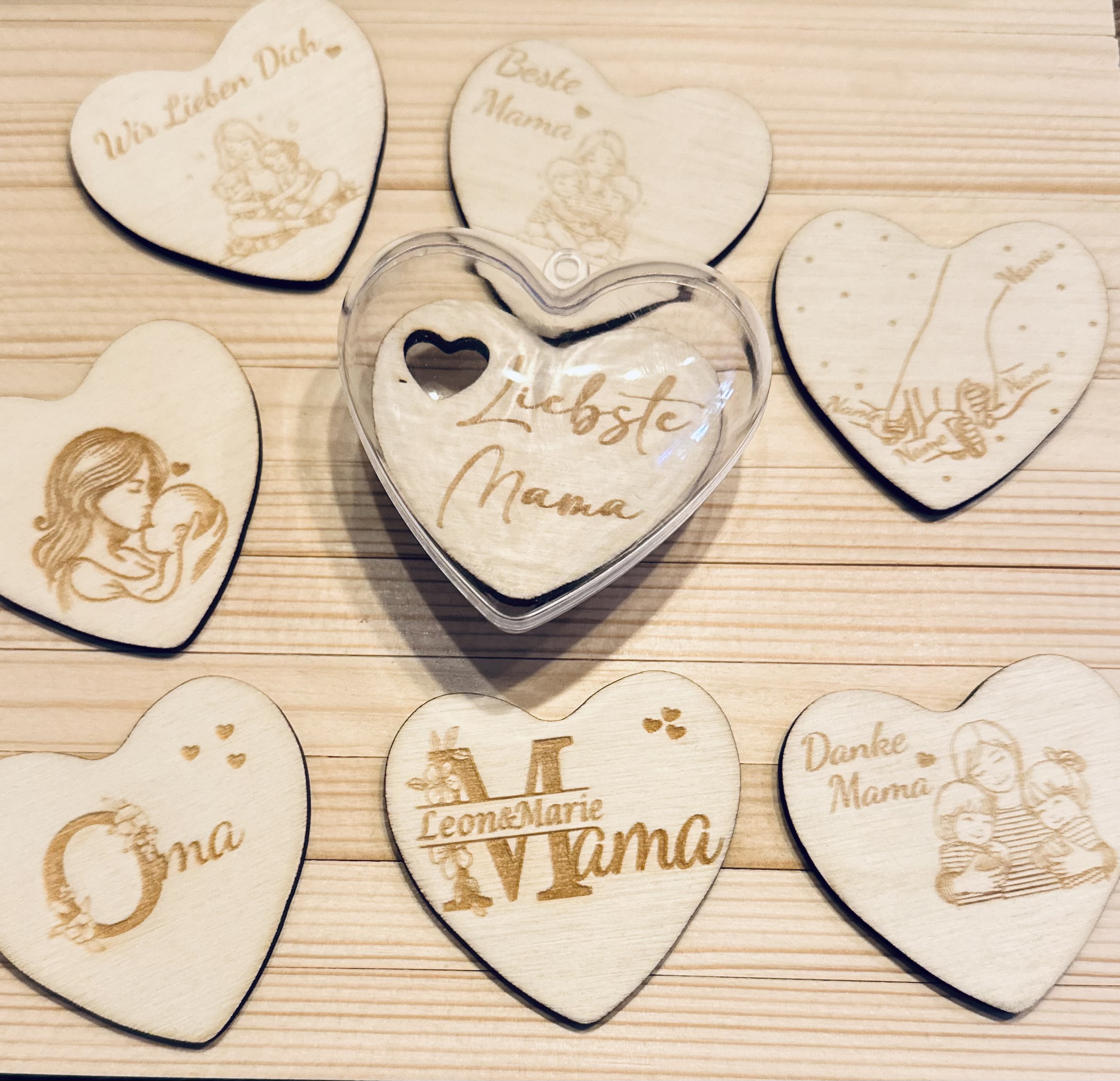 Dieses personalisierte Acryl-Herz mit Holz-Inlay trägt deine ganz persönliche Botschaft – für einen Menschen, der alles für dich bedeutet.
