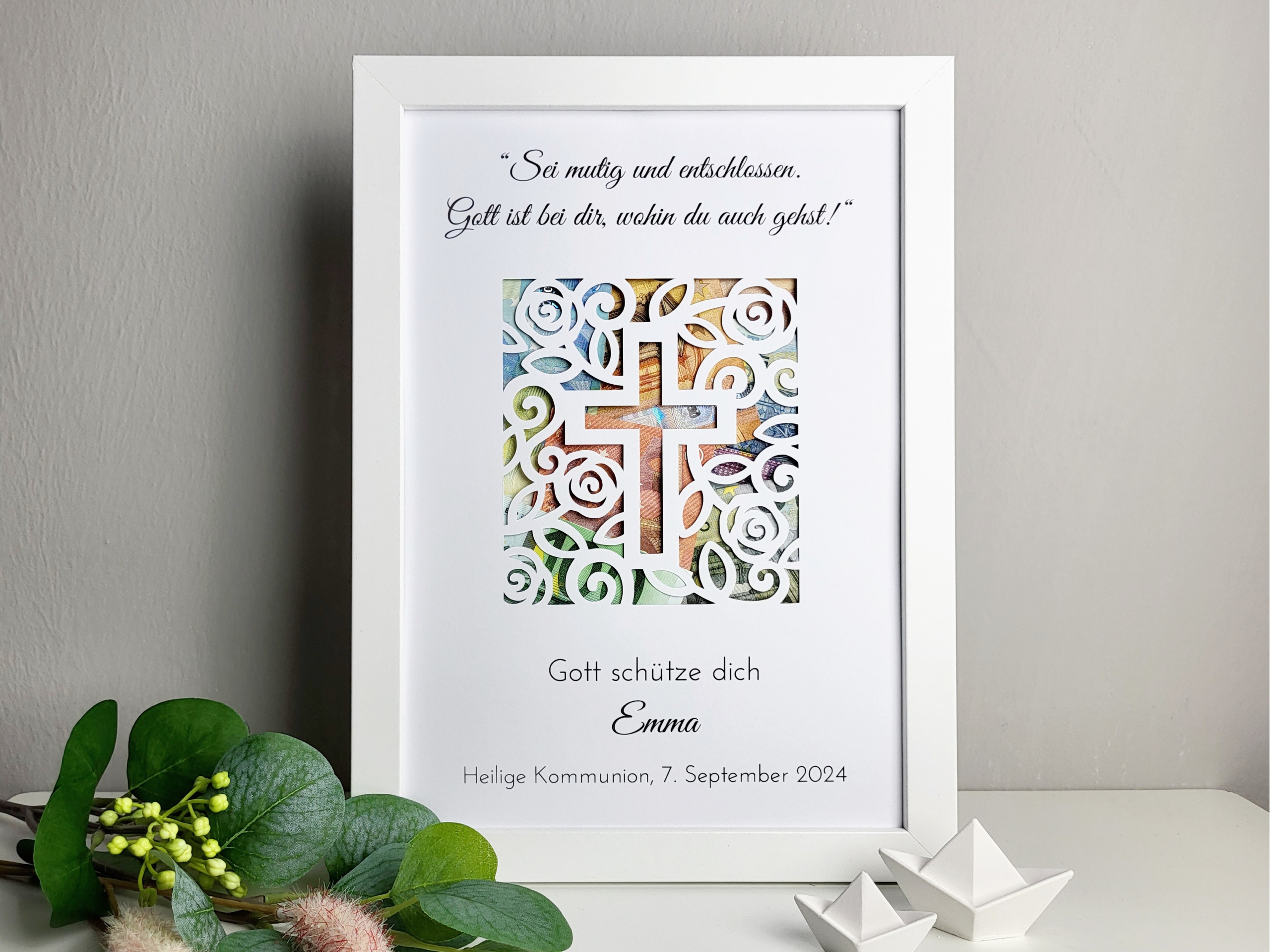 Geldgeschenkrahmen „Blumenkreuz“ – Zur Kommunion & Konfirmation