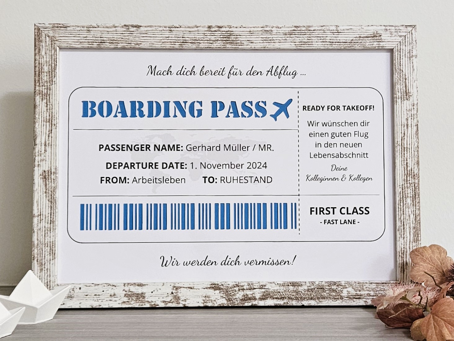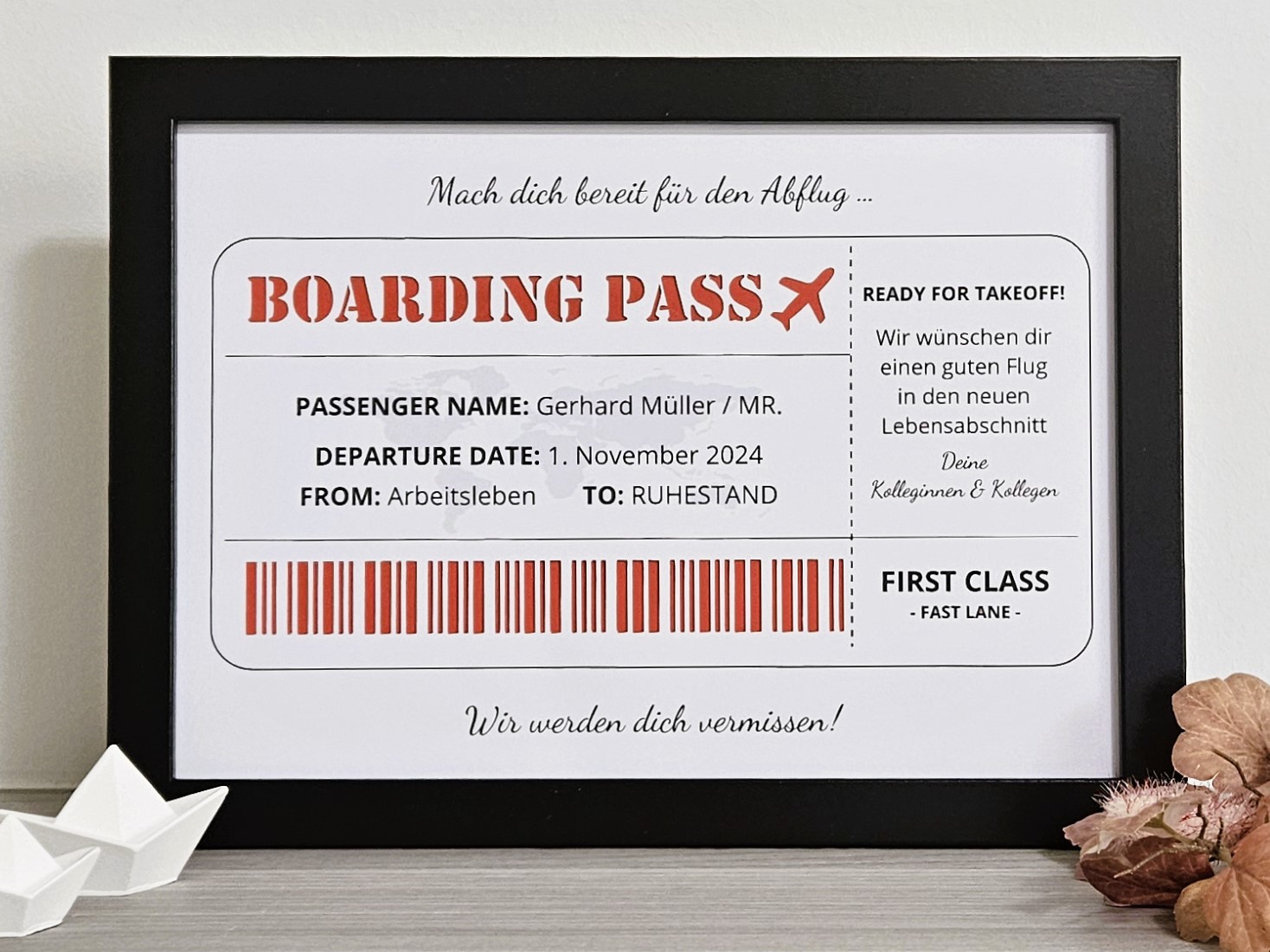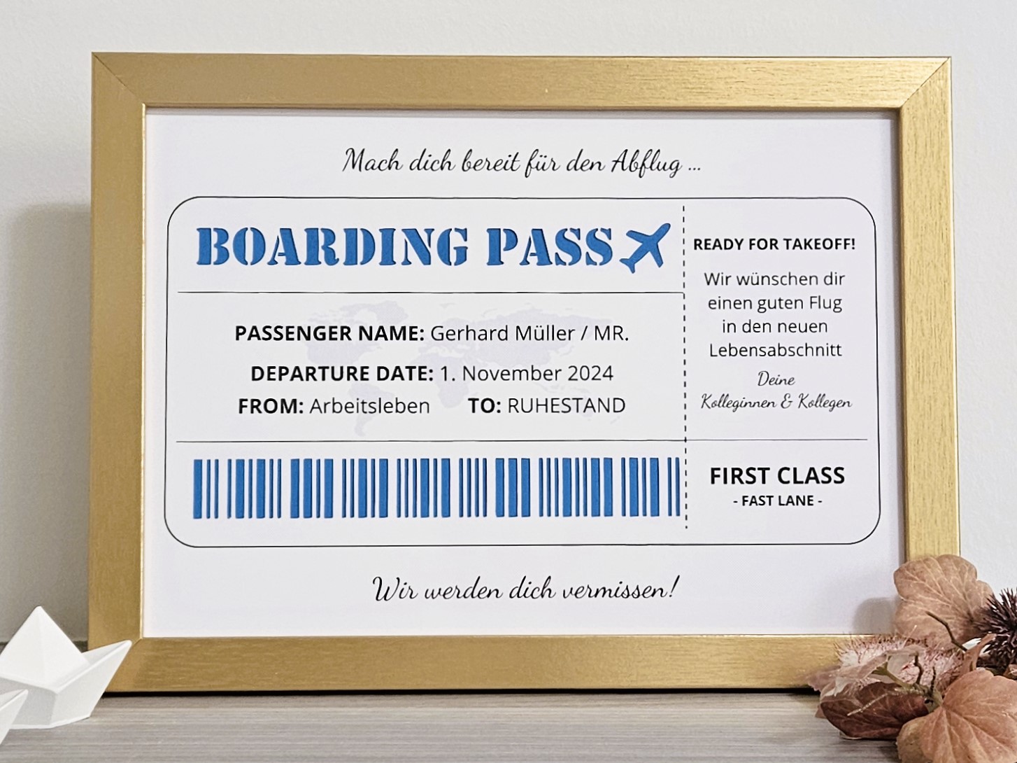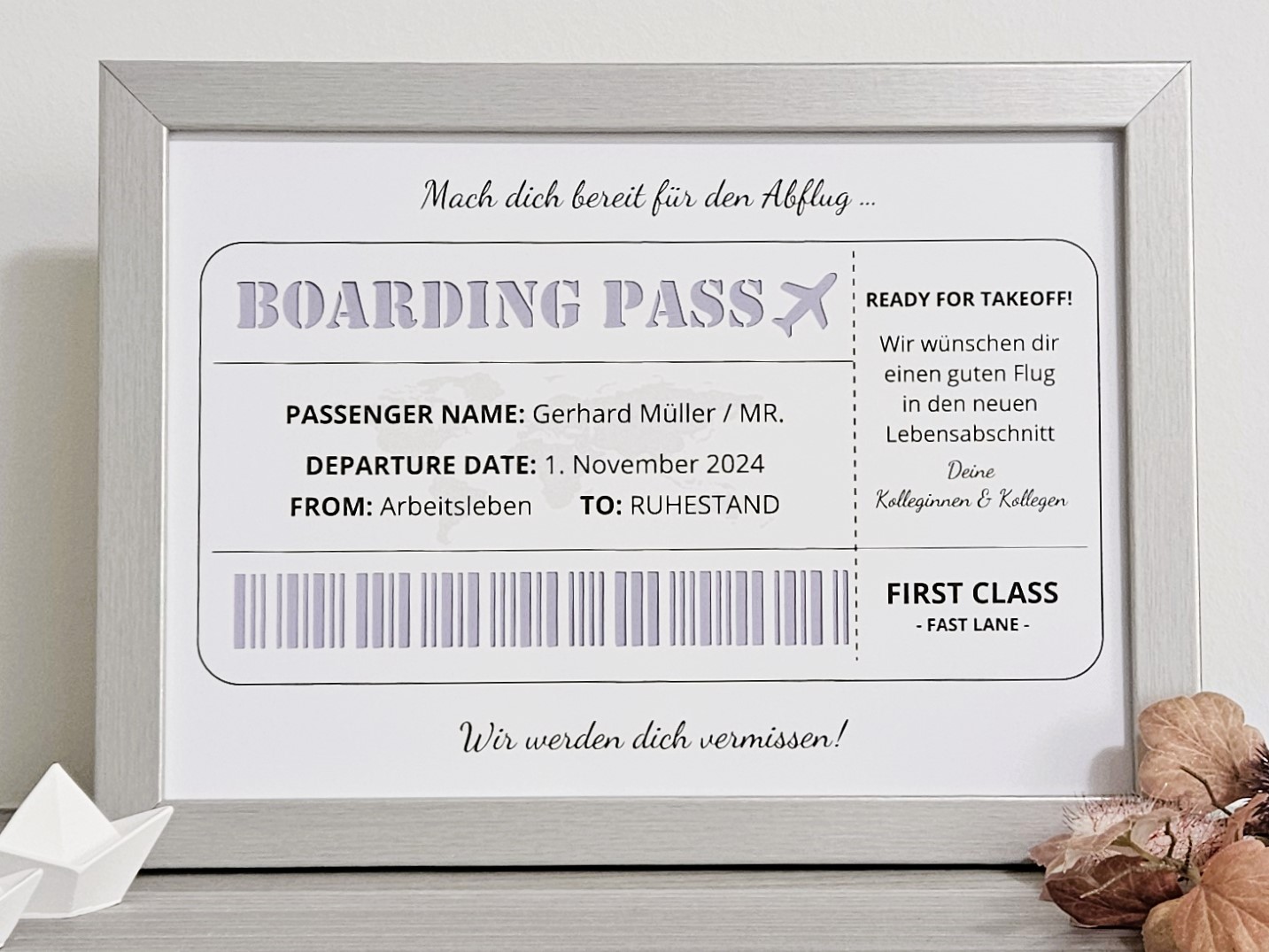 Geldgeschenkrahmen „Boarding Pass“ – Die Eintrittskarte in den Ruhestand ✈️