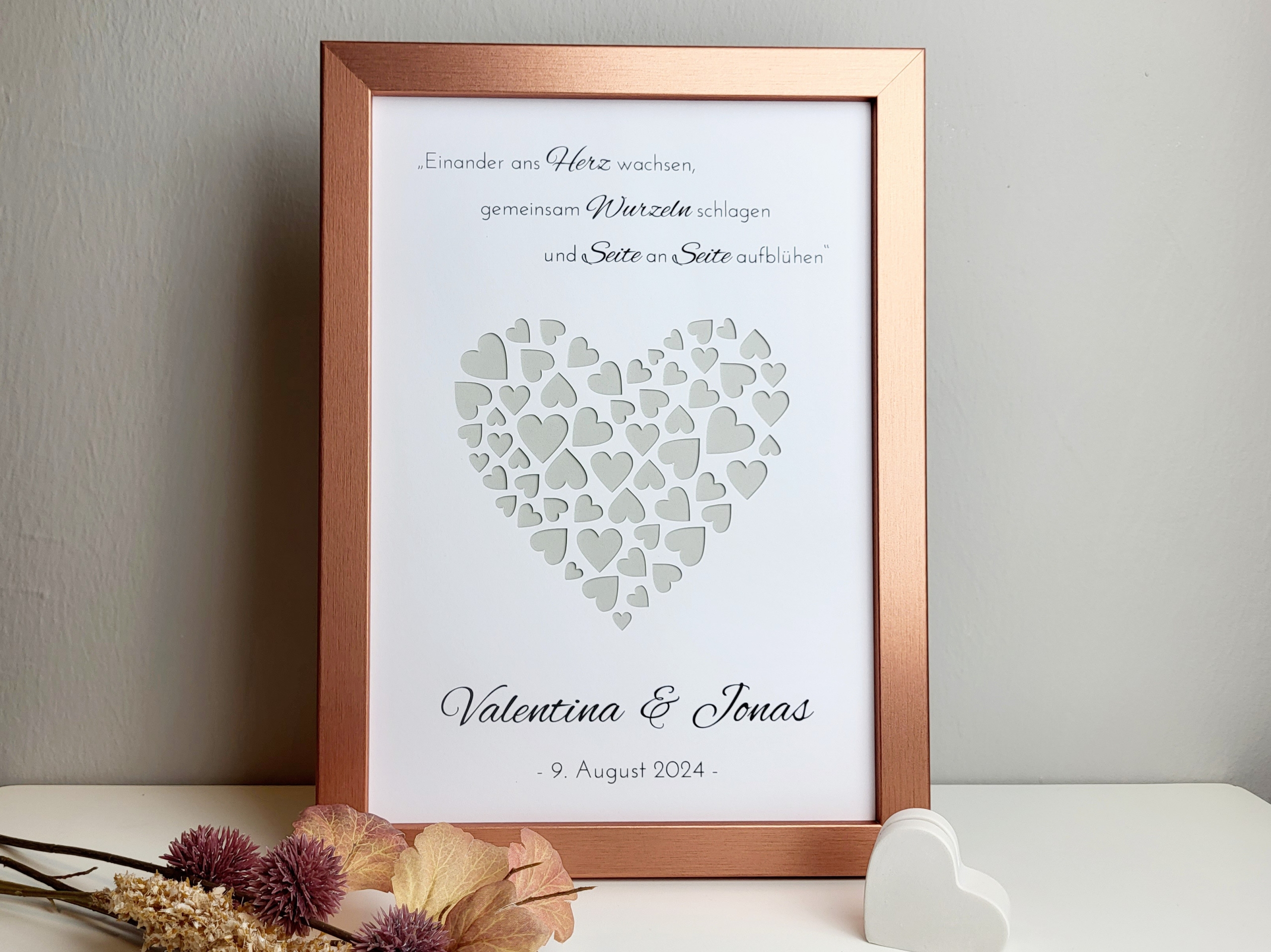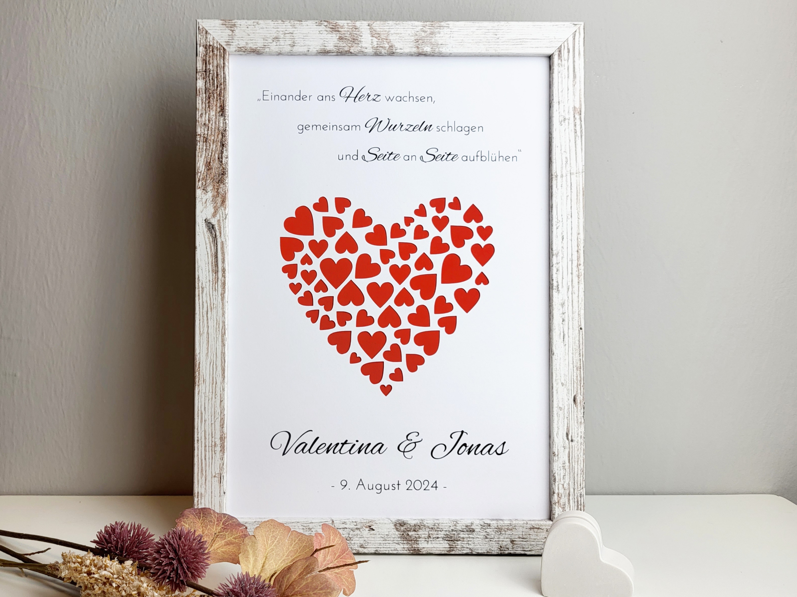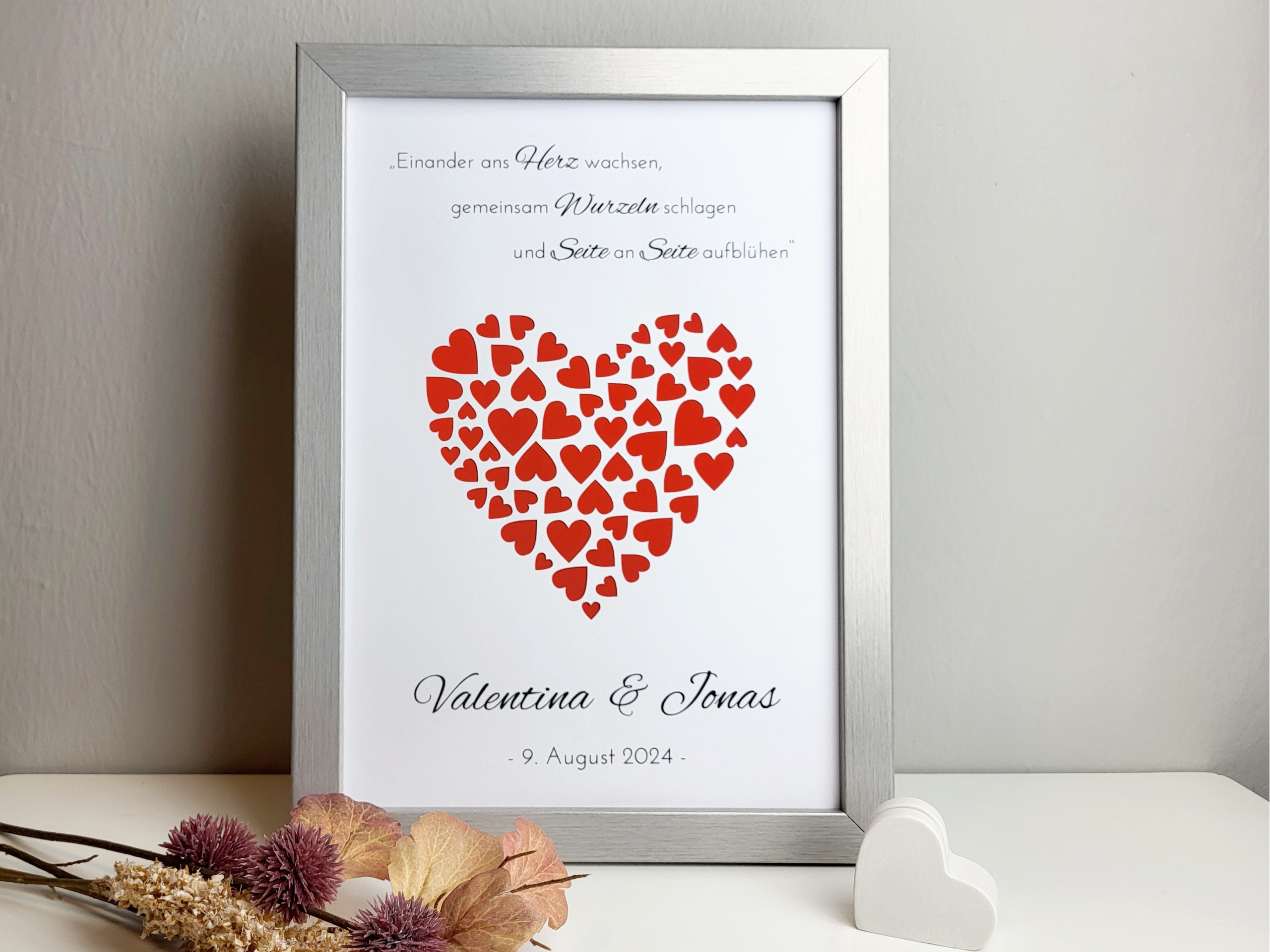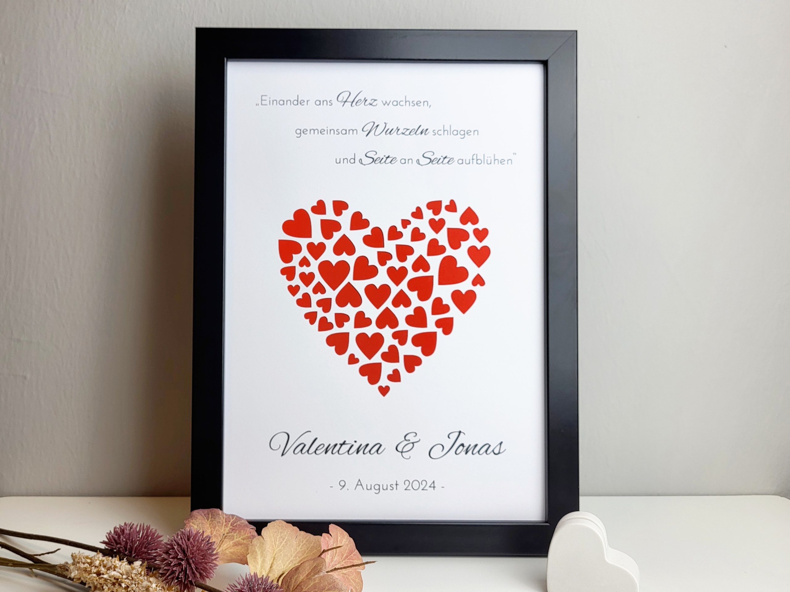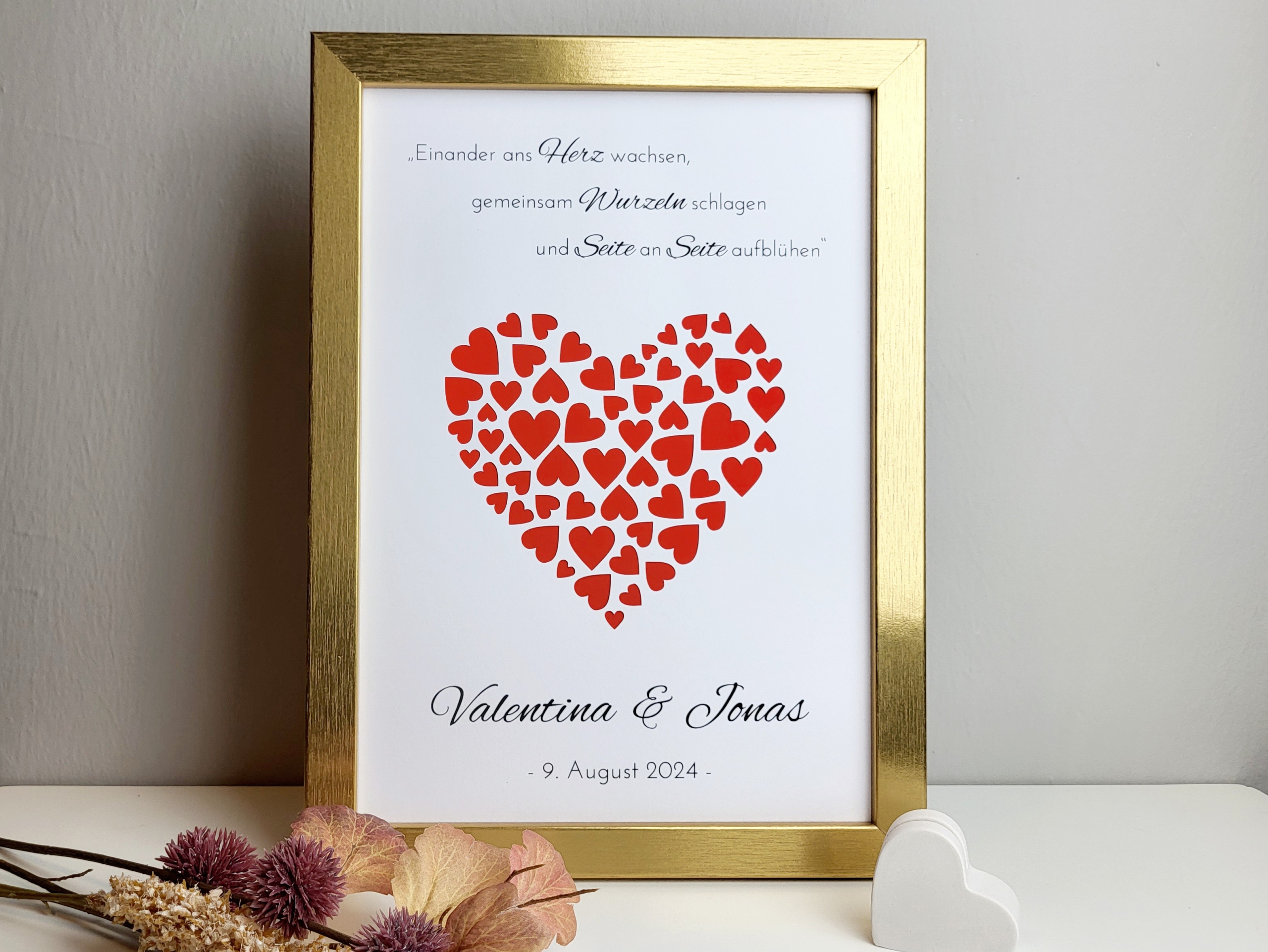 Ob als romantische Aufmerksamkeit von Freunden, Familie oder Kollegen – dieser Geldgeschenkrahmen sorgt garantiert für Freude und bleibt dem Brautpaar lange in Erinnerung.