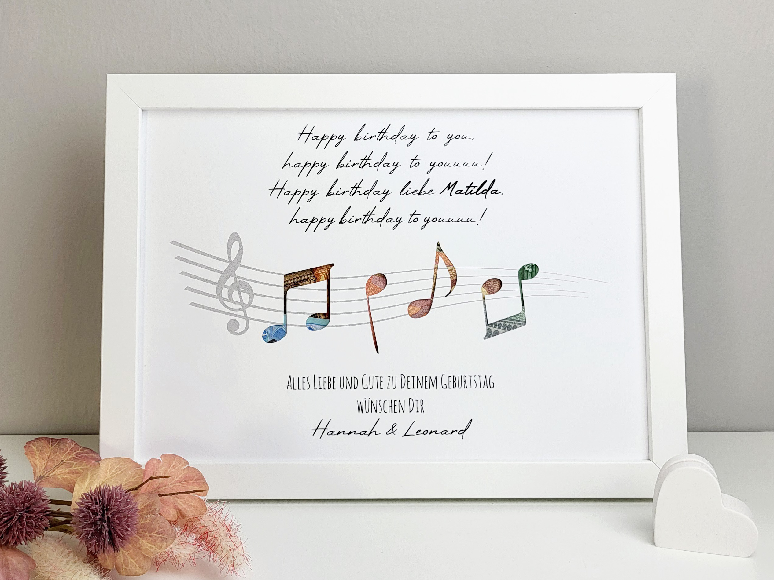 Geldgeschenkrahmen „Geburtstagslied“ – Originelle Geschenkidee zum Geburtstag