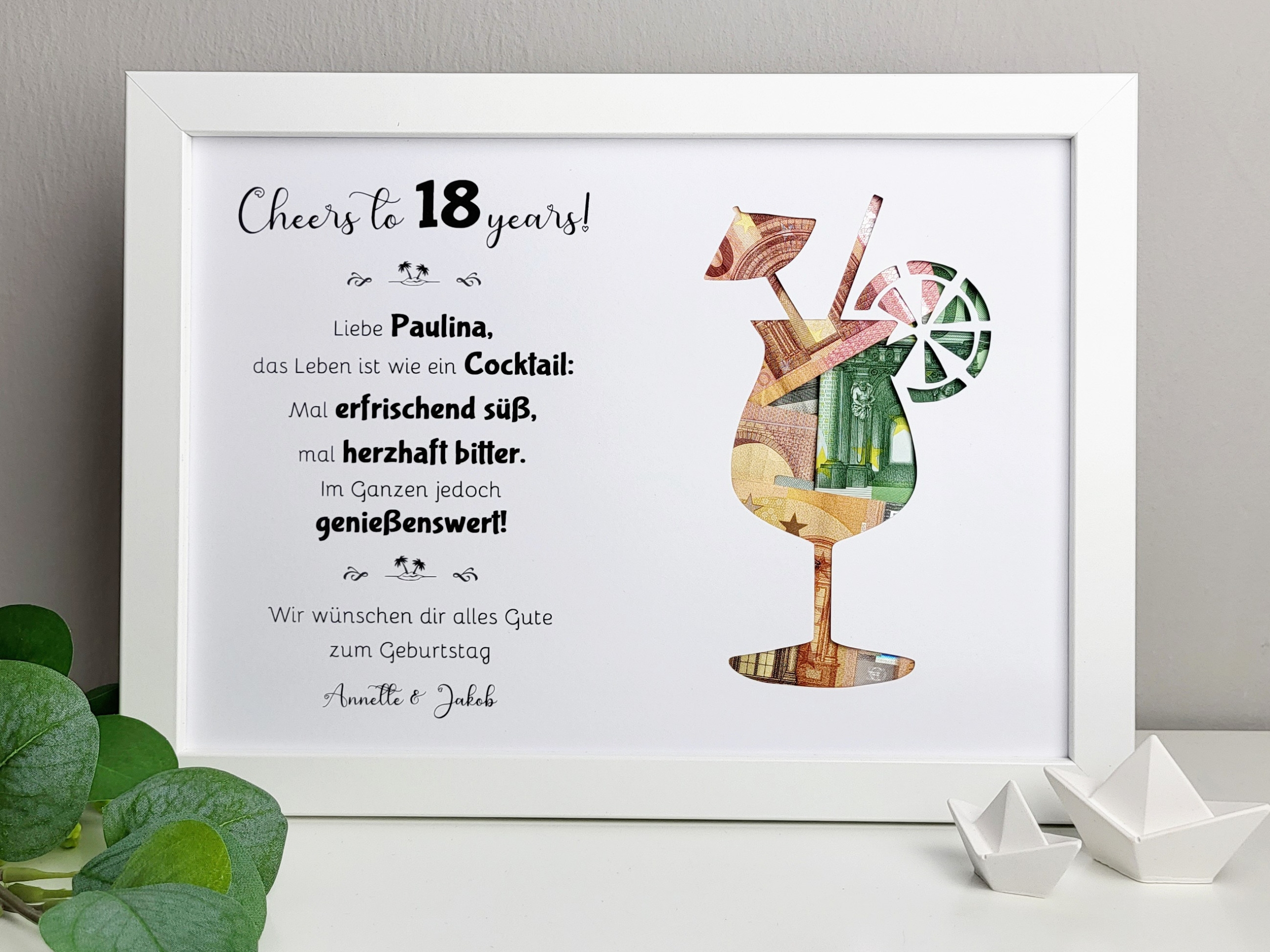 Geldgeschenkrahmen „Cocktail“ – Originelle Geschenkidee zum Geburtstag