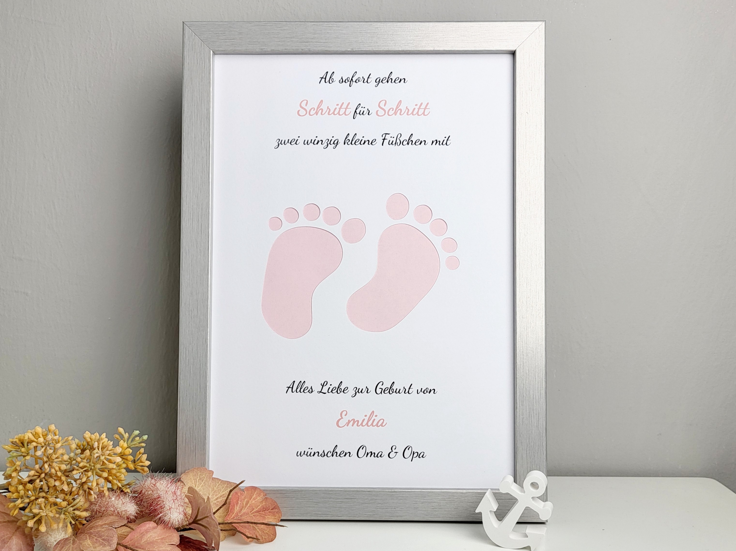 Geldgeschenkrahmen "Schritt für Schritt" - Das besondere Geschenk zur Geburt oder Taufe