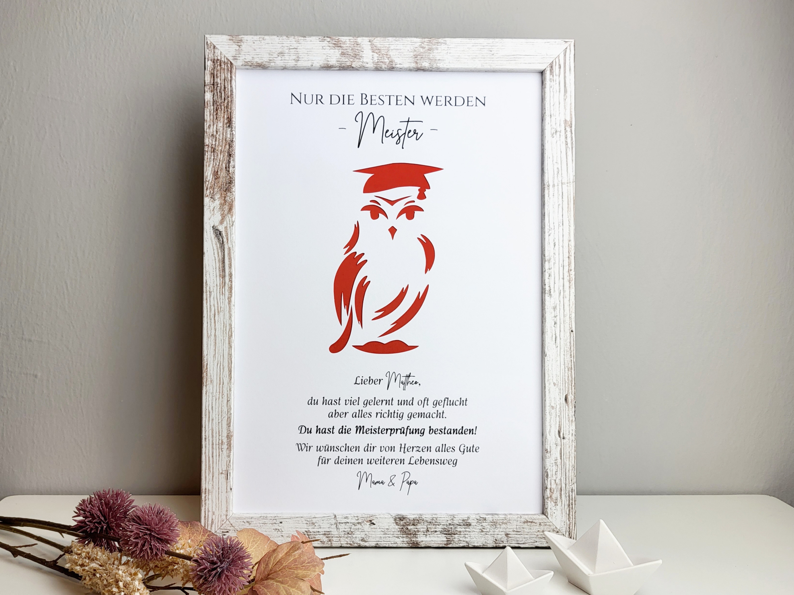 Geldgeschenkrahmen „Eule“ – Das stilvolle Geldgeschenk zum #@$%en Abschluss der Meisterprüfung