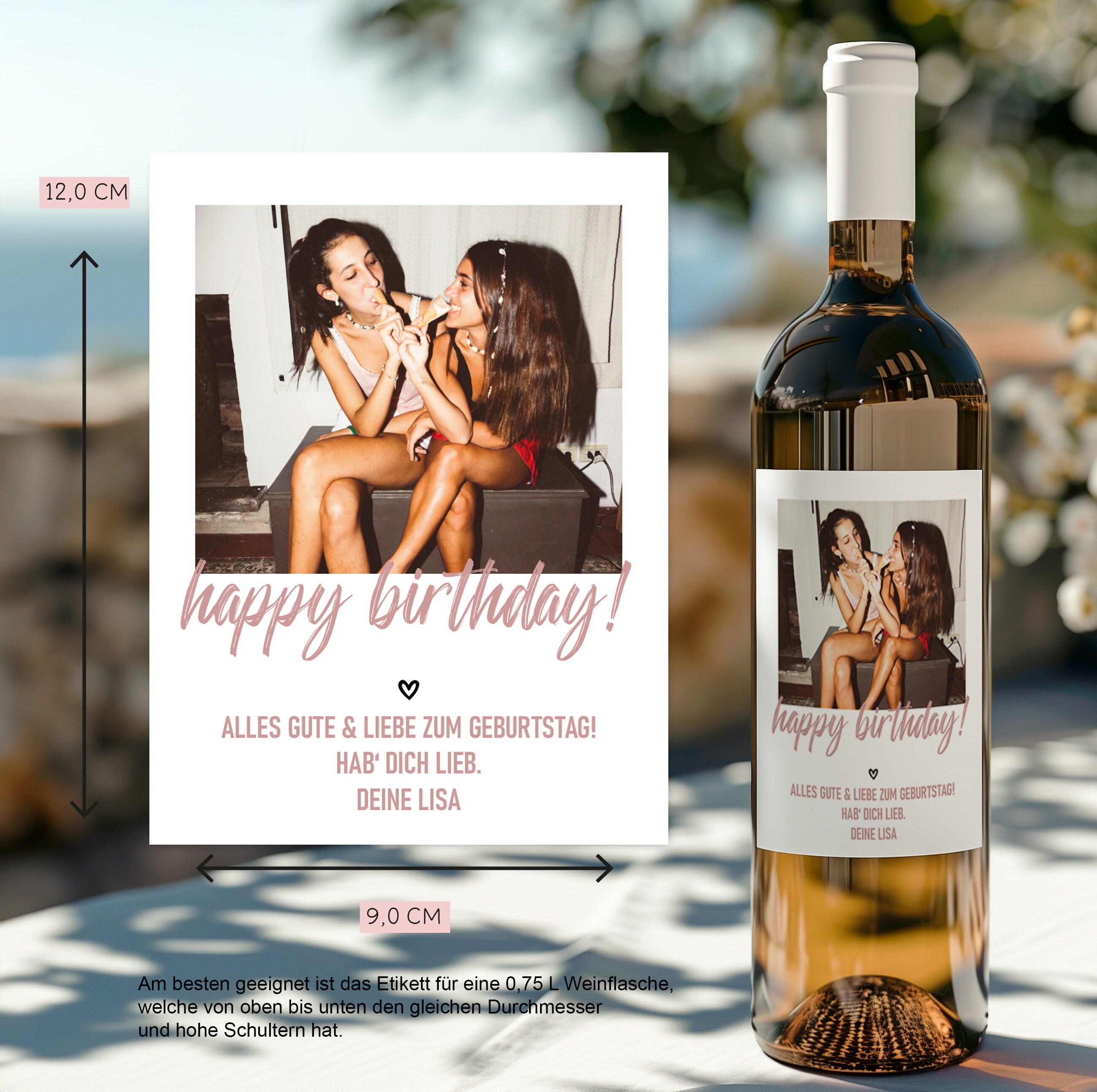 ⚠️ Bitte beachte: Es handelt sich hierbei um ein Etikett mit Foto und der Standard-Aufschrift "Happy Birthday". Solltest du ein individuelles Etikett benötigen findest du folgenden Artikel in unserem Shop: