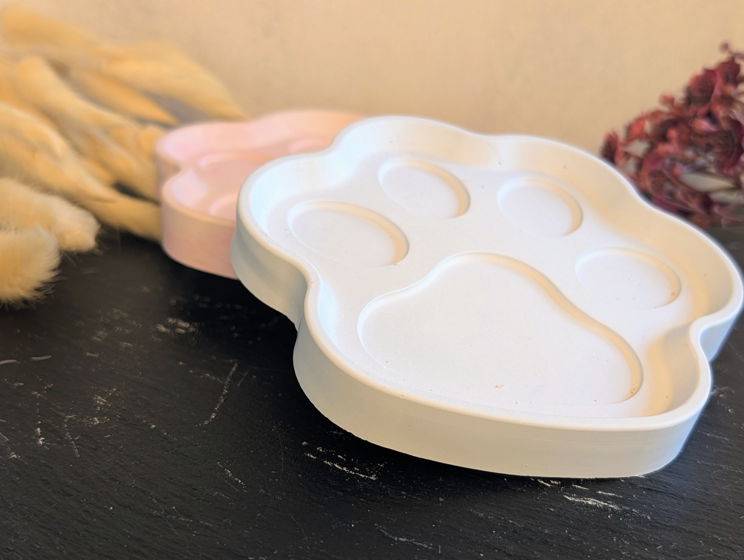 Ein kleiner Deko-Pfotenteller aus Gießmasse wird von mir mit viel Liebe zum Detail hergestellt. Du hast die Auswahl zwischen vielen verschiedenen Farben und Ausführungen.