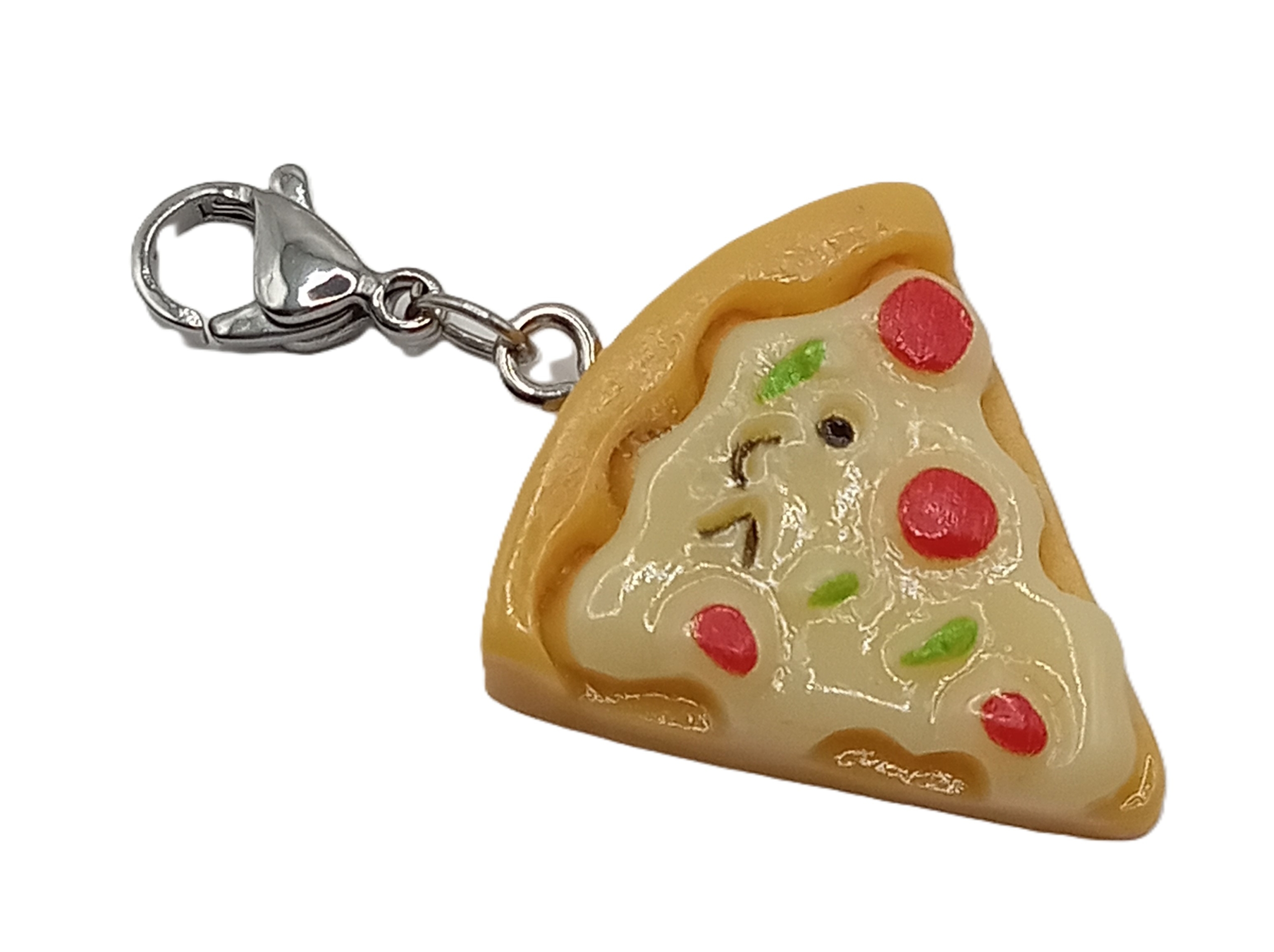 Dieses entzückende Pizzastück mit einem Gesichts Clip Charm