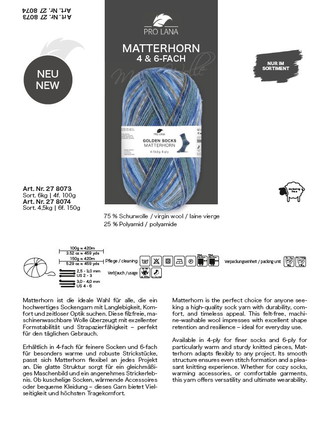 PRO LANA Golden Socks "Matterhorn", 6-fädige Sockenwolle, Fb. 450.06