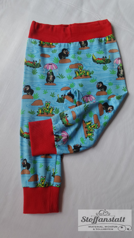 Pumphose aus Jersey mit dem kleinen Maulwurf. Super bequemer und praktischer Schnitt. Durch das längere Bündchen an den Beinen wächst die Hose etwas mit.