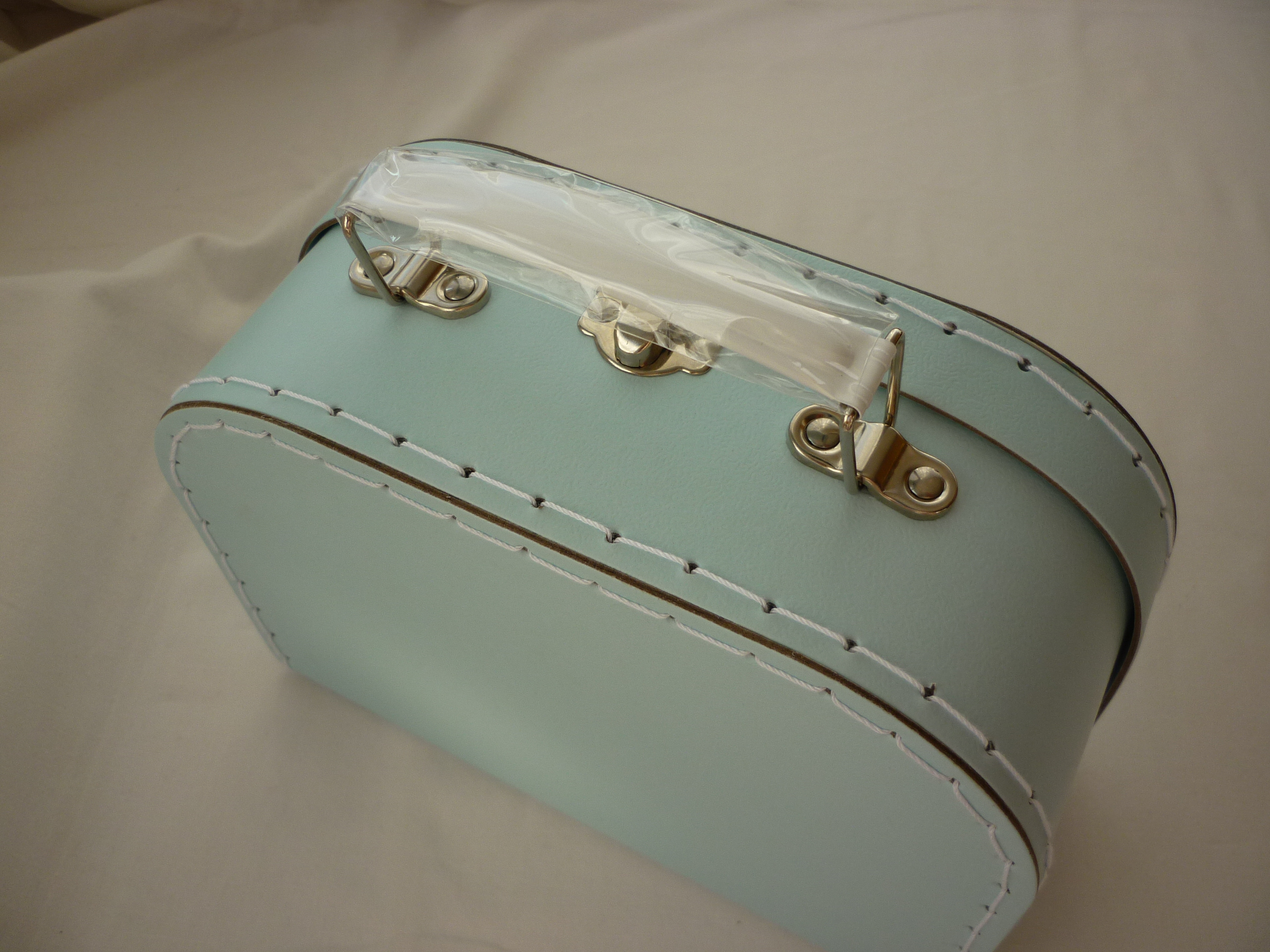 Das letzte Foto zeigt den Größenunterschied von diesem kleinen und dem mittelgroßen Koffer.