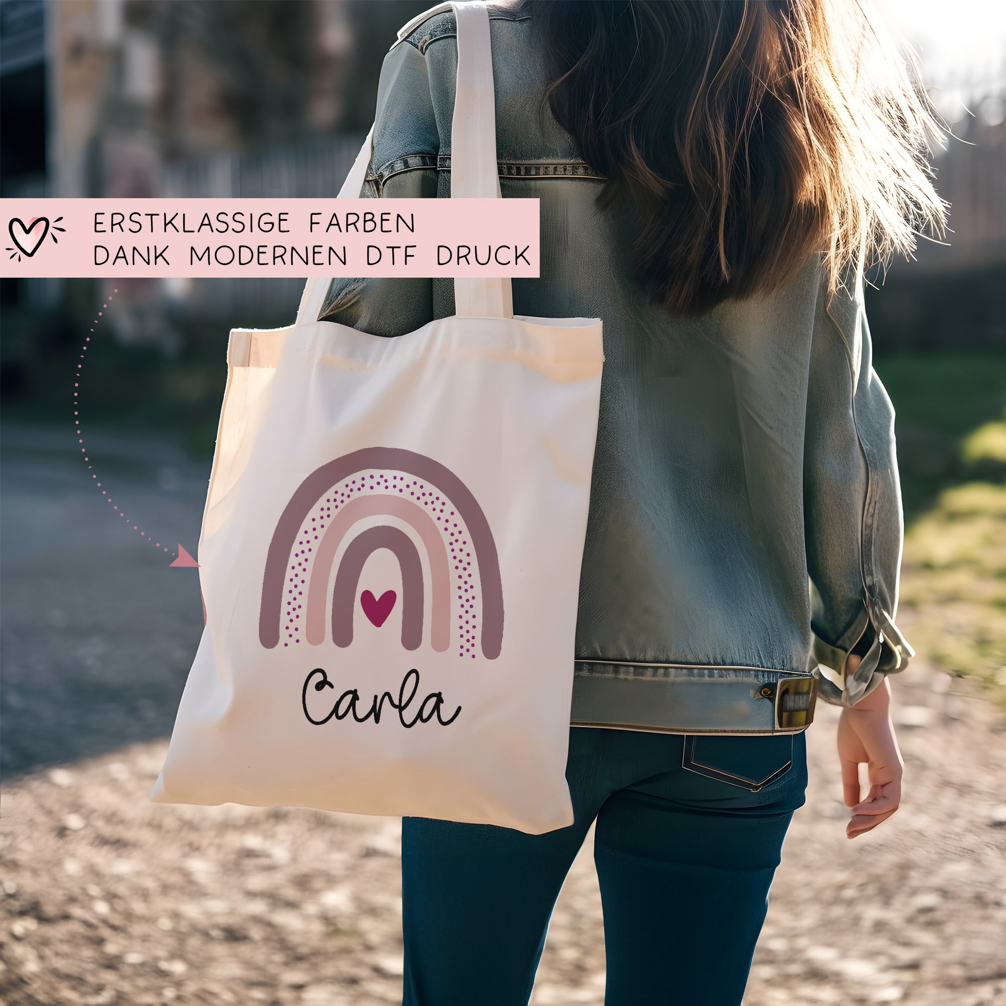 Hochwertiger Druck: Das Motiv und der Name wird mittels hochwertiger DTF-Folie auf die Tasche aufgebracht. Das Resultat ist ein langlebiges, leuchtendes Design, das alle Blicke auf sich zieht.