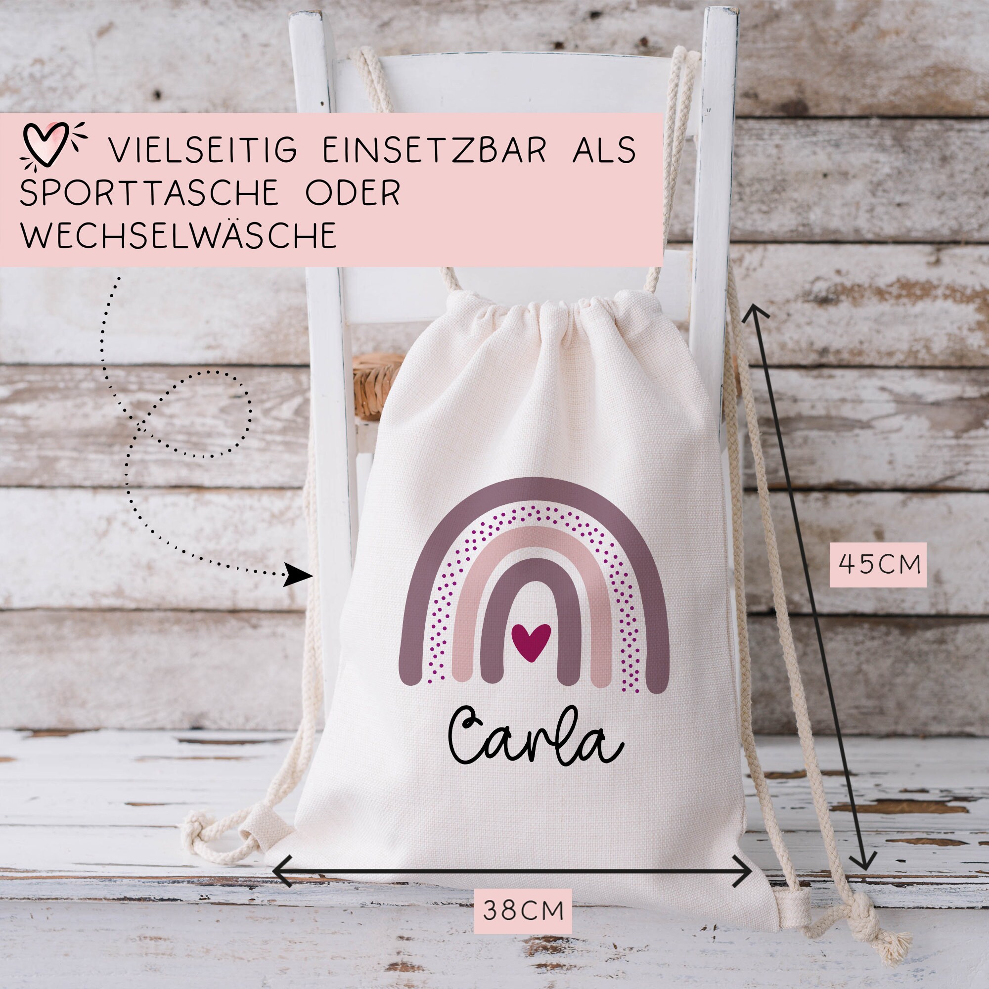Regenbogen Beere Stofftasche Tasche Kinder-Beutel mit Namen als Sporttasche, Wechselwäsche, Tragetasche - Kita, Schule & Kindergarten - 05