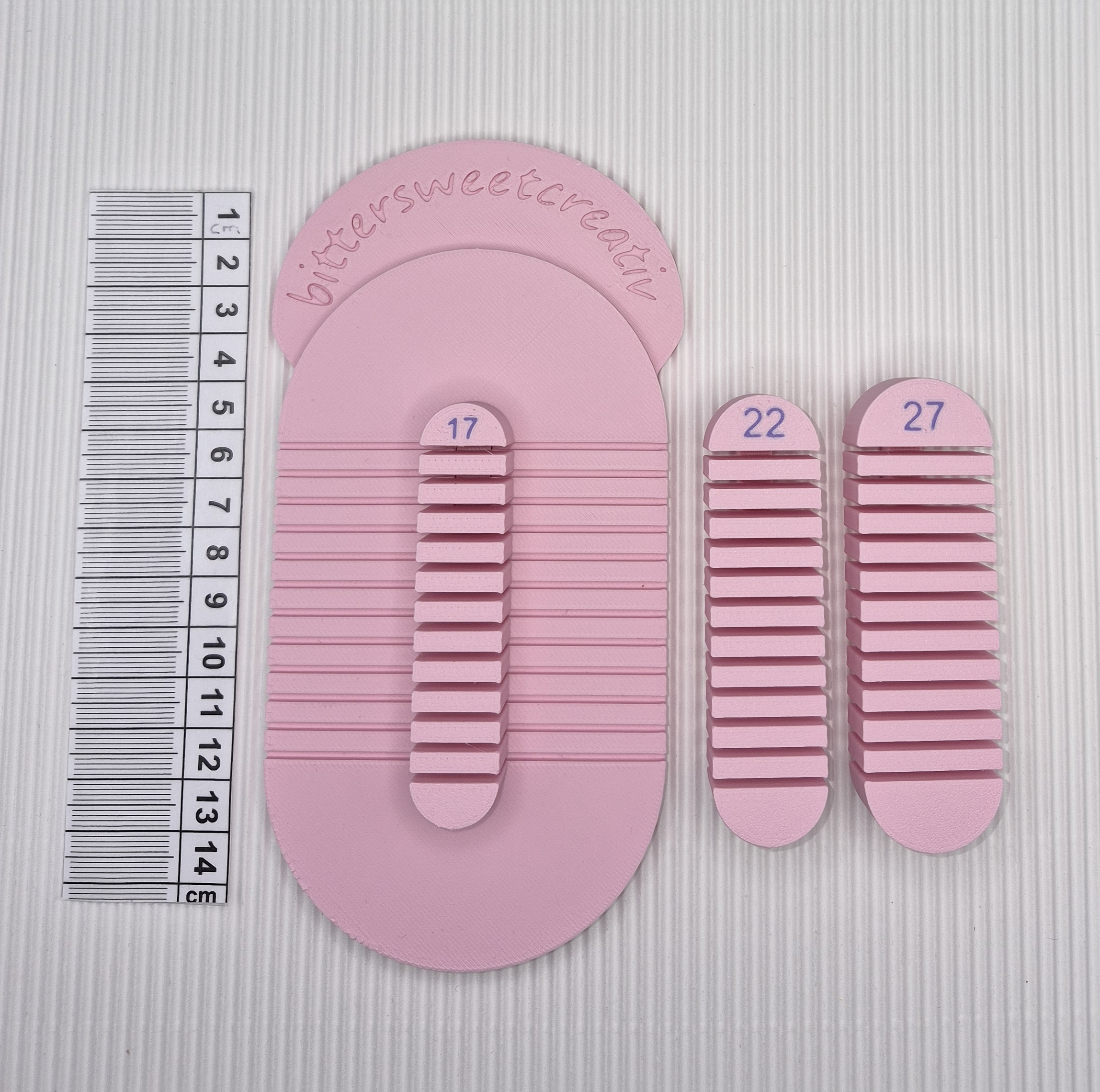 - Edition groß: Basisplatte groß + 2 Mittelstege in 17 mm, 22 mm und 27 mm Breite.