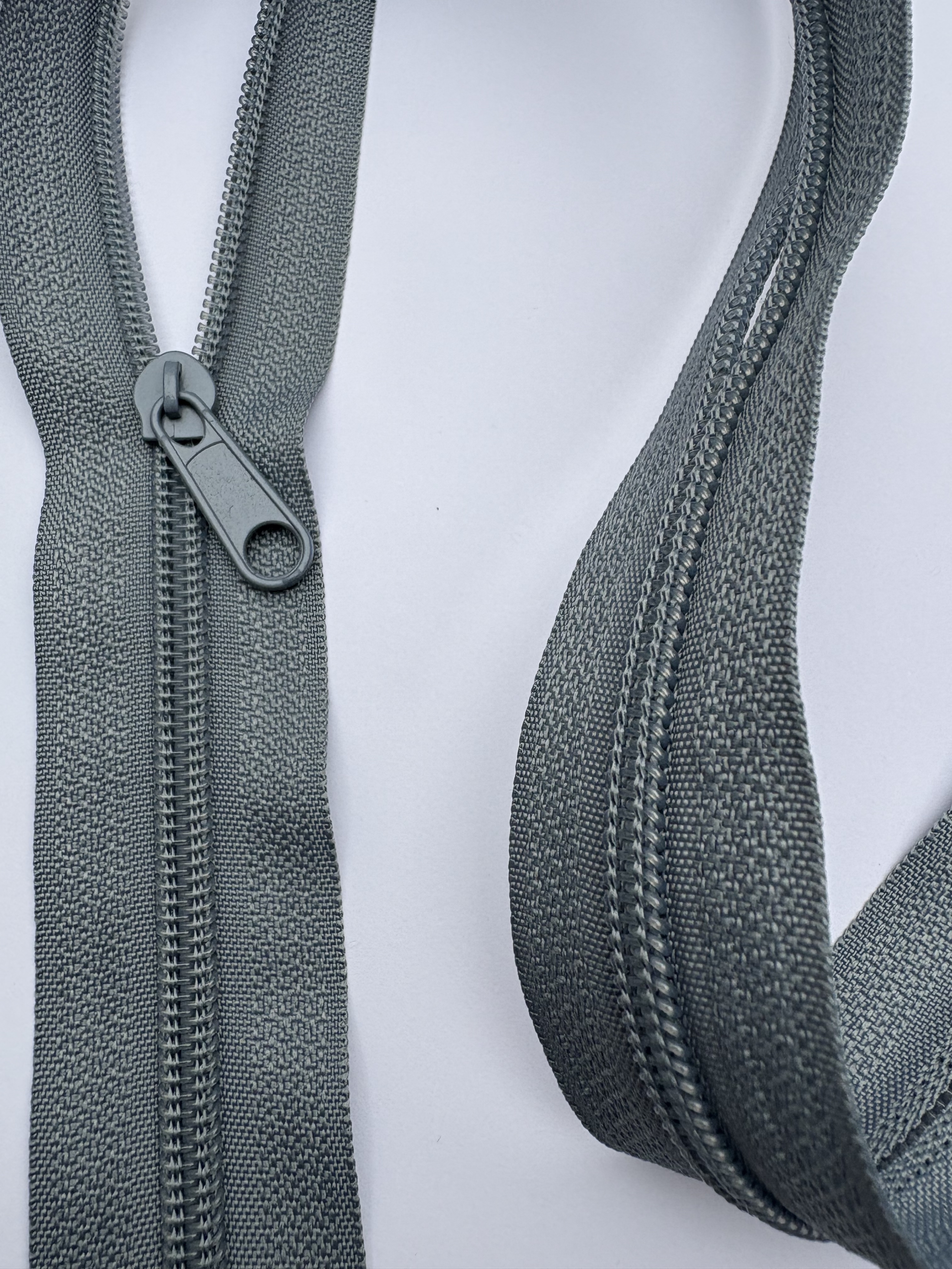 - 1m Reißverschluss & 4x Zipper - 5 mm Spirale - Farbe: grau / mittelgrau #316