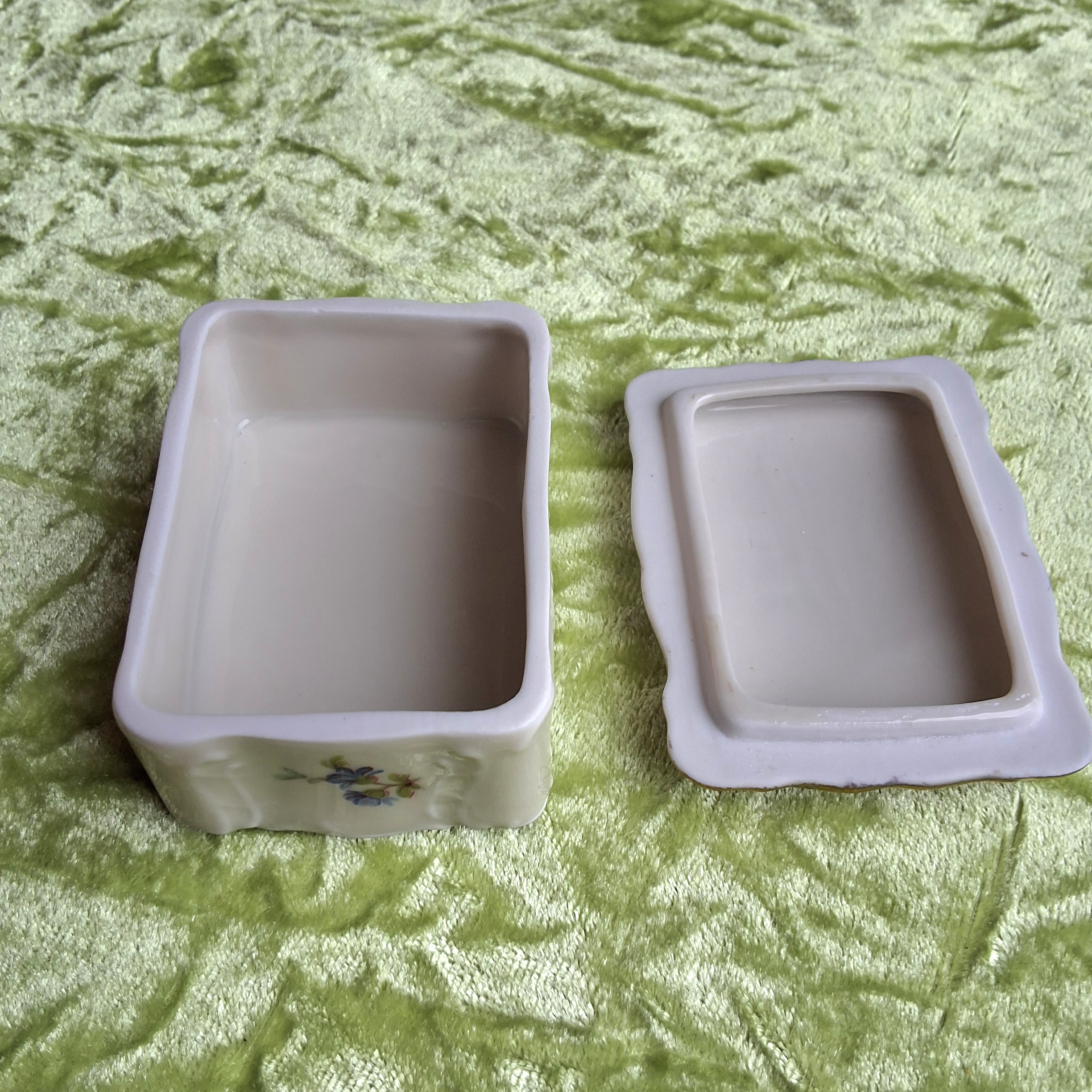Dieses Porzellandöschen ist vintage. Es hatte ein "früheres Leben". Bitte beachten Sie, das kleinere Unregelmäßigkeiten und Mängel vorhanden sein können. - Keine gesehen. Goldrand intakt. Vitrinenstück.