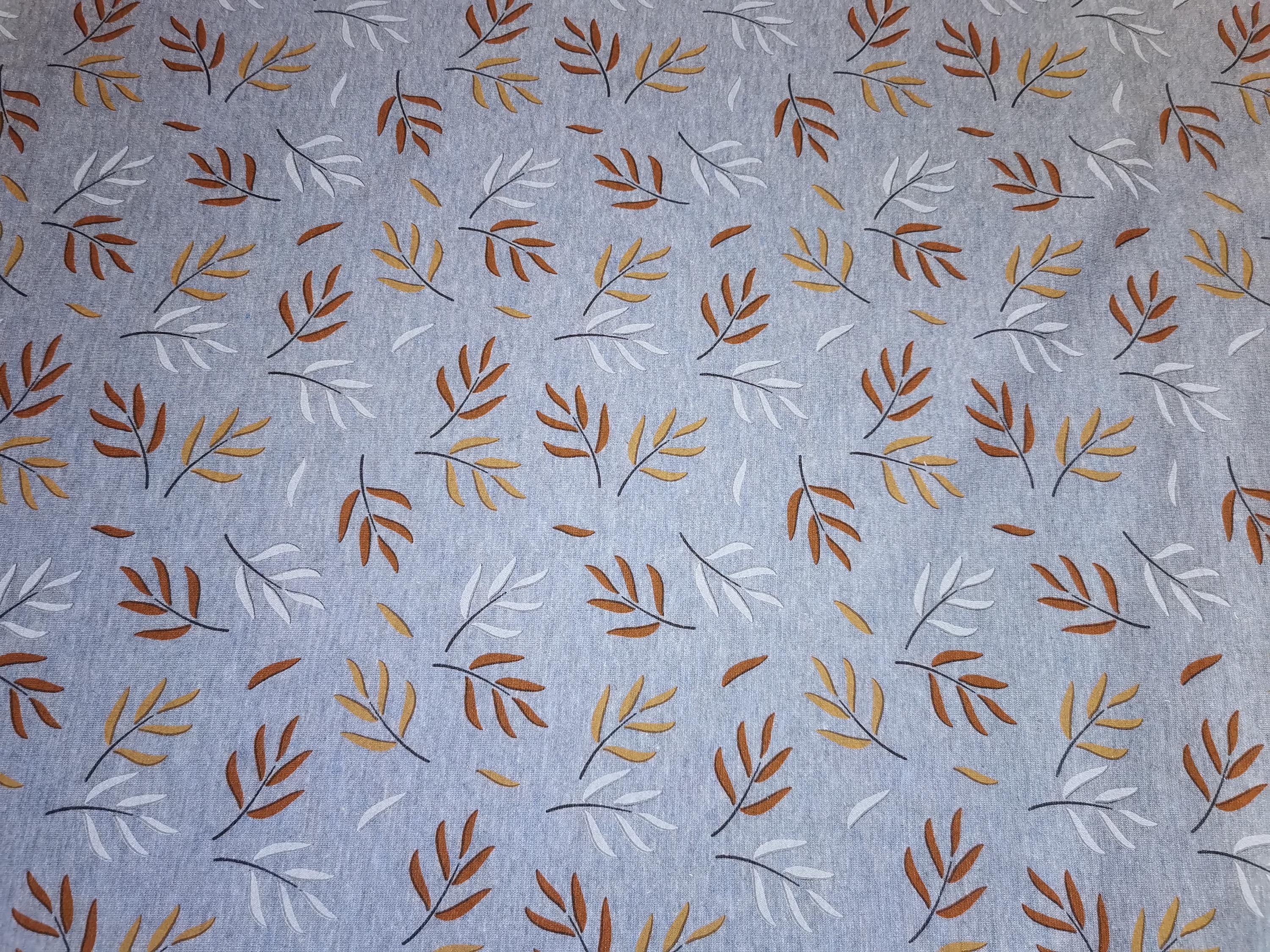 Schönes weiches und warmes Alpenfleece mit hellblauem Hintergrund und gold braunen Blättern
